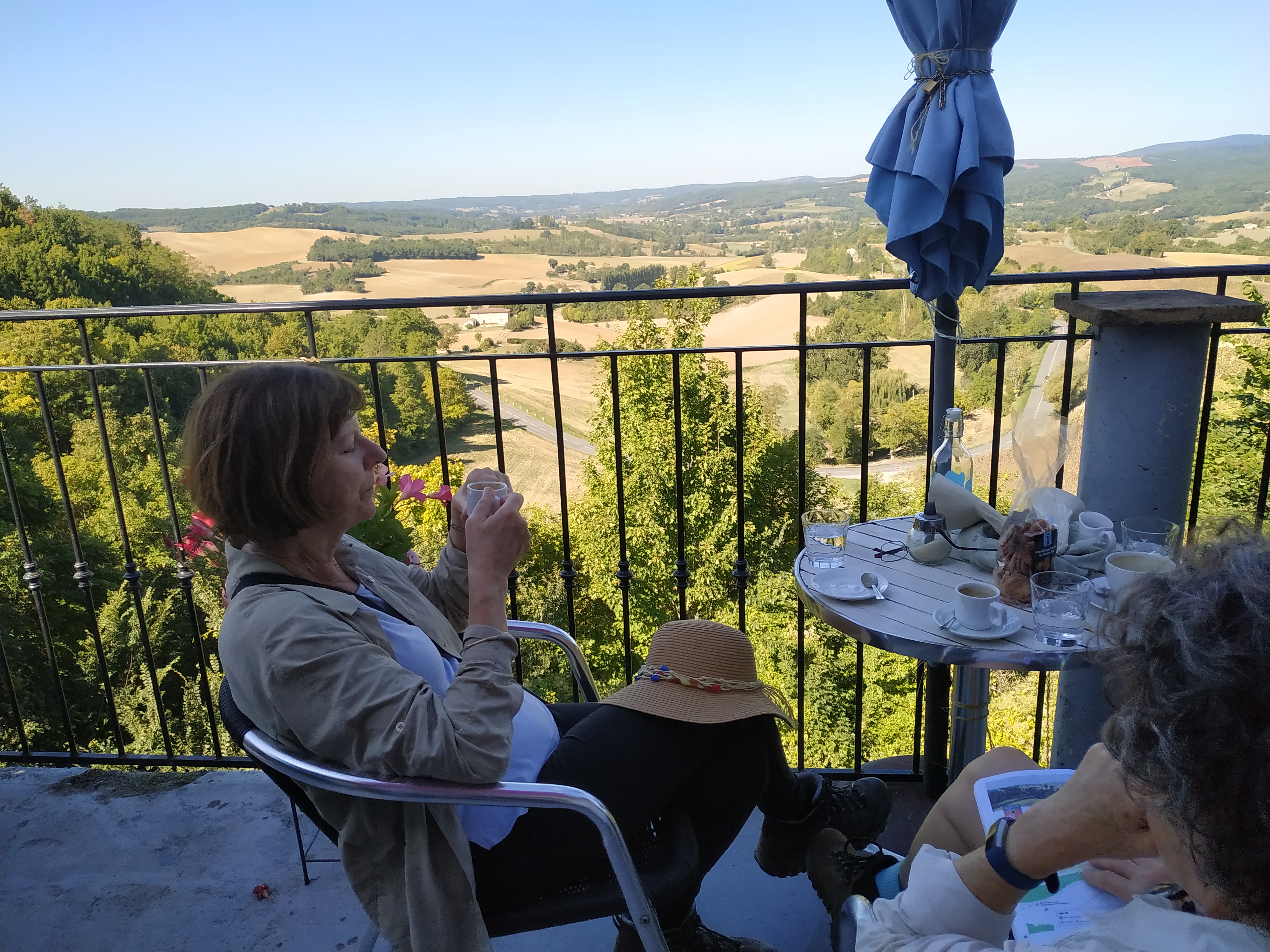Merci pour cet excellent moment. Nous avons dégustés d’excellents thés et un bon croissant en terrasse avec une vue magnifique sur les bastides. Contrairement à ce que je lis le service est parfait et le monsieur qui sert est charmant. Il y a beaucoup de précautions prises pour éviter le COVID. Dommage que cela agace certaines personnes. Pour ma part je me suis senti grâce à cela en totale sécurité. Je recommande vivement ce lieu et la visite du village qui est remarquable.