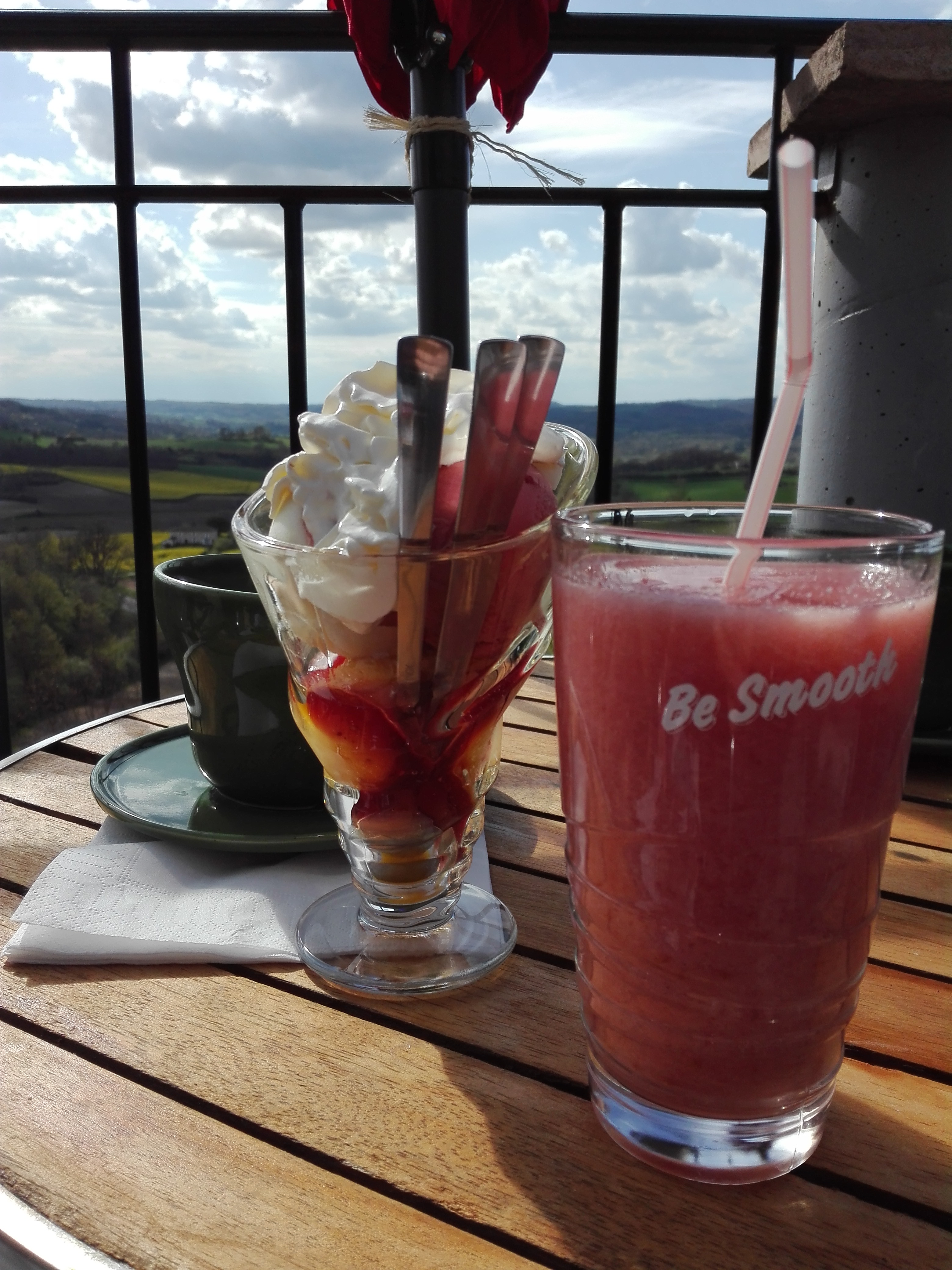 Excellente glace dégustée en terrasse avec une magnifique vue sur la campagne tarnaise.