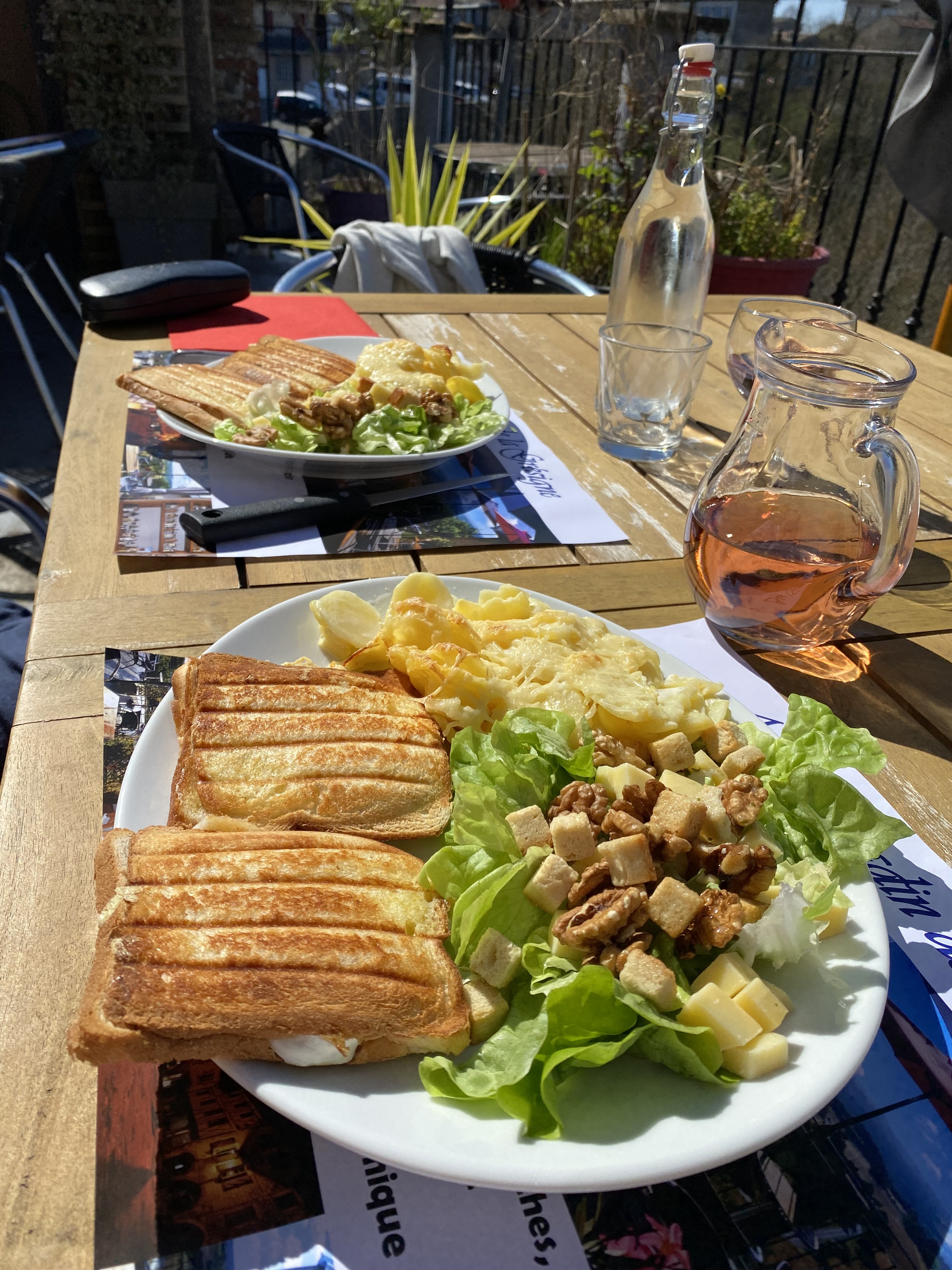 Une terrasse avec une vue magique. Des croques monsieur, salade, gratin délicieux 😋. Un accueil chaleureux. Enfin le top des tops! Merci pour cet excellent moment. A bientôt peut-être.