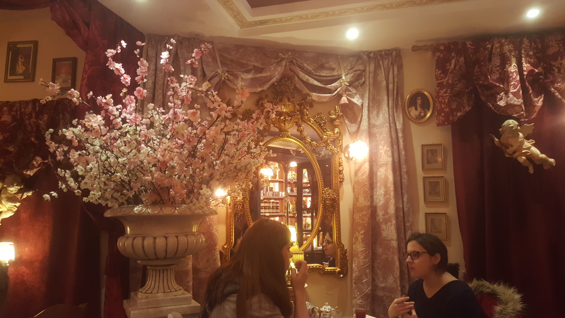 Le lieu est à voir au moins une fois dans sa vie (la décoration est vraiment incroyable), on a l'impression d'être dans un autre monde où tout est raffiné. Il est vrai que ce n'est pas vraiment donné et qu'il faut aimer cet univers, mais 1 fois de temps en temps, juste le temps de s'évader, manger un bon gâteau et boire du bon thé, ça me va. J'ai essayé le goûter. L'attente était un peu longue, heureusement que j'étais avec des amis pour discuter. Le gâteau était délicieux, il y a juste le glaçage qui est vraiment difficile à manger au bout d'un moment (trop sucré). Le chocolat chaud est pas mauvais, pas incroyable non plus, je devrais tester le thé la prochaine fois. J'essayerai avec plaisir le brunch pour voir comment sont leurs mets salés. Très bonne continuation.