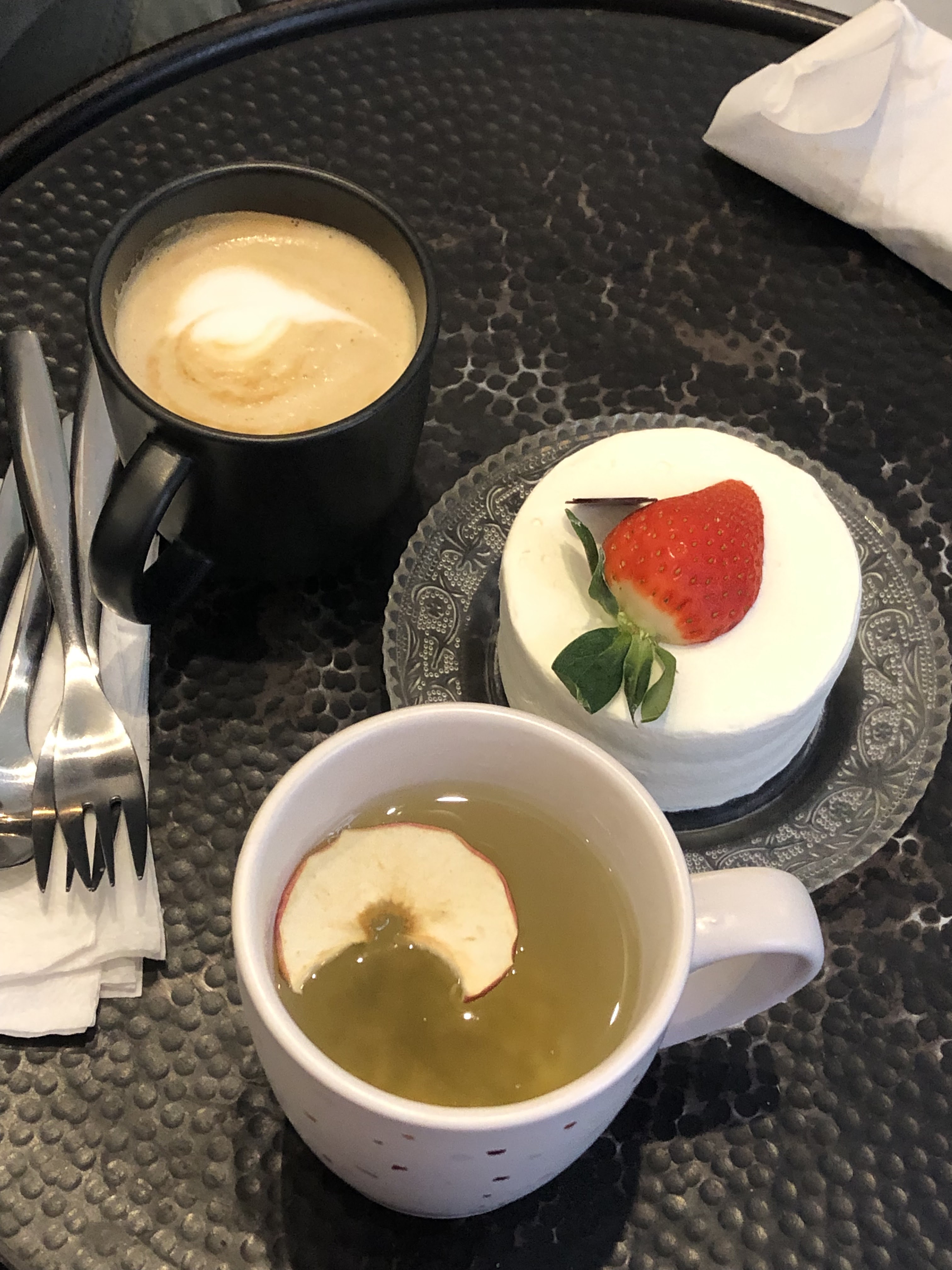 Le thé grillé et le gâteau 🍰 à la fraise sont excellents !