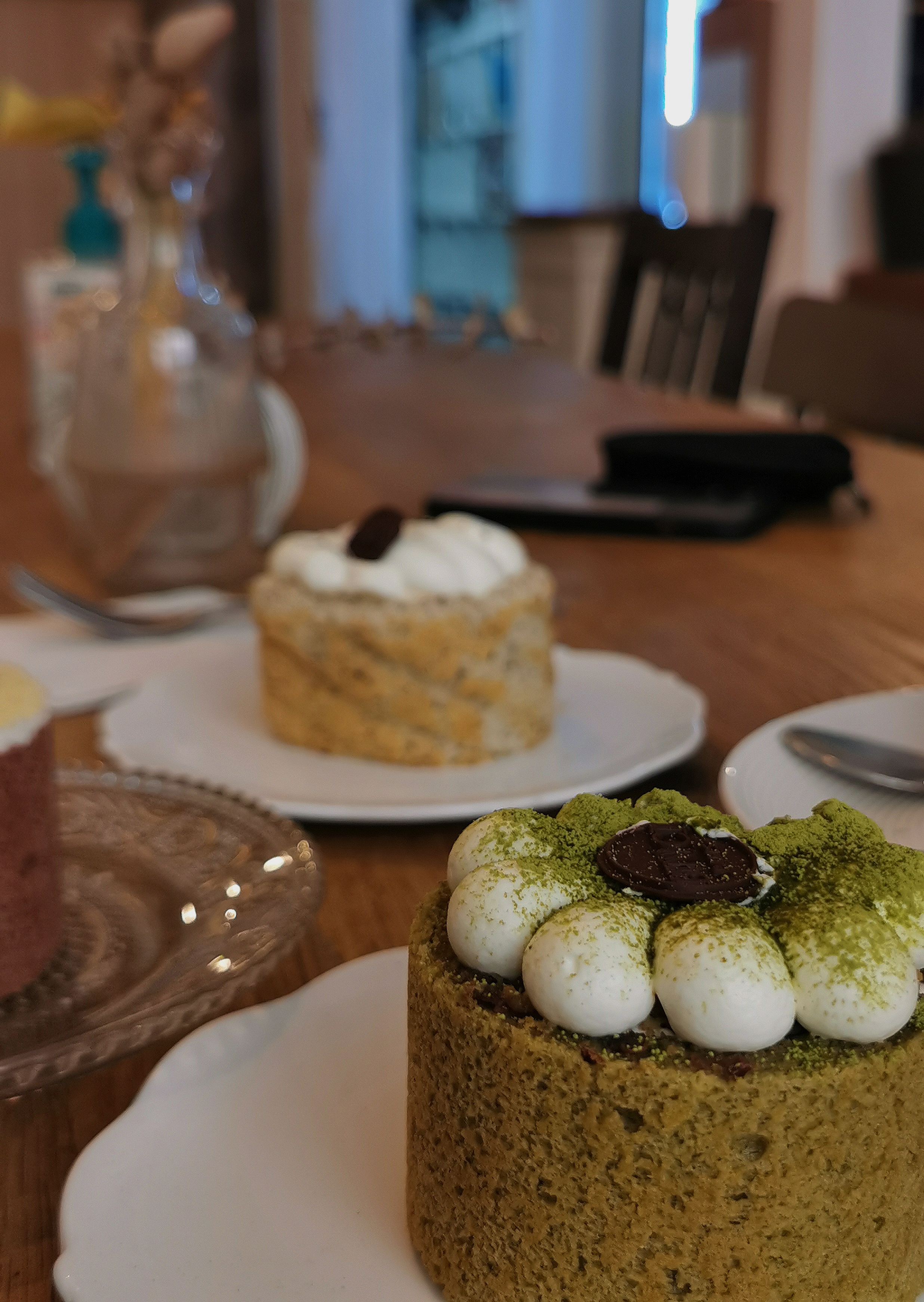 Supers accueil et cadre. Le matcha latte, le gâteau à la fraise et le roll à la patate douce étaient excellents.