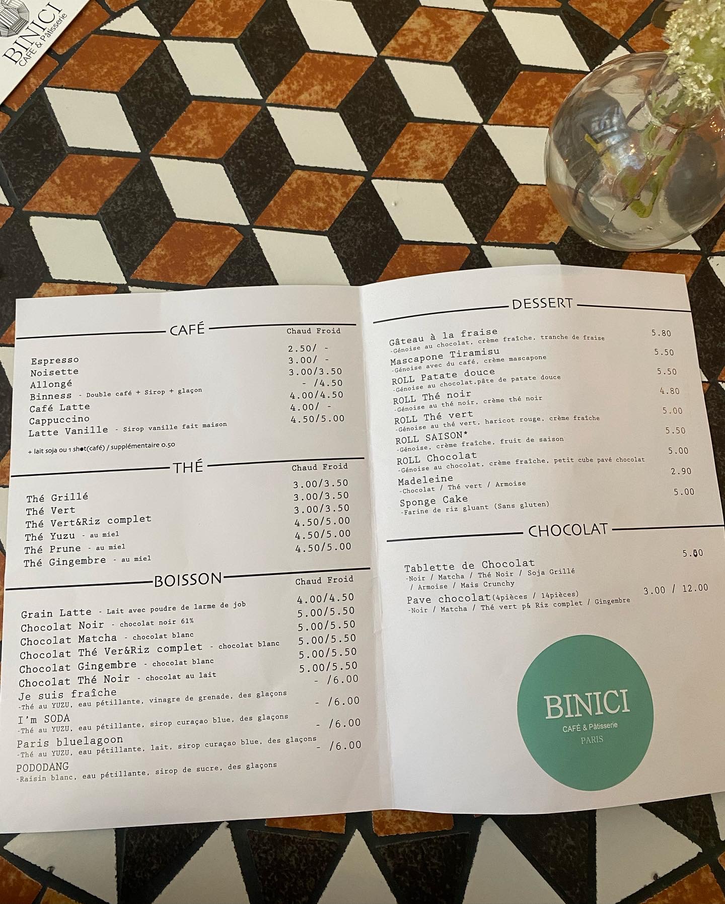 Bon moment passé chez Binici. De très bonnes pâtisseries faites maison (avec de la crème, donc il faut aimer ça) Bon chocolat blanc/thé vert/riz complet. Le personnel est très sympathique Le seul bémol : la salle est un peu petite qui nous fait être entassé les uns sur les autres surtout en période d’affluence.