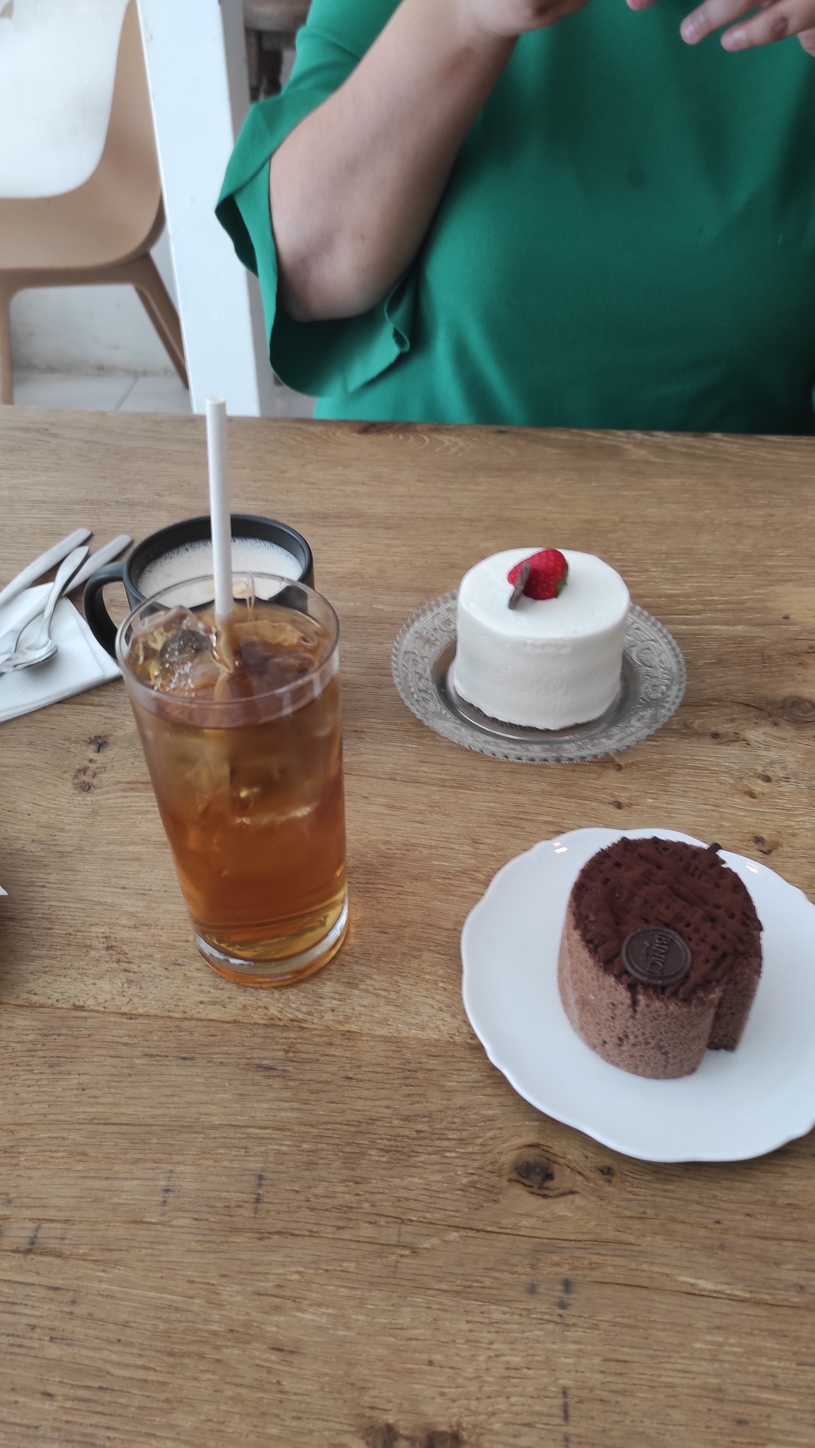 Le thé glacé était très sucré (probablement du sirop) et les pâtisseries ont l'air de qualité moyenne. Ambiance calme de travail, pas terrible pour un goûter entre amis.