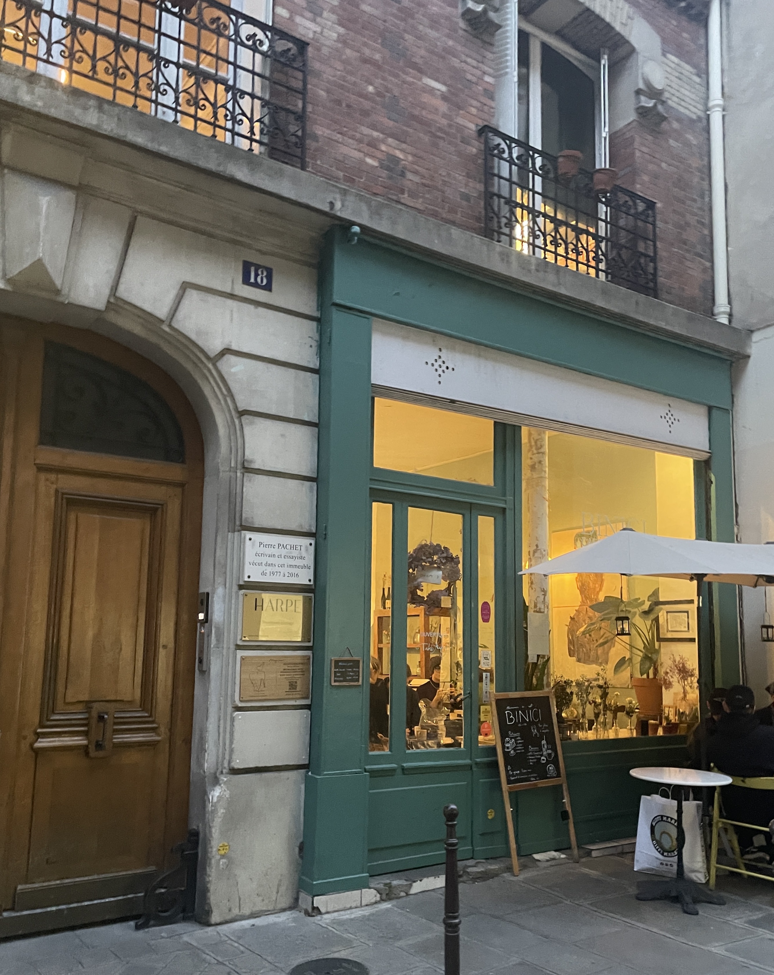 Une ambiance très calme, très apaisée. Le personnel y est très agréable. Ce salon de thé coréen propose plusieurs boissons intéressantes tant froides que chaudes et des pâtisseries assez originales. Le lieu reste malgré tout un peu petit donc prévoyez d'y aller à petit comité. Je vous conseille d'y goûter le Gingembre Aid qui est très rafraîchissant ! Je vous conseille aussi de consulter leur page Instagram @binici_paris qui permet de mieux savoir à quoi s'attendre