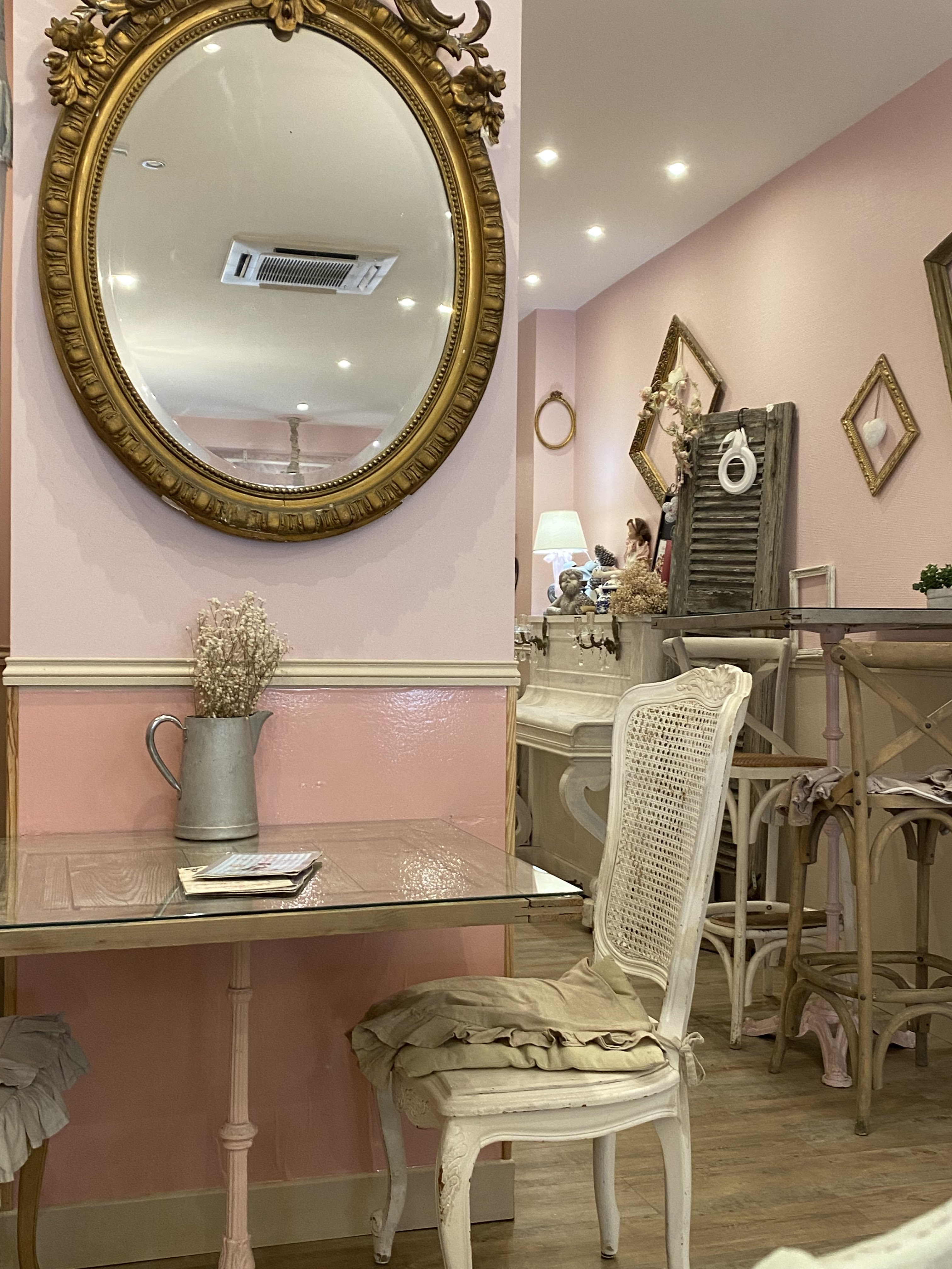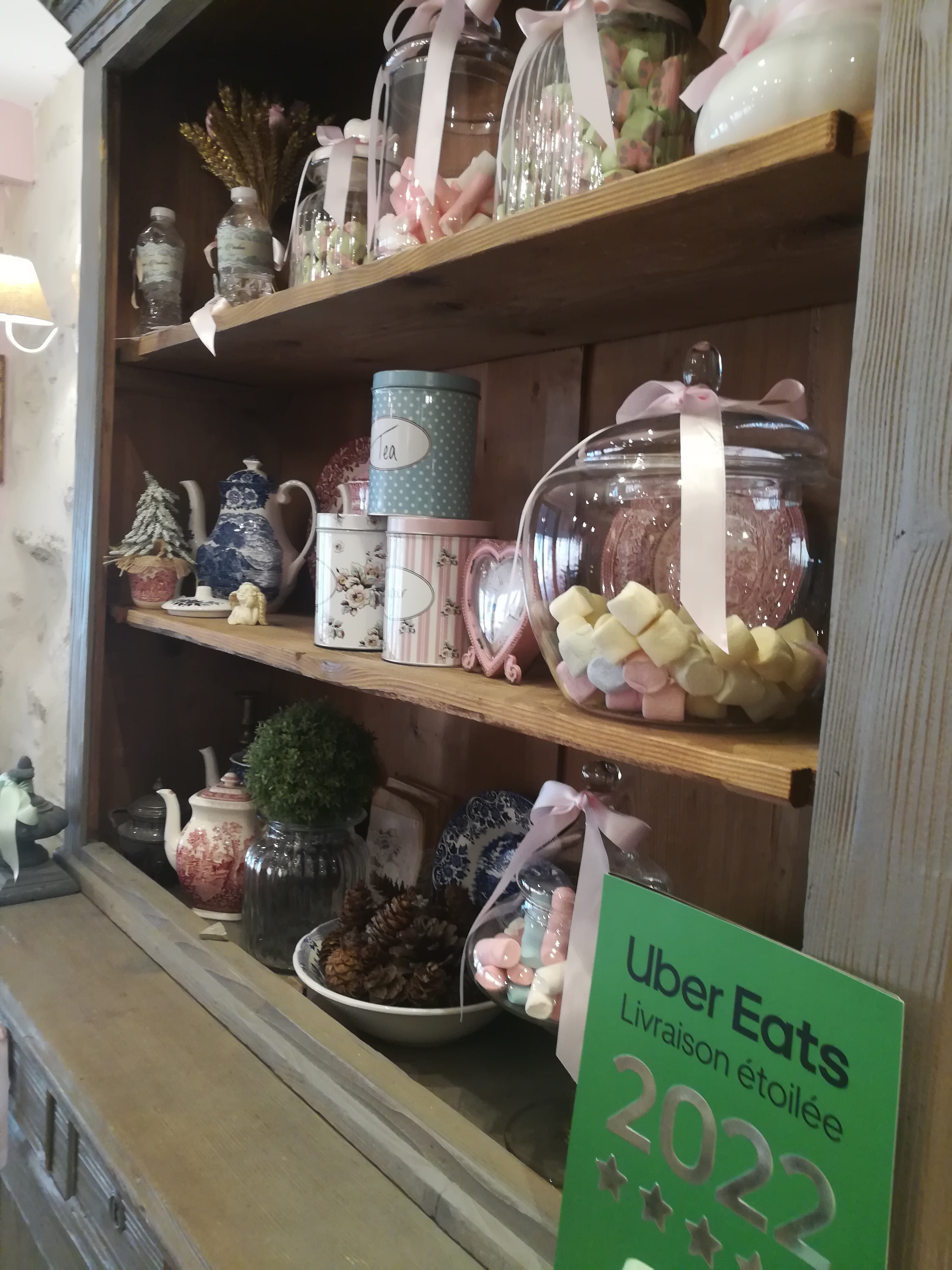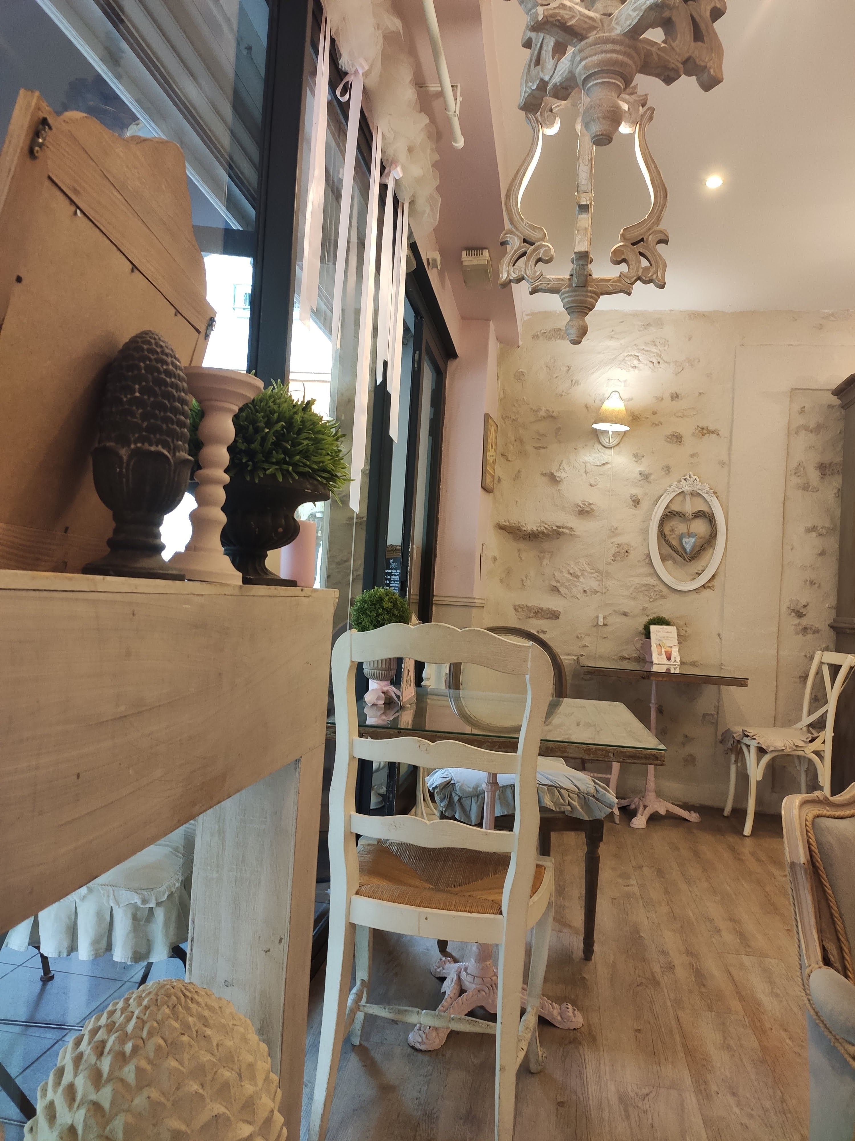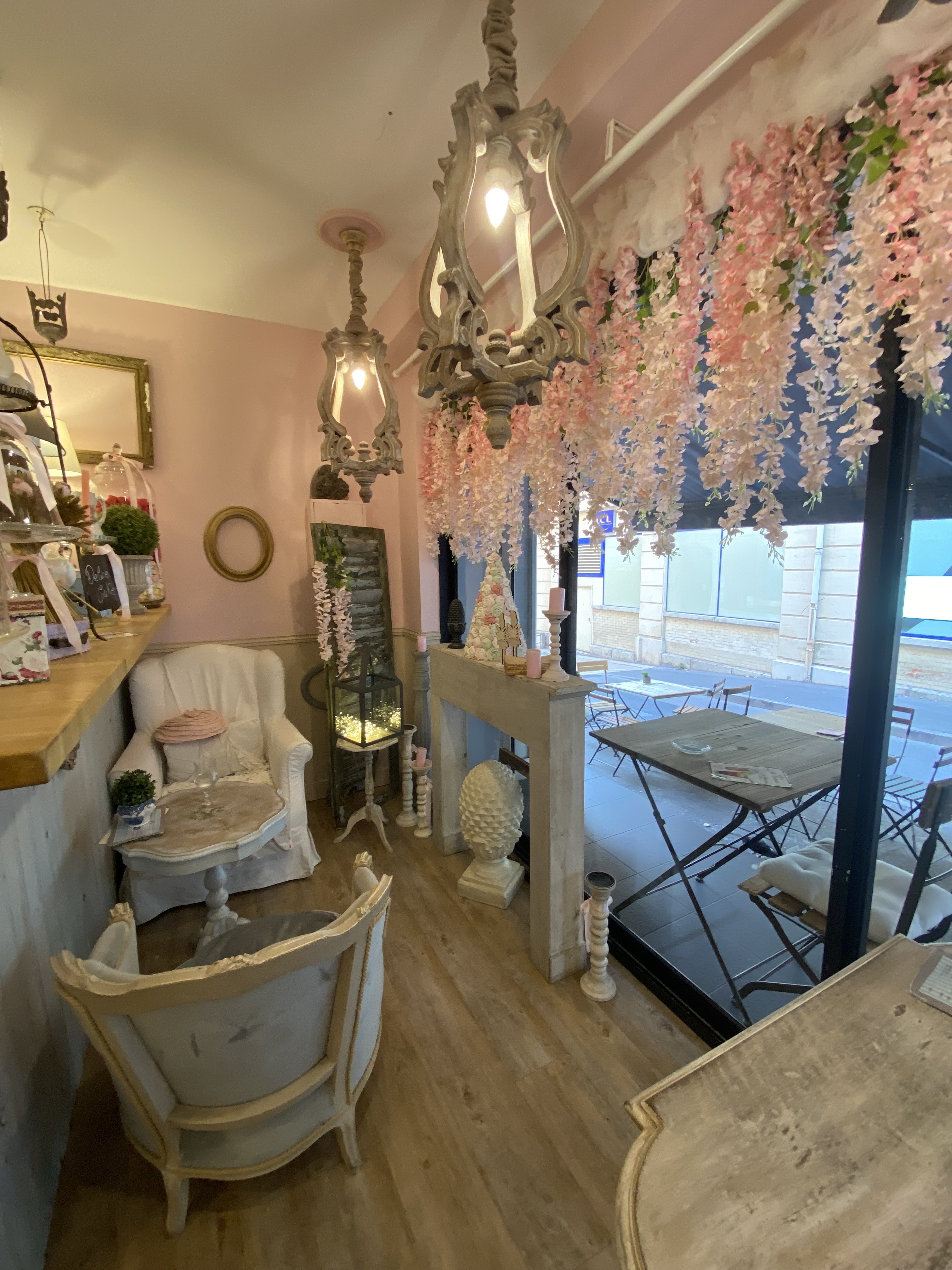 Un superbe endroit sympa très girly de très bon dessert À midi de belles salades et tartines Un accueil chaleureux