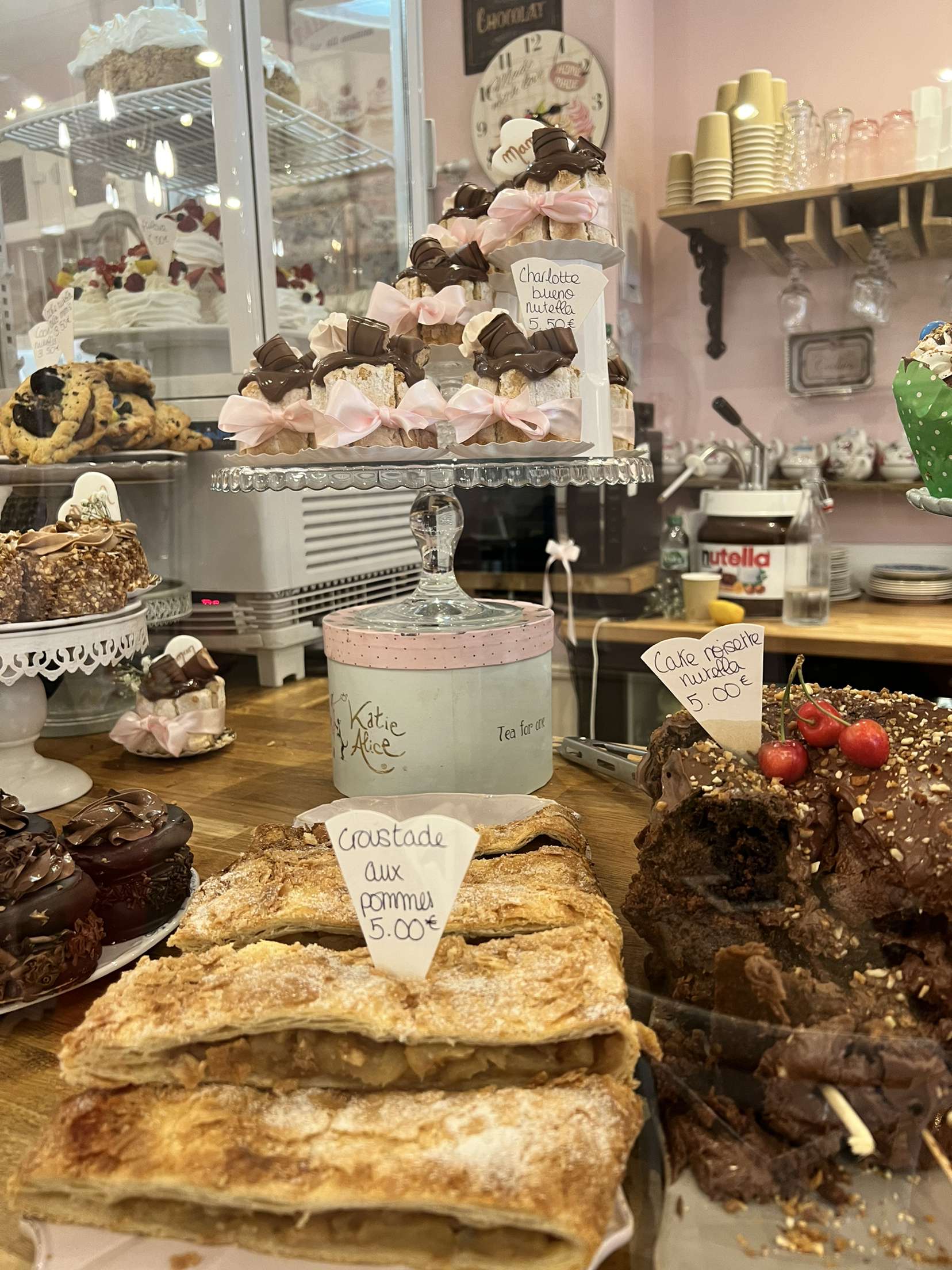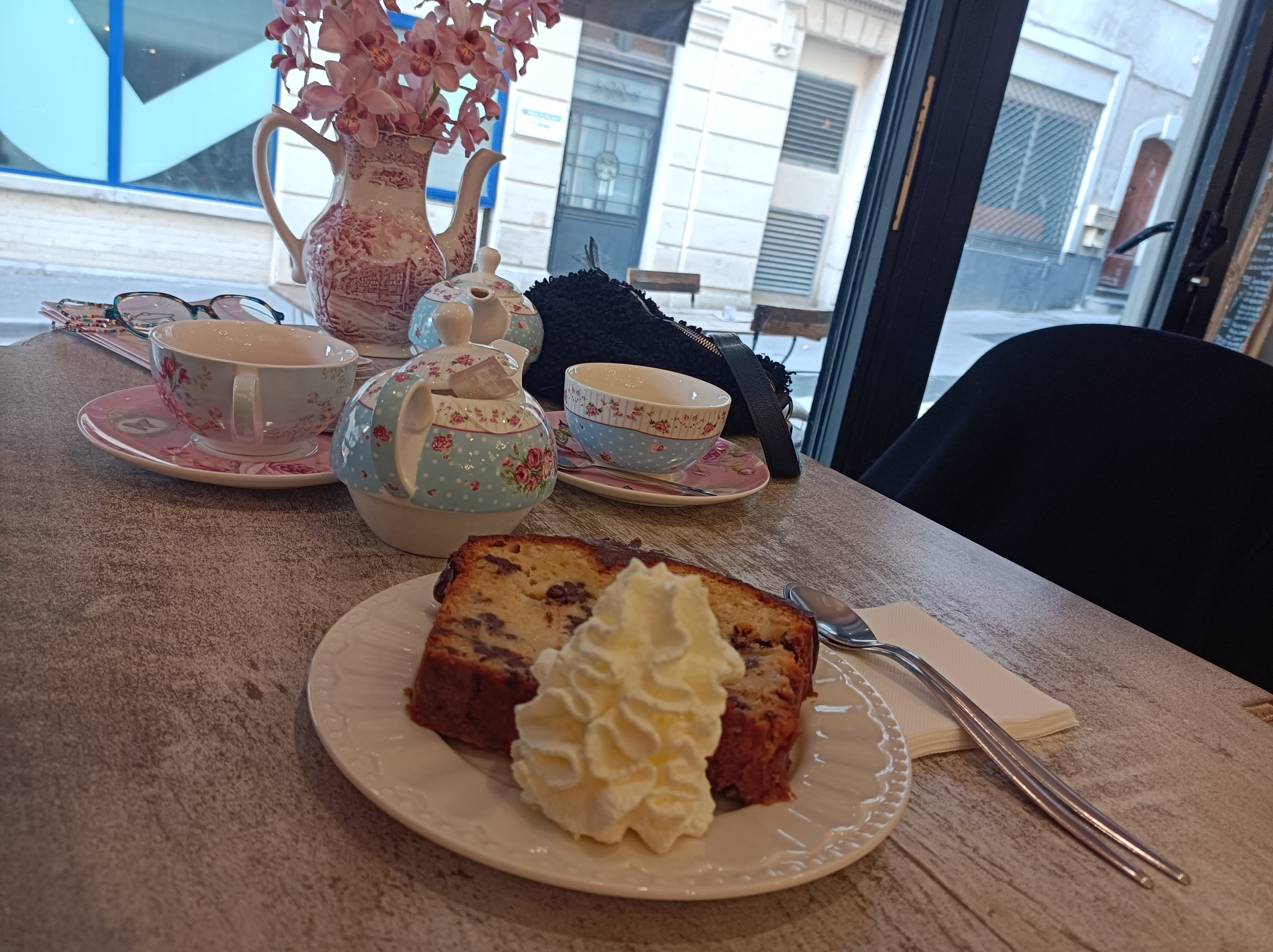 Un salon de thé avec un intérieur parfaitement décoré qui propose tout un assortiment de gâteaux/pâtisseries irrésistibles et délicieux ! On peux également y manger le midi lors du brunch !