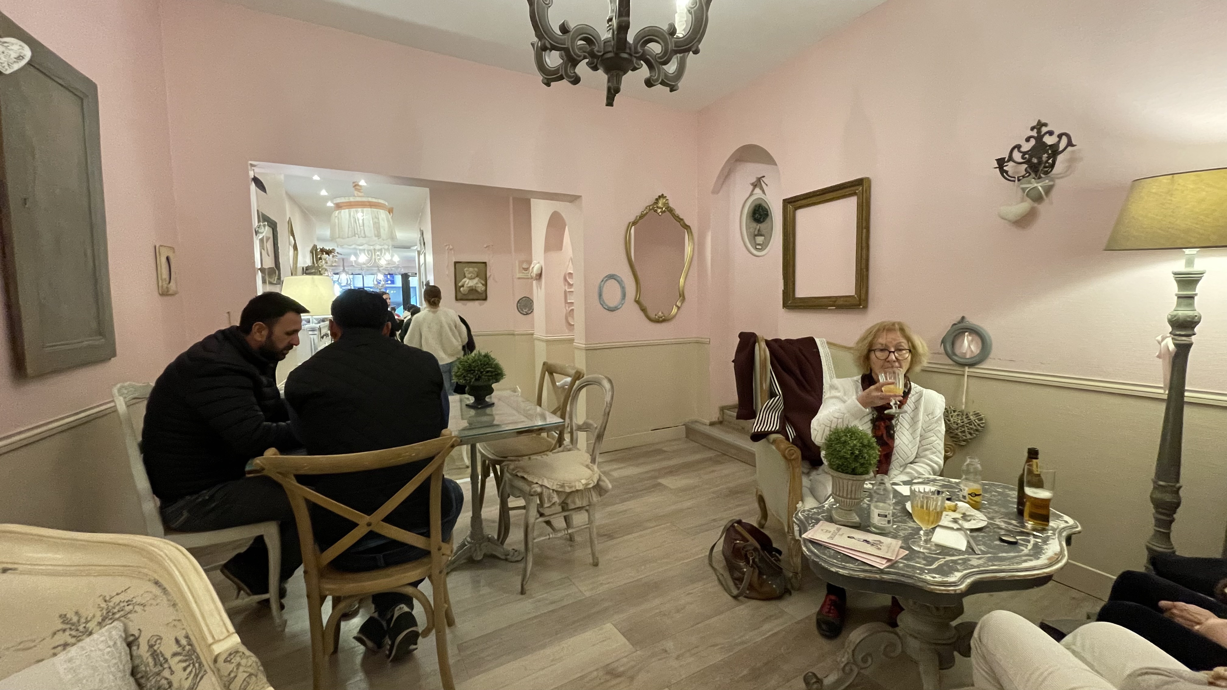 Joli petit salon de thé, ambiance cocooning rose poudrée. Bon accueil, carte des boissons diversifiée, gourmandises alléchantes.