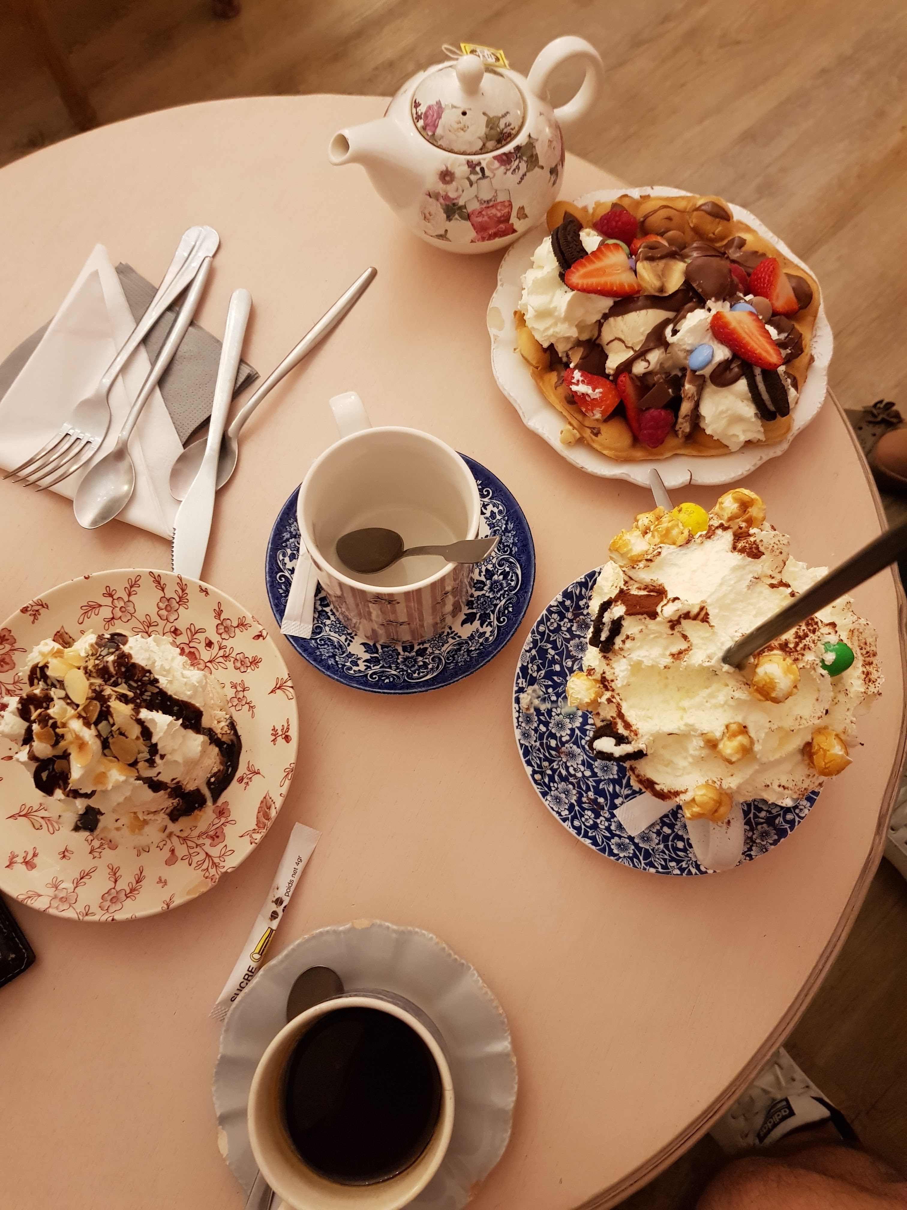 Je ne suis pas très fan de la déco kitsch mais le lieu reste très sympa avec un chouette personnel ! Les desserts que nous avons pris (deux parts de cakes différents et un muffin) étaient juste succulents et à des prix plus que corrects !