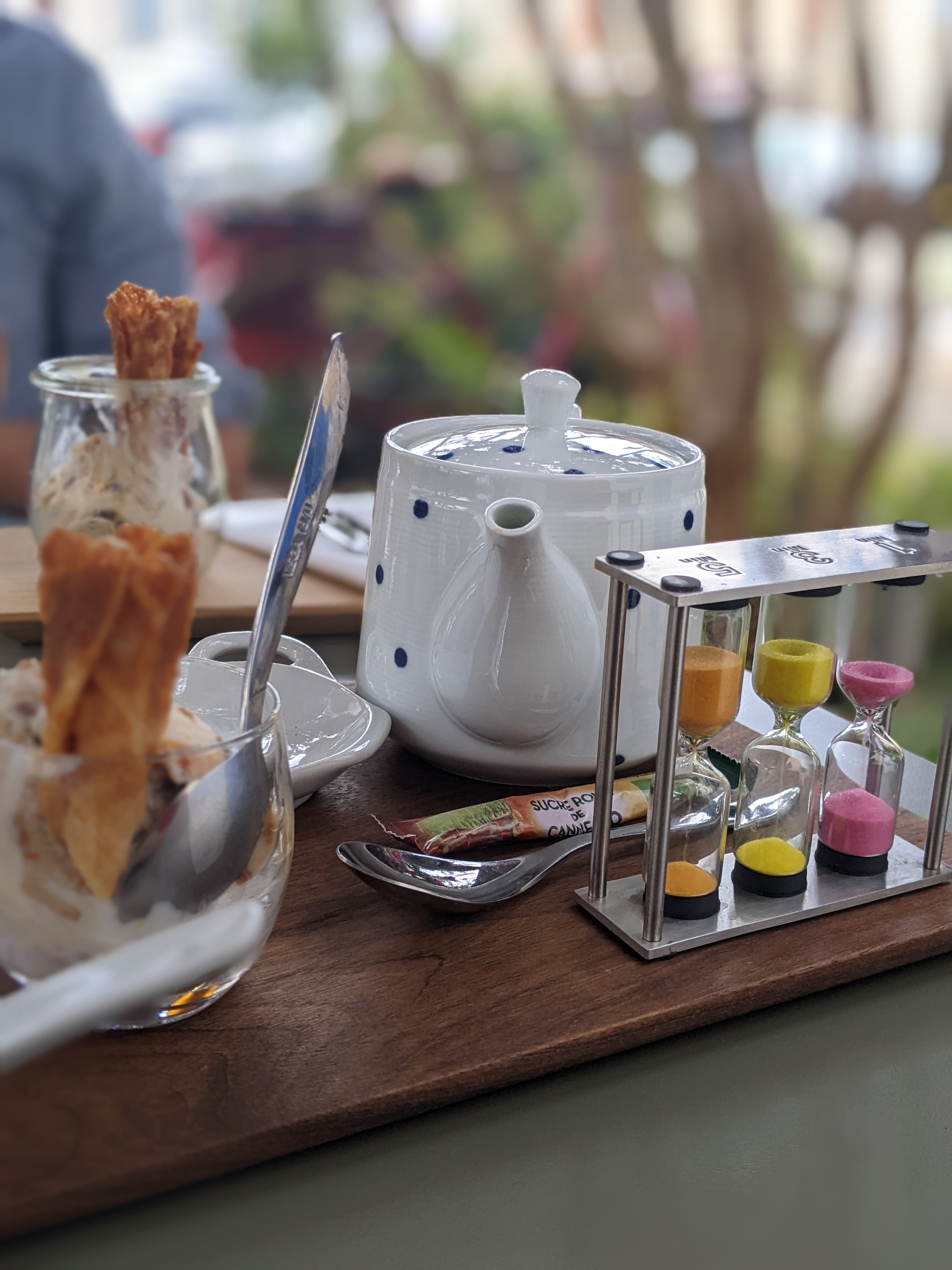 Thé gourmand excellent je recommande les glaces humm citron basilic ....un agréable moment avec des propriétaires très sympathiques et de très bons conseils De plus de très belles théières et le trio sablier magnifique je recommande N hésitez pas à aller goûter tous ces délices....et passer un agréable moment Merci pour votre gentillesse Maryse