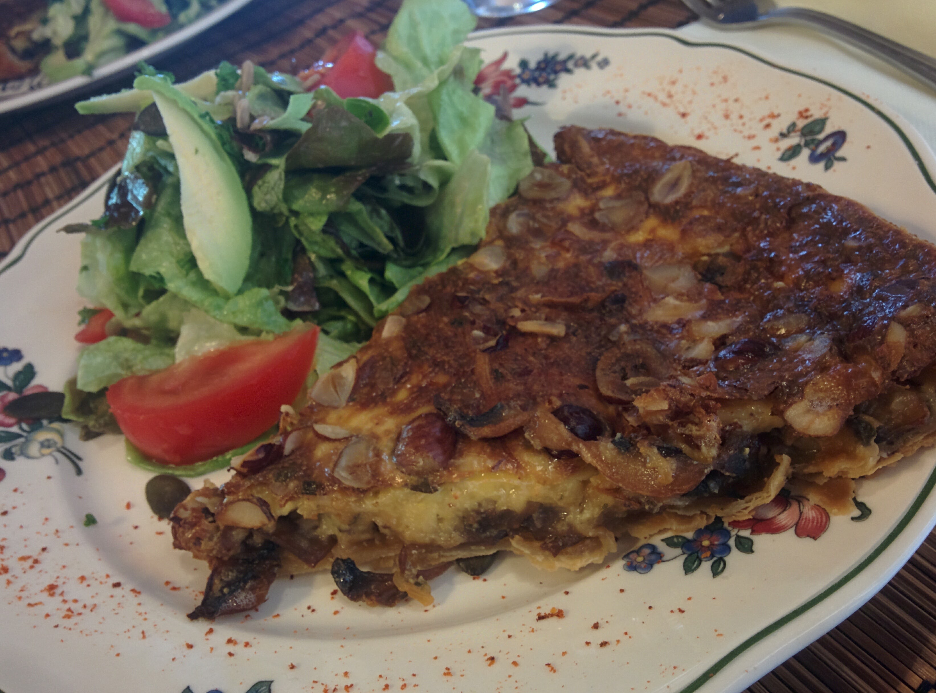 Endroit sans chichis, tarte champignons noisettes et parmentier lentilles courgettes patates douces excellents tout comme le far et les crumbles en dessert