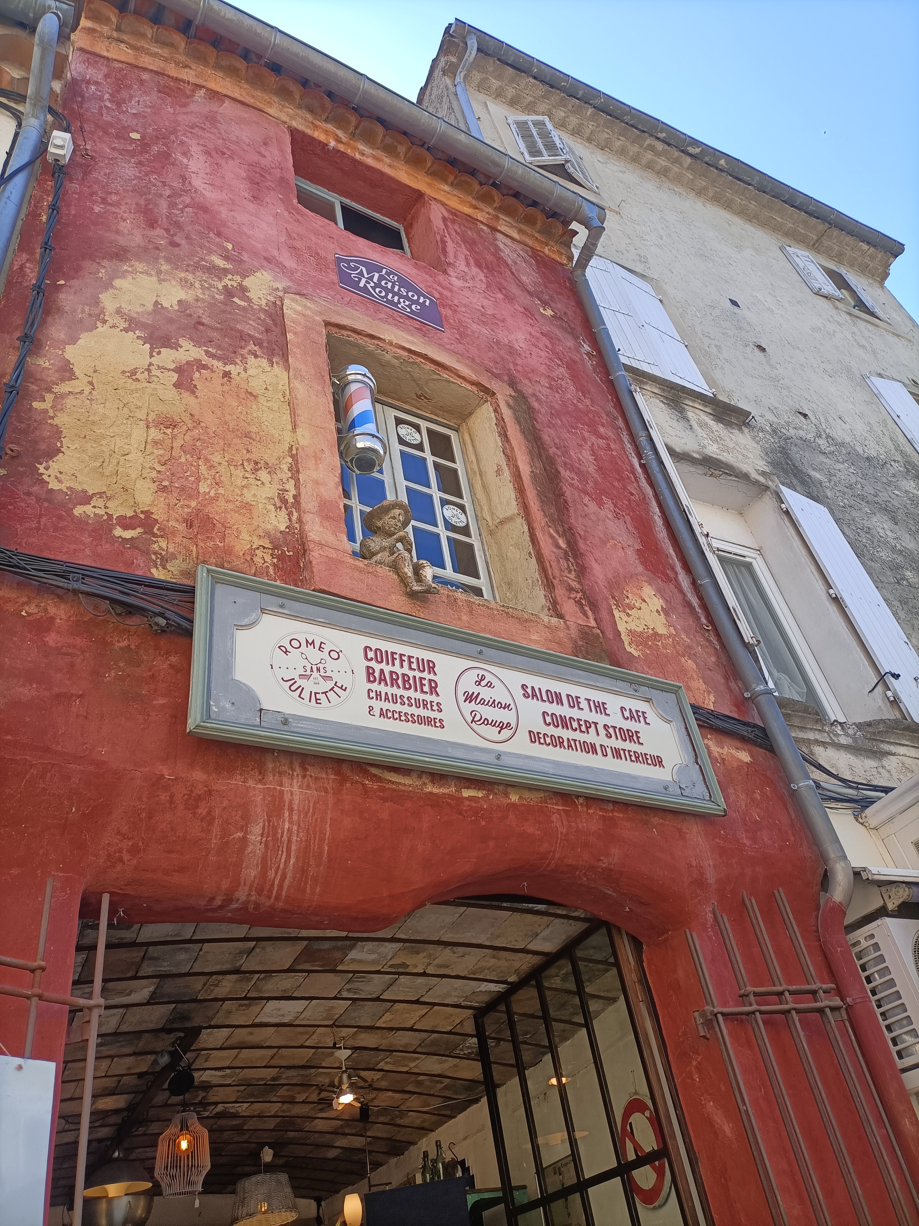 Situé dans une petite rue parallèle à la sorgue, et découvert grâce à un blog, La maison Rouge propose un thé glacé fait maison succulent ! Avec des morceaux de pêche/nectarine à prendre et à manger avec un pic. Excellent concept ! Endroit atypique et très sympa. L'accueil a été très chaleureuse. Sûrement un incontournable de la ville !
