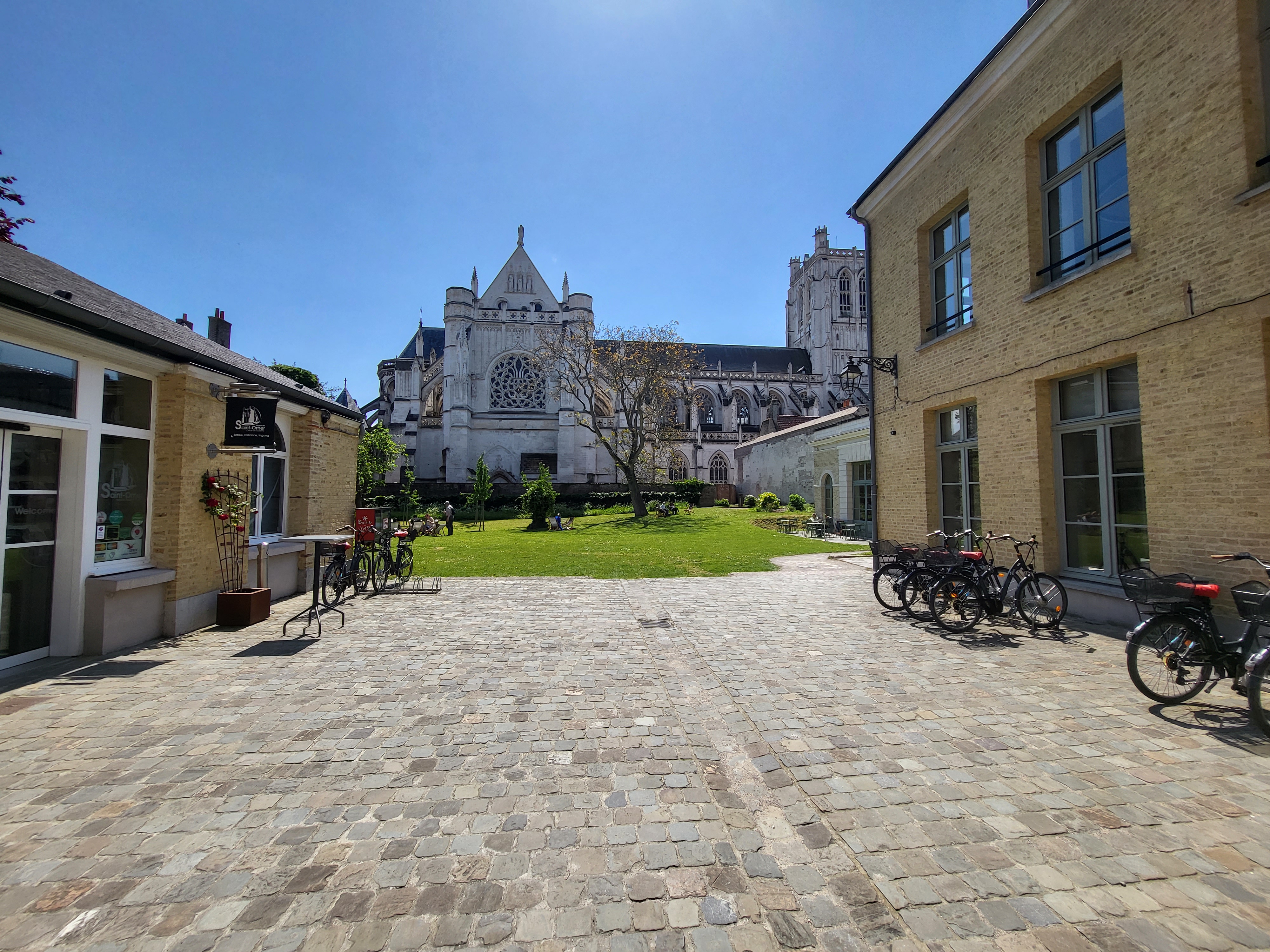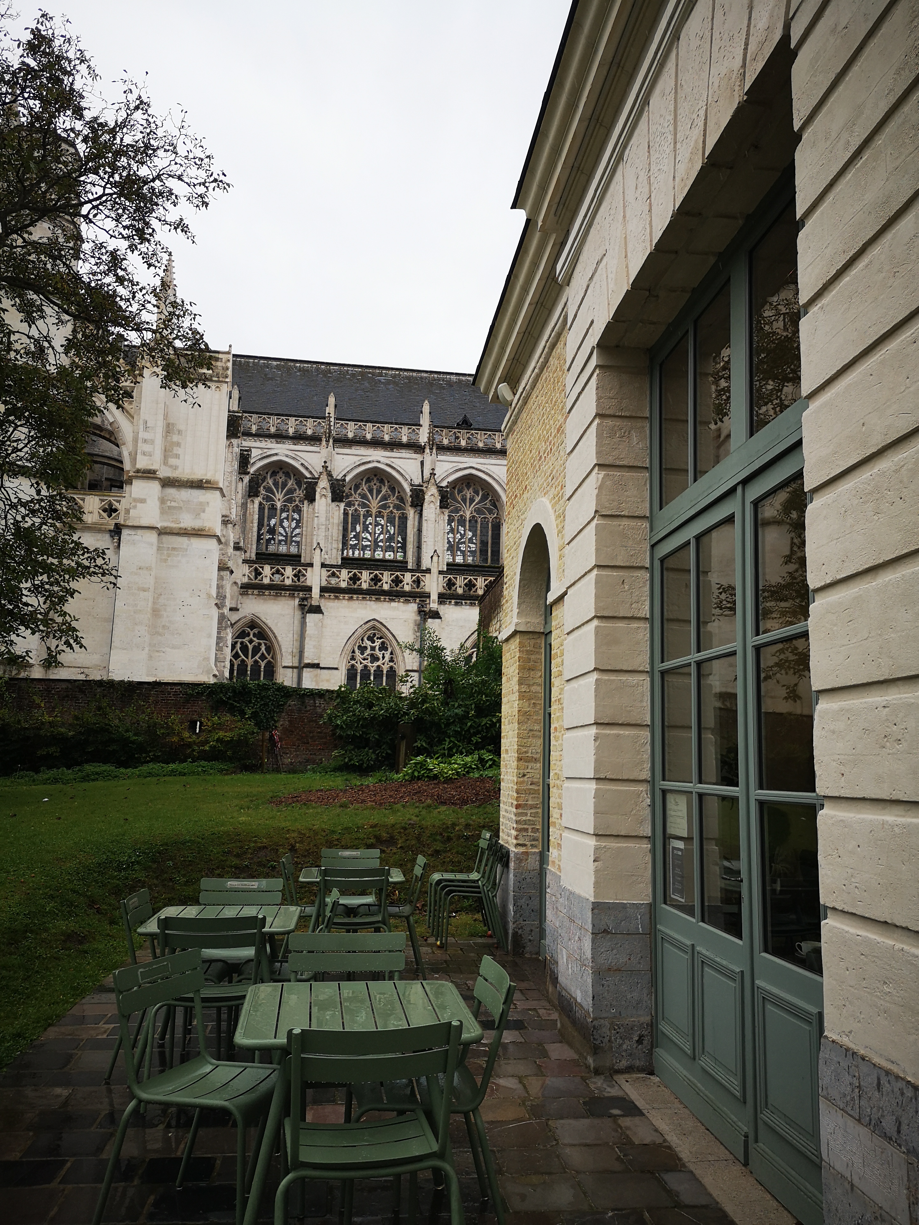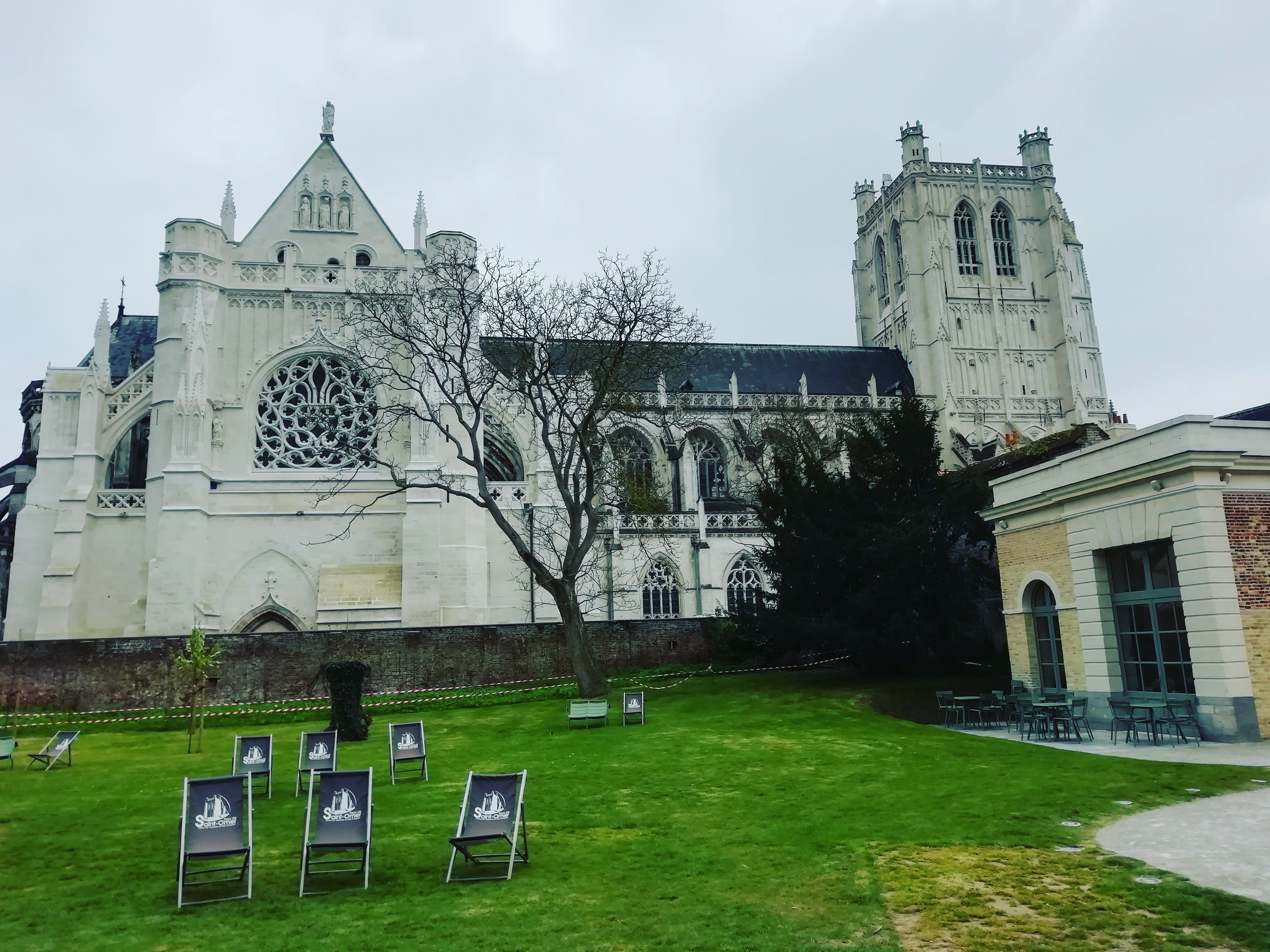Café sympa dans un beau cadre, dabs les jardins de la cathédrale de St Omer.