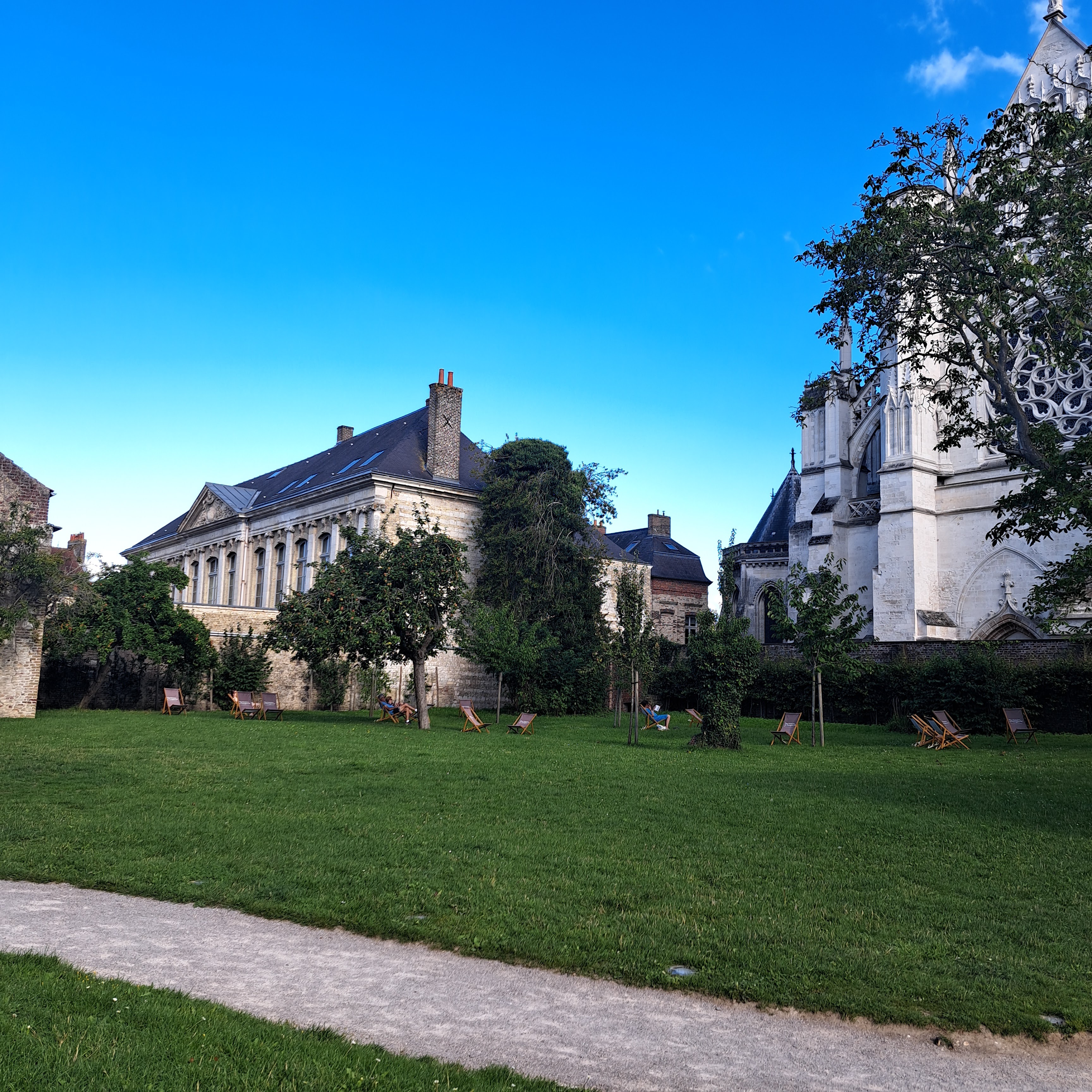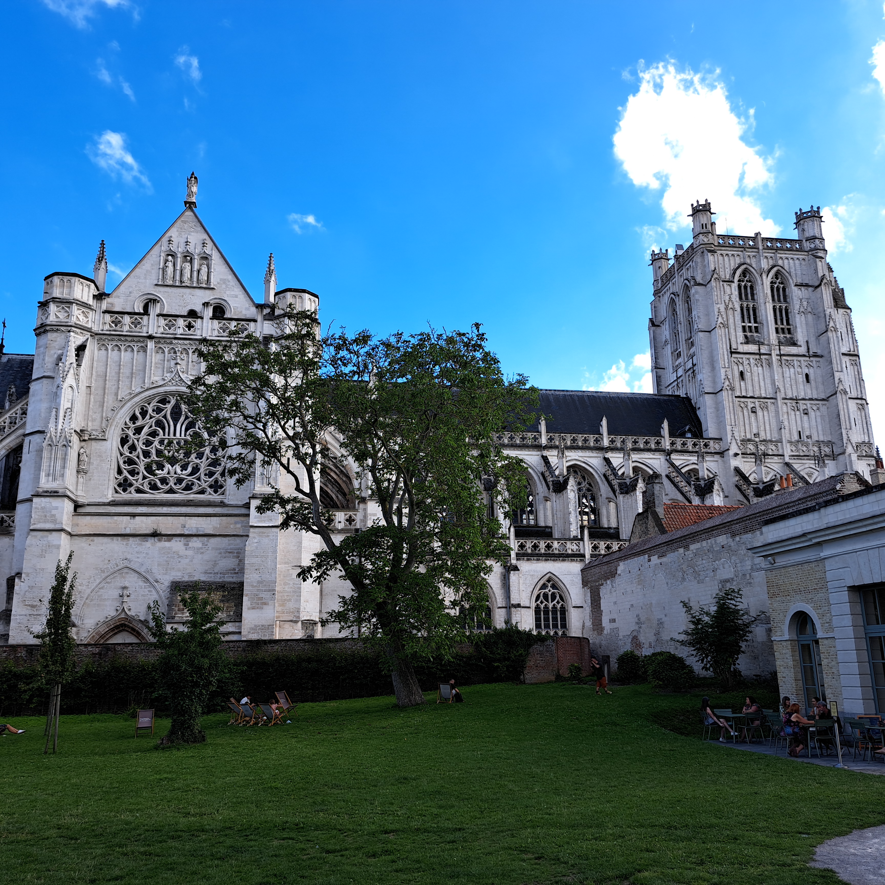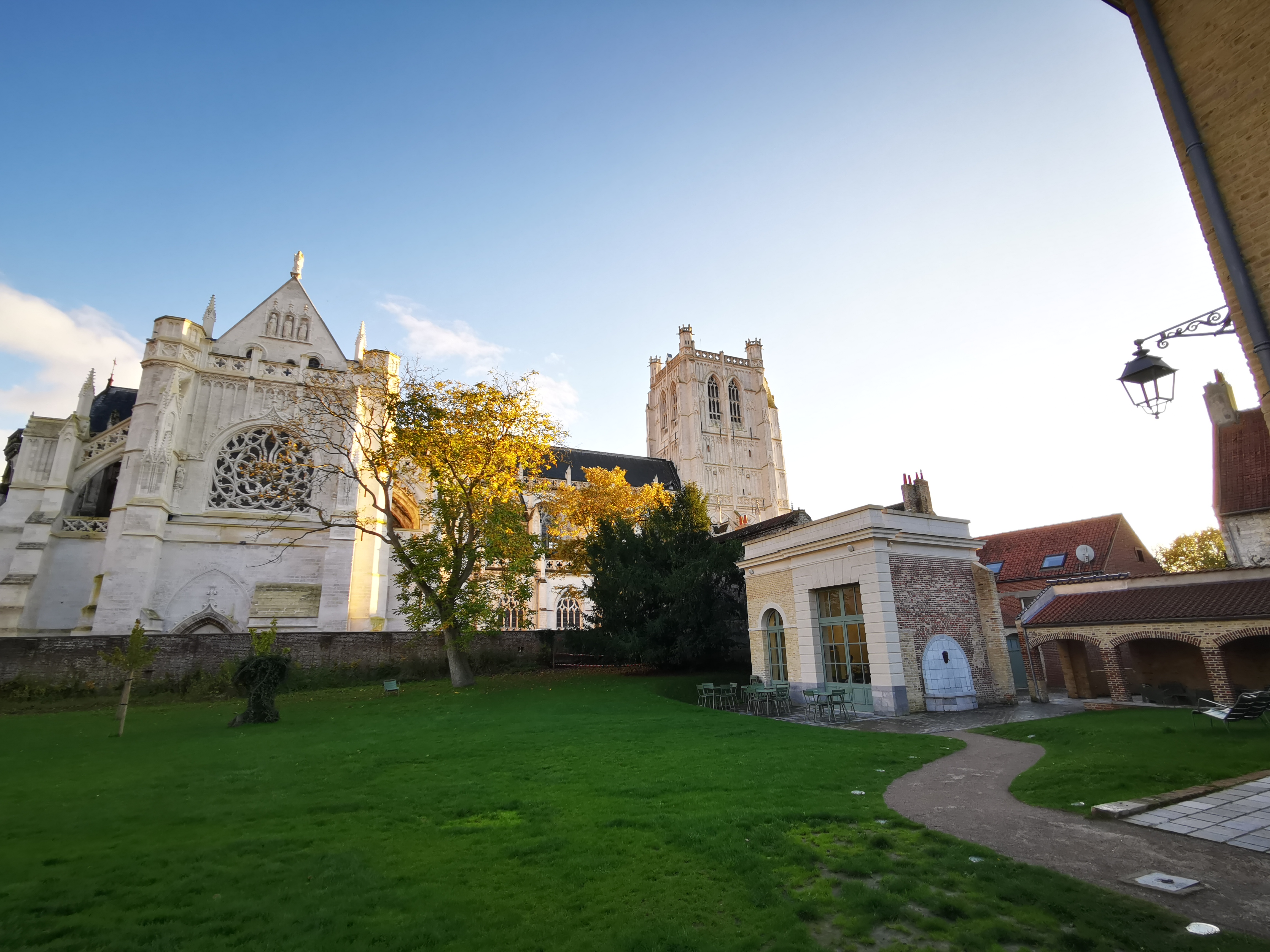 Café sympa dans un beau cadre, dabs les jardins de la cathédrale de St Omer.