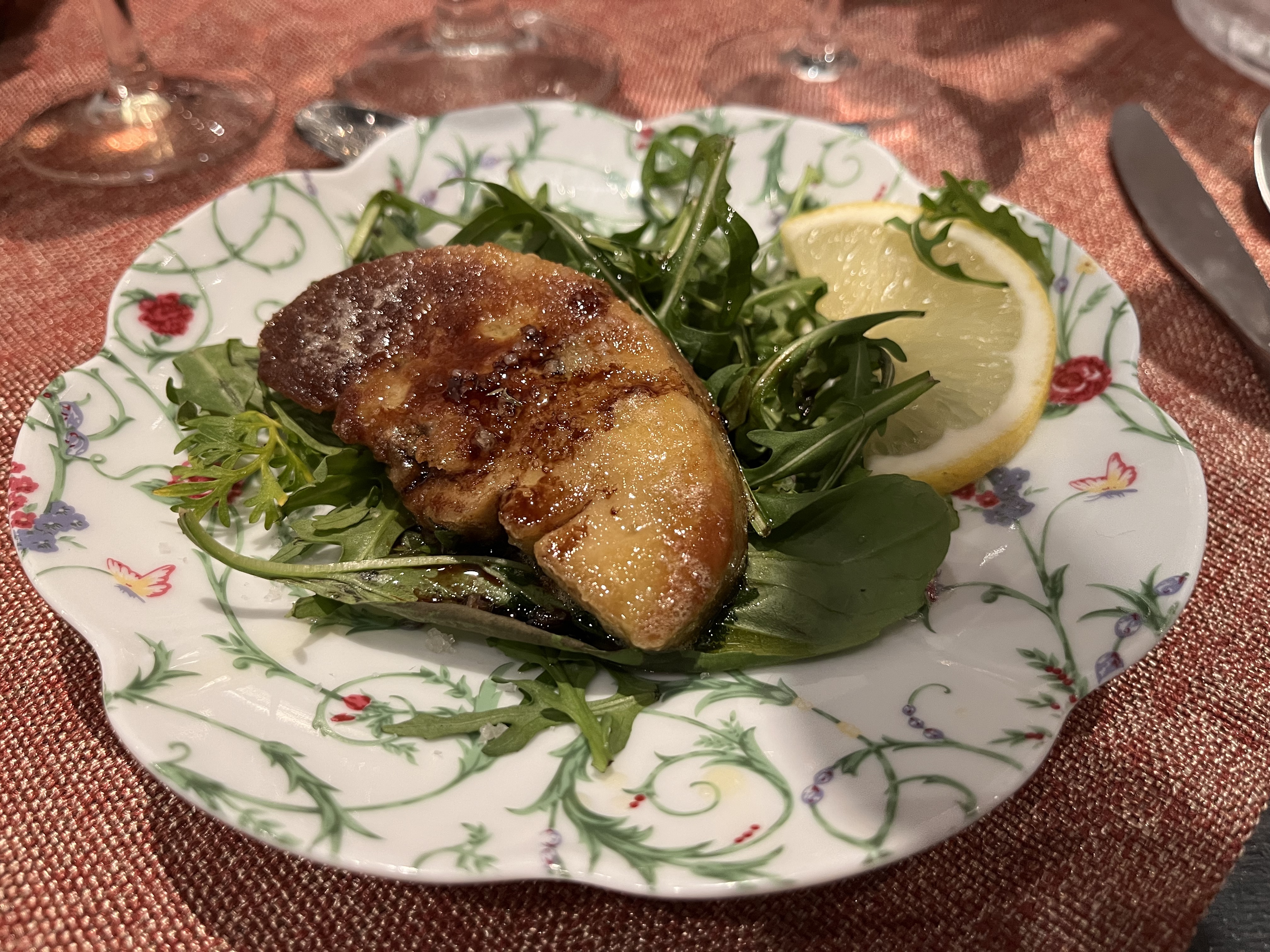 Posté le 10/10/2023 à 11:13"Nous avions réservé en terrasse et heureusement car il y avait beaucoup de monde ! Cadre très agréable ,entouré de plantes vertes et ambiance cocooning . Choix entre 2 entrées puis la suite dans une assiette qui va jusqu'au fromage , ce qui permet un service rapide au rythme ou les clients mangent. Le foie gras : une tuerie avec une confiture d'Olive !! Et l'assiette , que dire ? Sublime avec : -coquilles st Jacques (sans corail) avec un rizotto et une sauce lègère à la crème aromatisé au parmesan. - une petite cocotte avec du filet mignon et cèpes - un flan de légumes accompagné de dés de tomates coupées . - un fromage de chèvre moelleux à souhait. Rassasiées, on reviendra pour un dessert. Prix moins de 40e par personne + 1 verre de vin. Nous avons adoré."