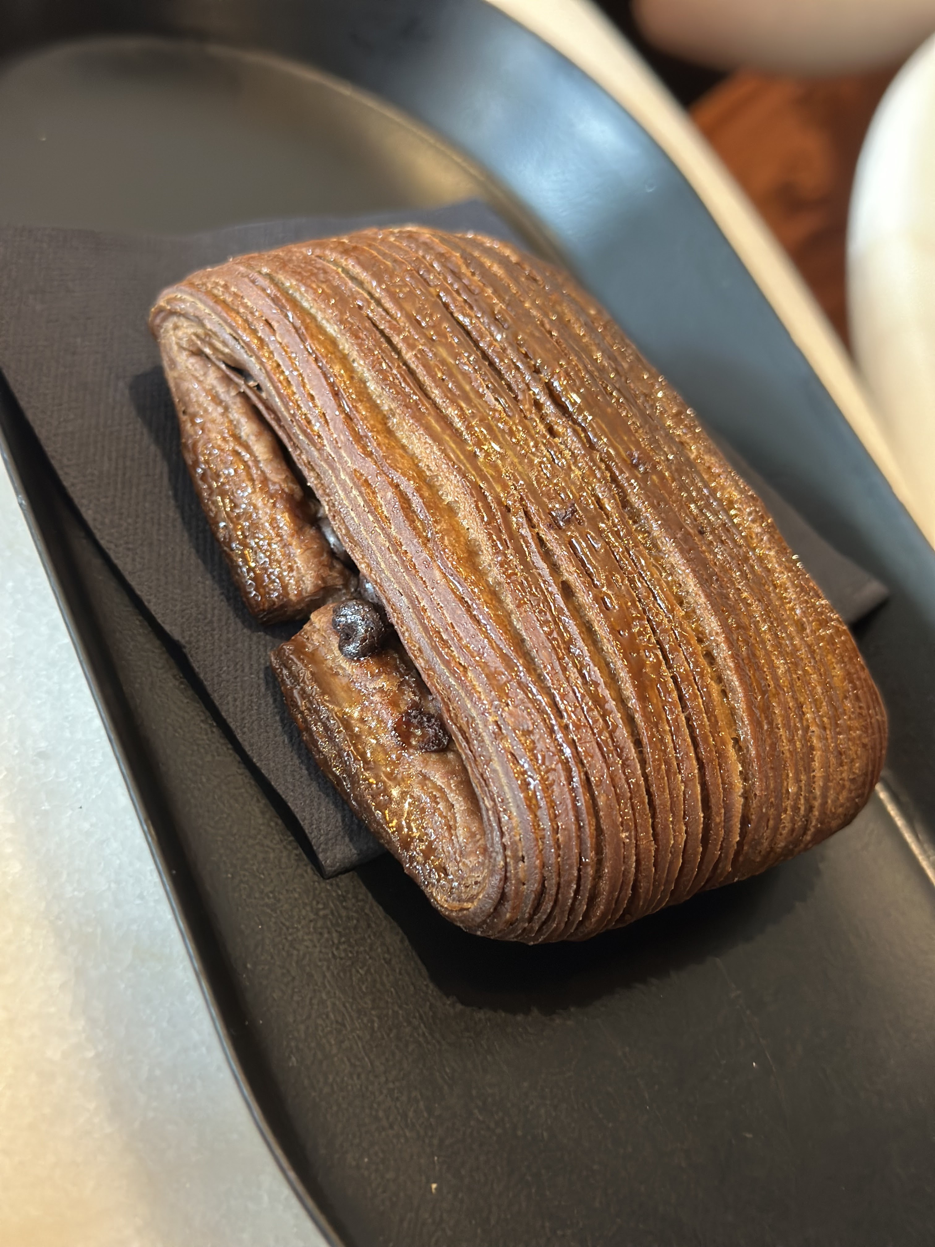 Excellentes viennoiseries, surtout le pain au chocolat fourré à la crème noisette (je crois). Un pur délice !