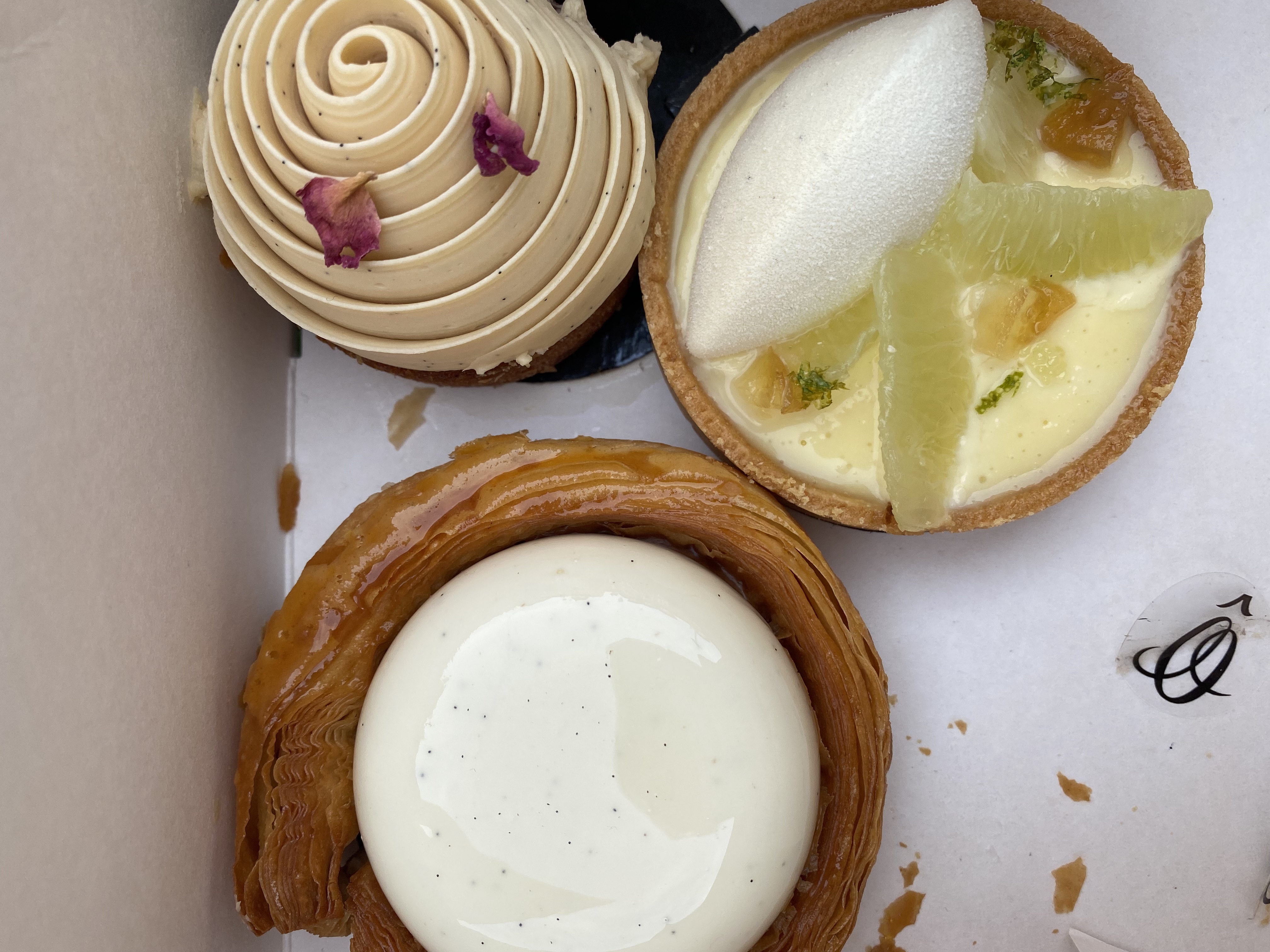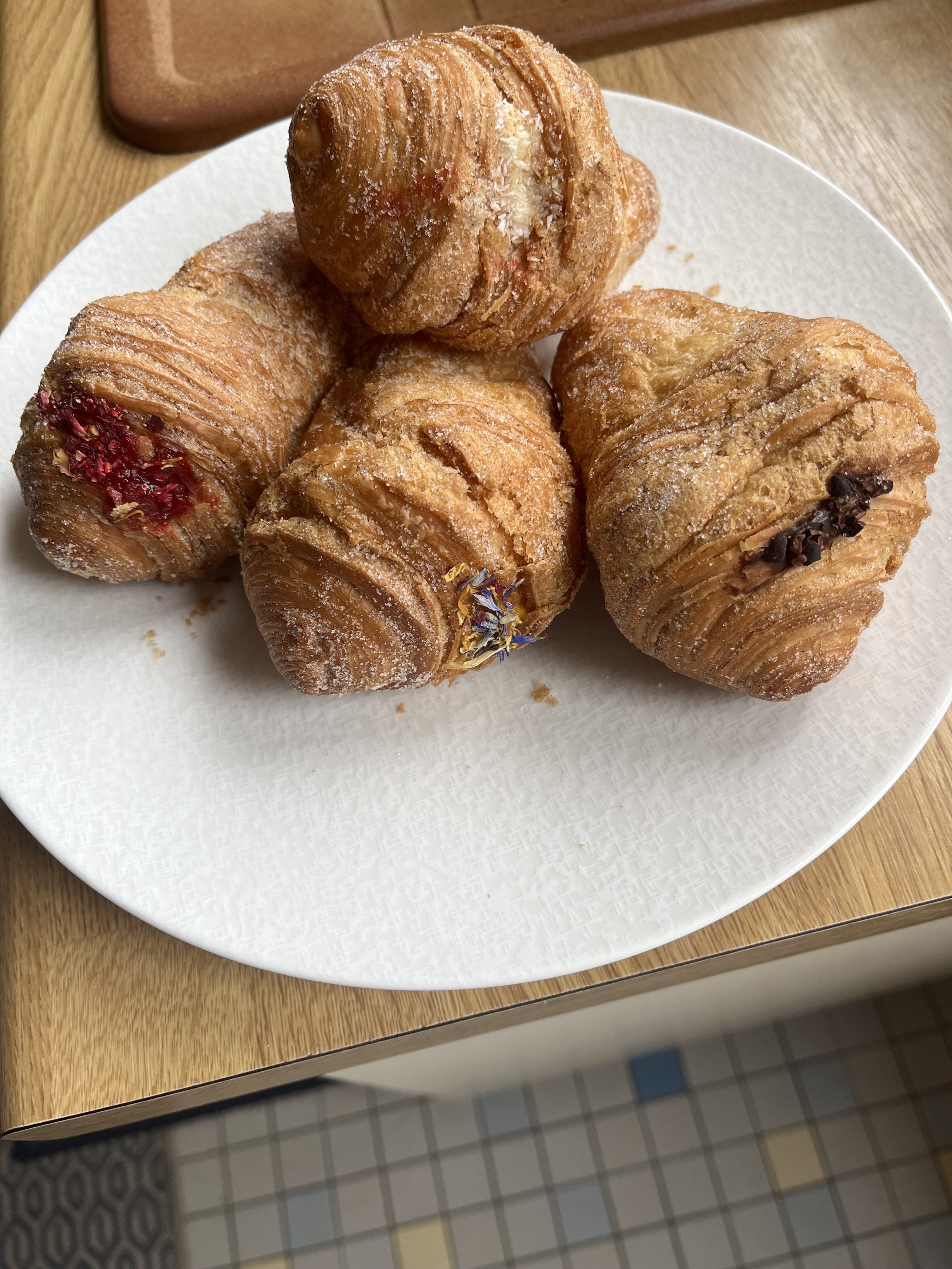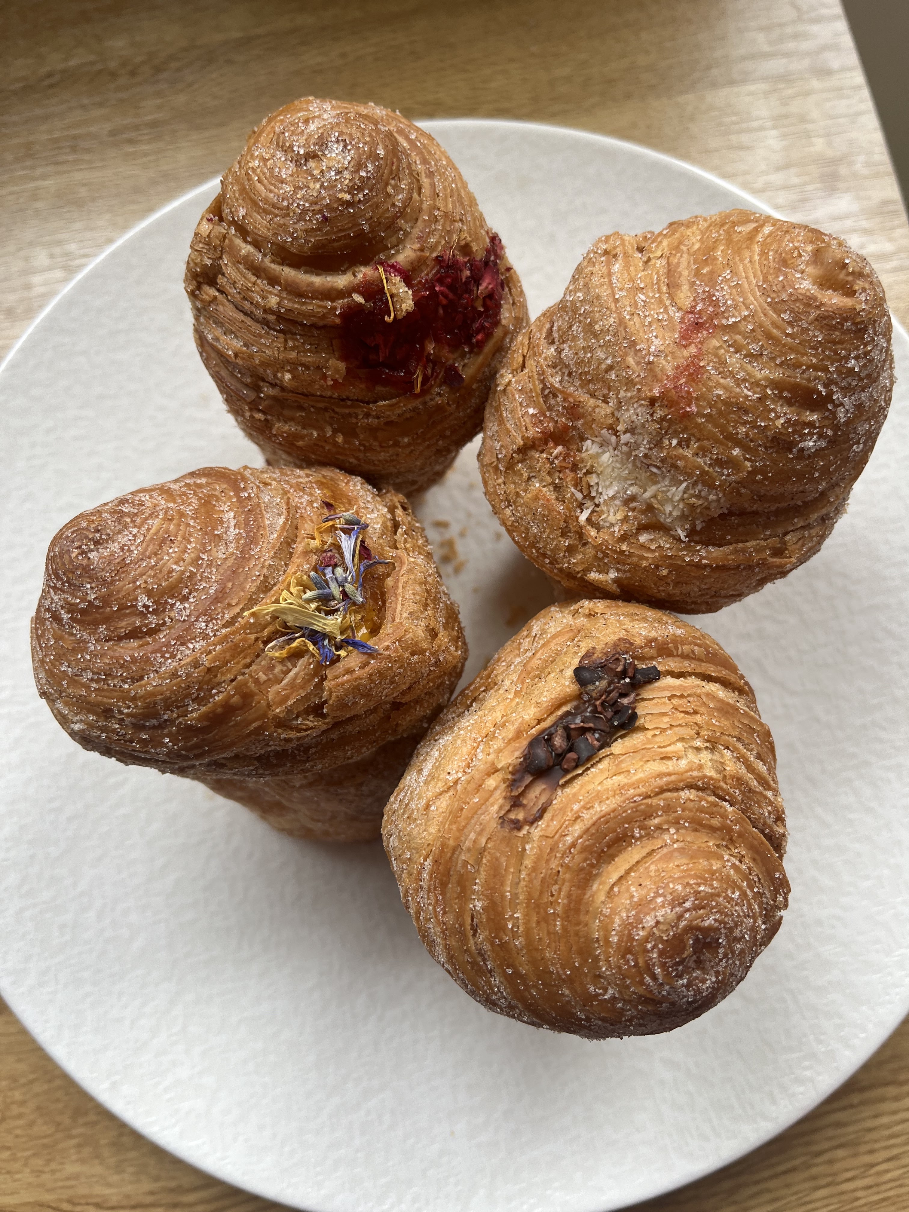 Des produits aussi beaux que bons ! J’ai pu goûté les croignets à toutes les sortes, les meilleurs étant pour moi les deux aux fruits : mangue-passion et framboise-rose 😍 Juste un peu déçue qu’ils ne soient pas assez garnis ! Je reviendrai avec plaisir pour tester d’autres pâtisseries/viennoiseries 🥰