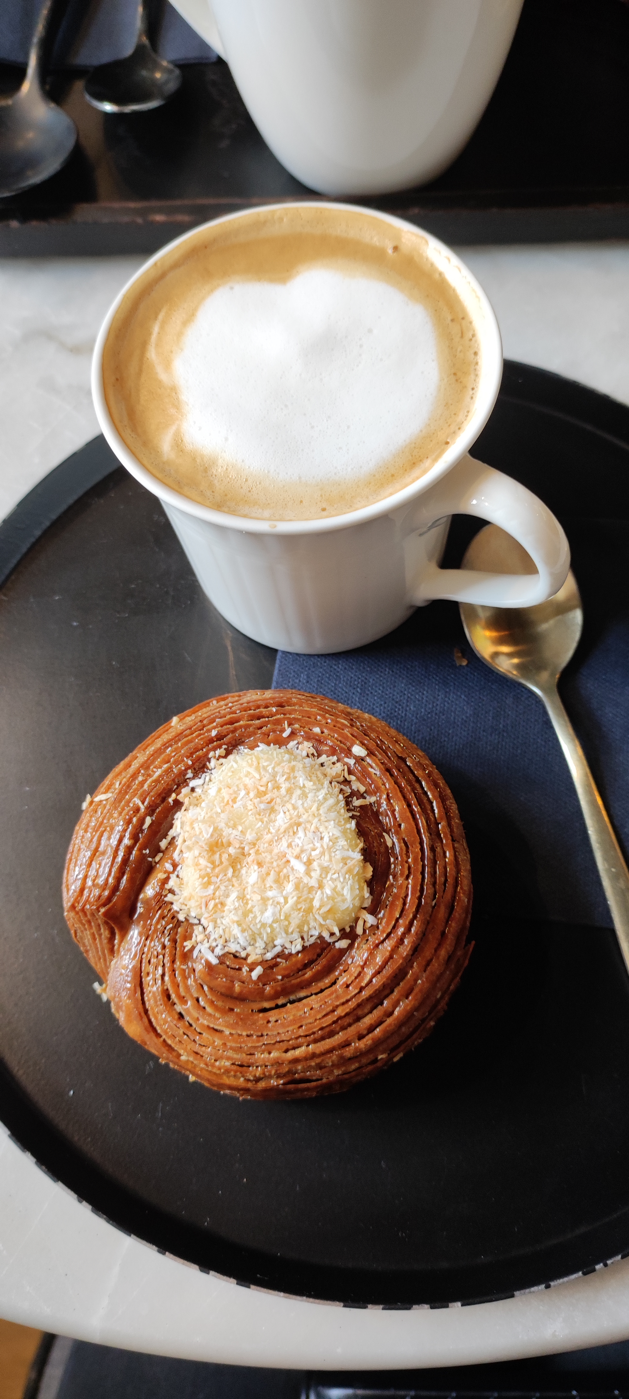 Recommandé par une amie j'ai vraiment adoré ce petit cocoon des viennoiseries ! Mention spéciale pour les Cronuts aux feuilletages incroyables ! Mon préféré celui à la rose / framboise. La carte du midi et les pâtisseries sont tout autant alléchantes et originales. L' endroit est vraiment cosy et chouette, l'accueil et le service mériterait juste d'être un brin plus ''chaleureux ''. Un grand Bravo pour la qualité des produits, Parisienne de souche je reviendrai 😉
