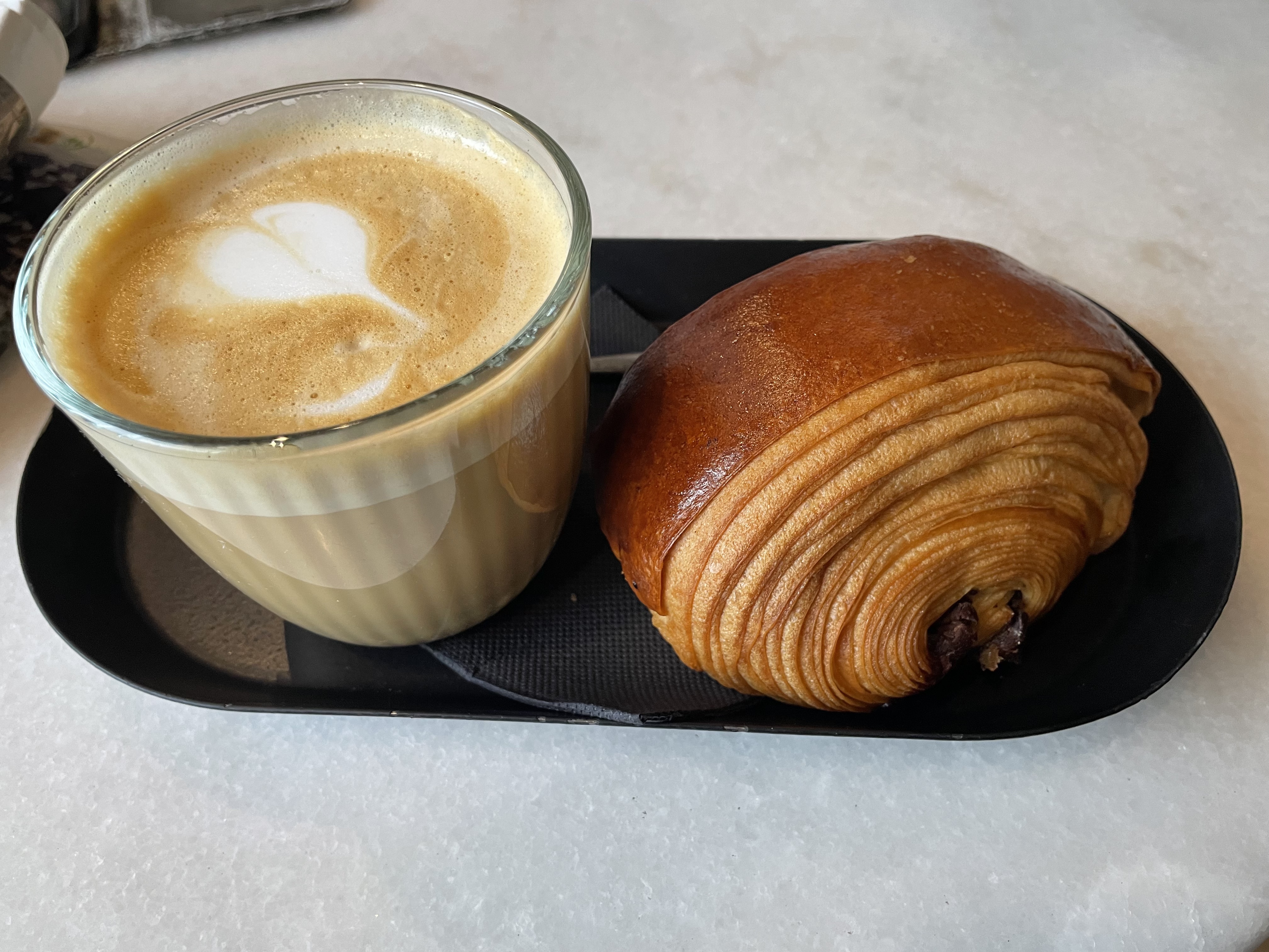 Pain au chocolat et flat white de qualité ! Néanmoins, Prix elevés pour les viennoiseries par rapport à leur taille. Ma femme quant à elle, a testé le granola et s’est régalée aussi ! Belle presentation, produits de qualité et service très agreable et souriant !