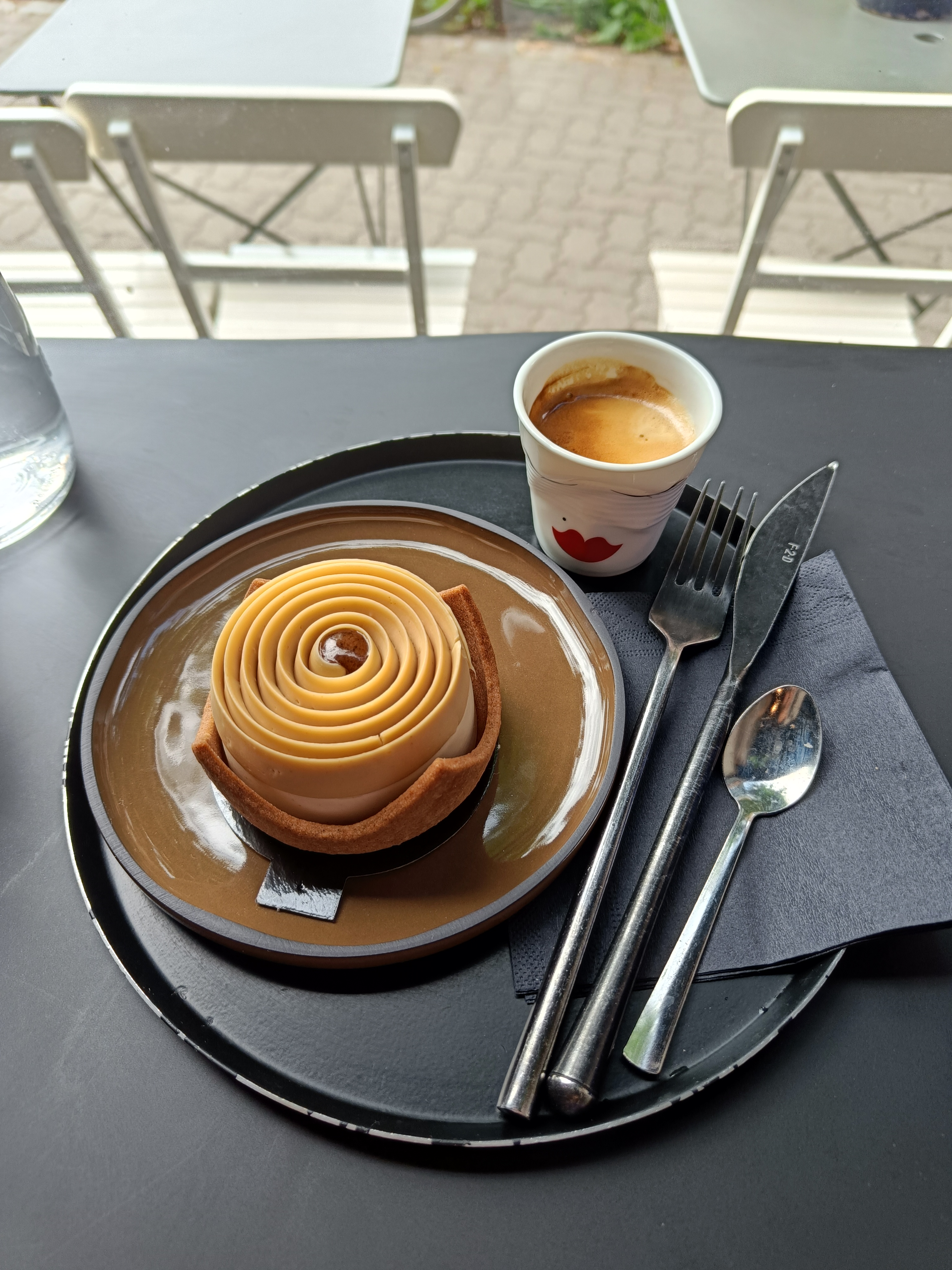 Je suis venu pour un thé et une pâtisserie. Je suis ressorti avec le sourire! Cette pâtisserie fût ma préférée de mon court voyage à Strasbourg. De la crème à la vanille et du caramel c’est un mélange de rêve. J’aimerais avoir un endroit comme ça où j’habite.