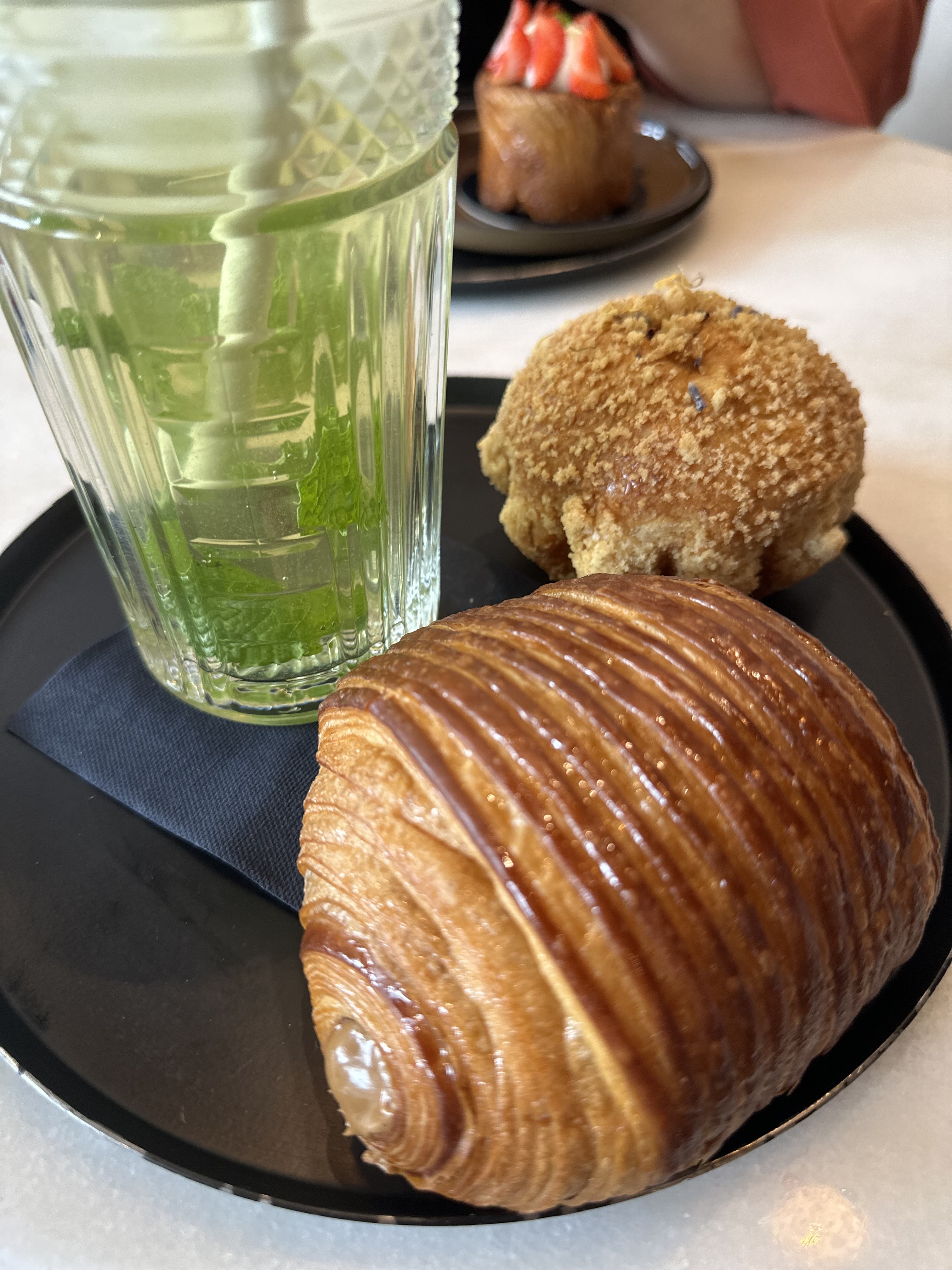 Même si les pâtisseries paraissent petit au premier abord, ils sont dosés à merveille. Mention spéciale pour le matcha latte froid excellent. Je recommande !