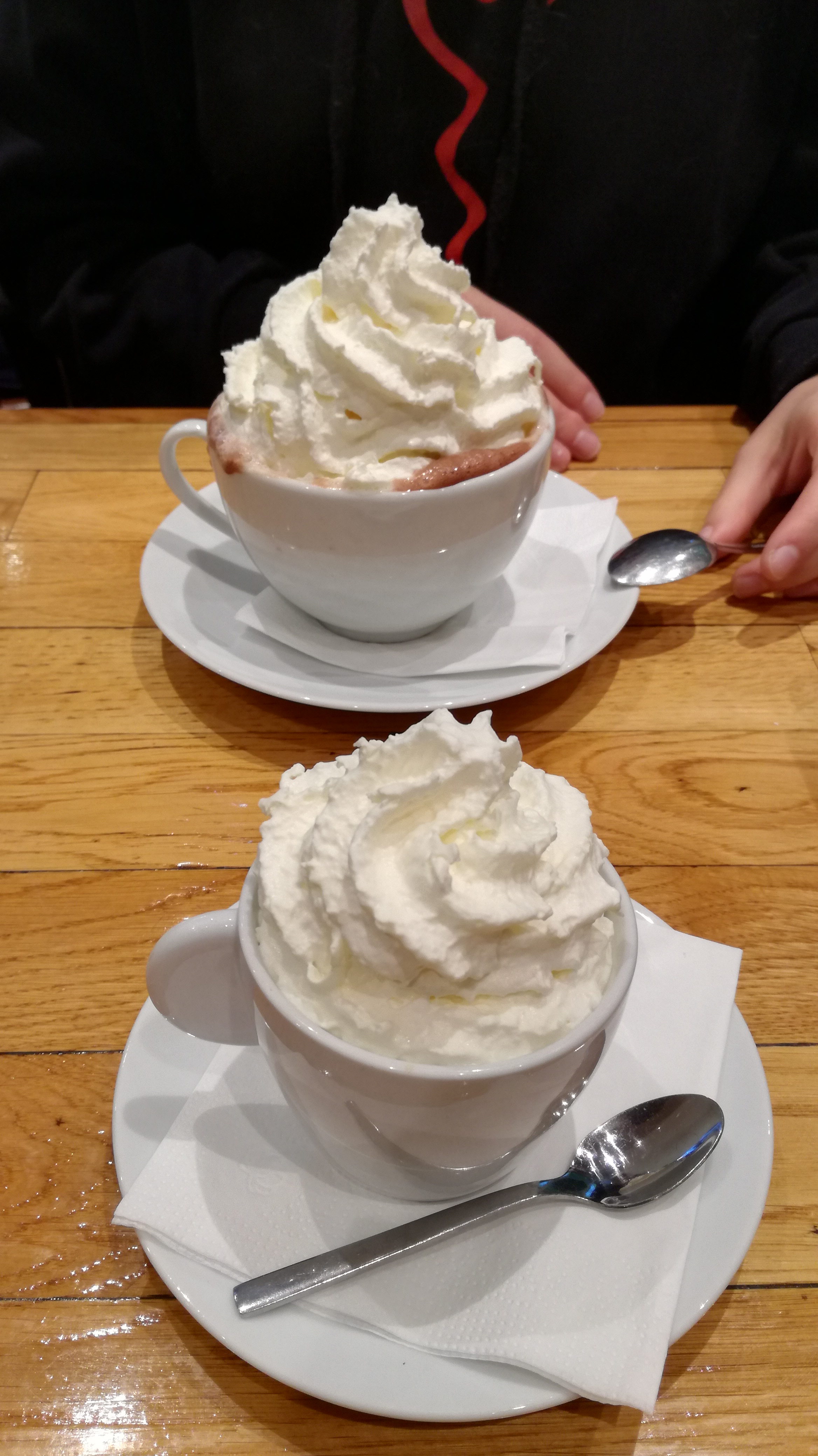 Chocolat chaud Imbuvable fait avec de l’eau pour 6€ la tasse. Même constat à la table d’à côté. Une honte de servir un chocolat pareil !!