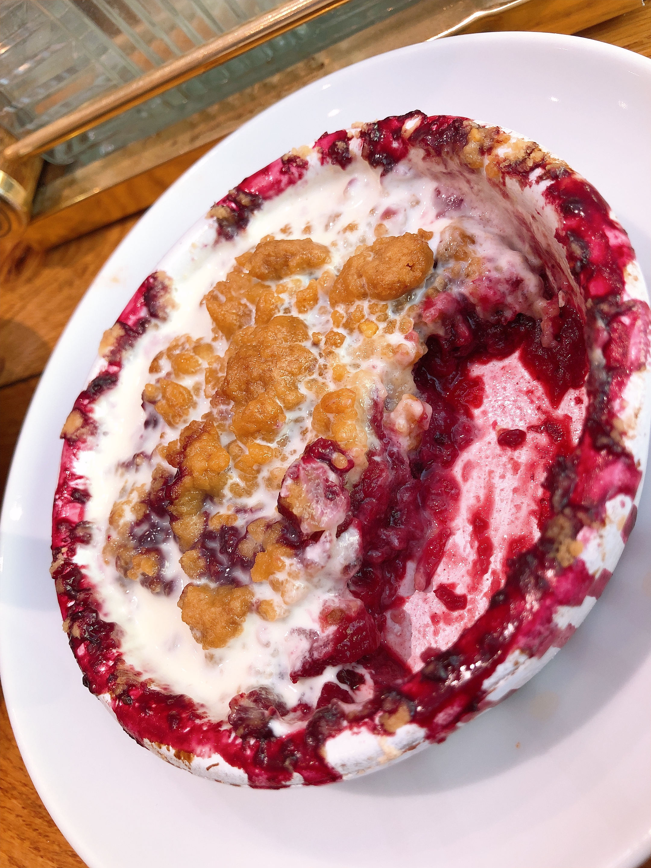 Comment vous dire ? Un moment de pause Thé à partager ou en solitaire , Thé des Frères Mariages ! petits plats maison et pâtisserie Maison ! Le crumble fruits rouges est délicieusement léger et goûteux .