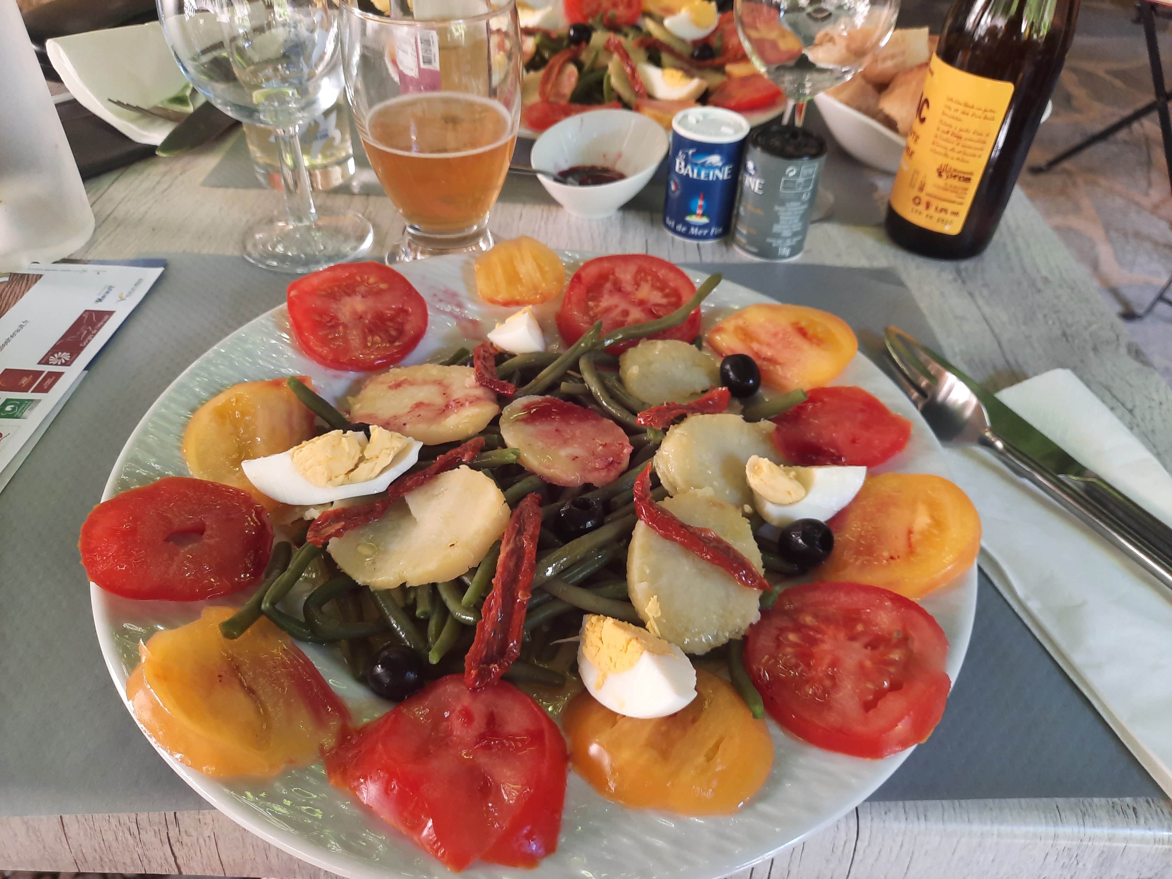 Couple charmant .avec des salades simples mais efficaces. Cadre petit mais ventilé par platane. Moment calme et délicieux