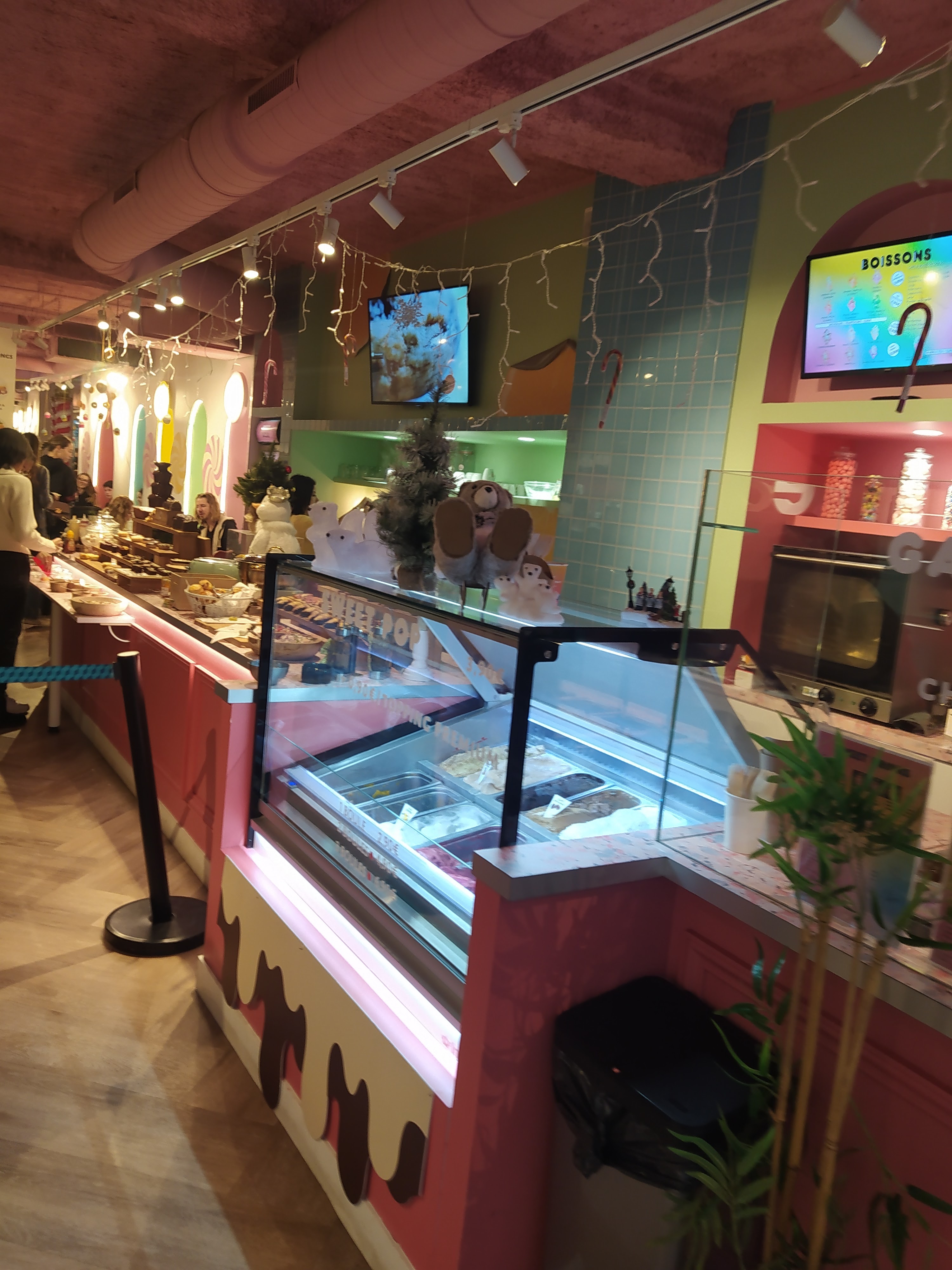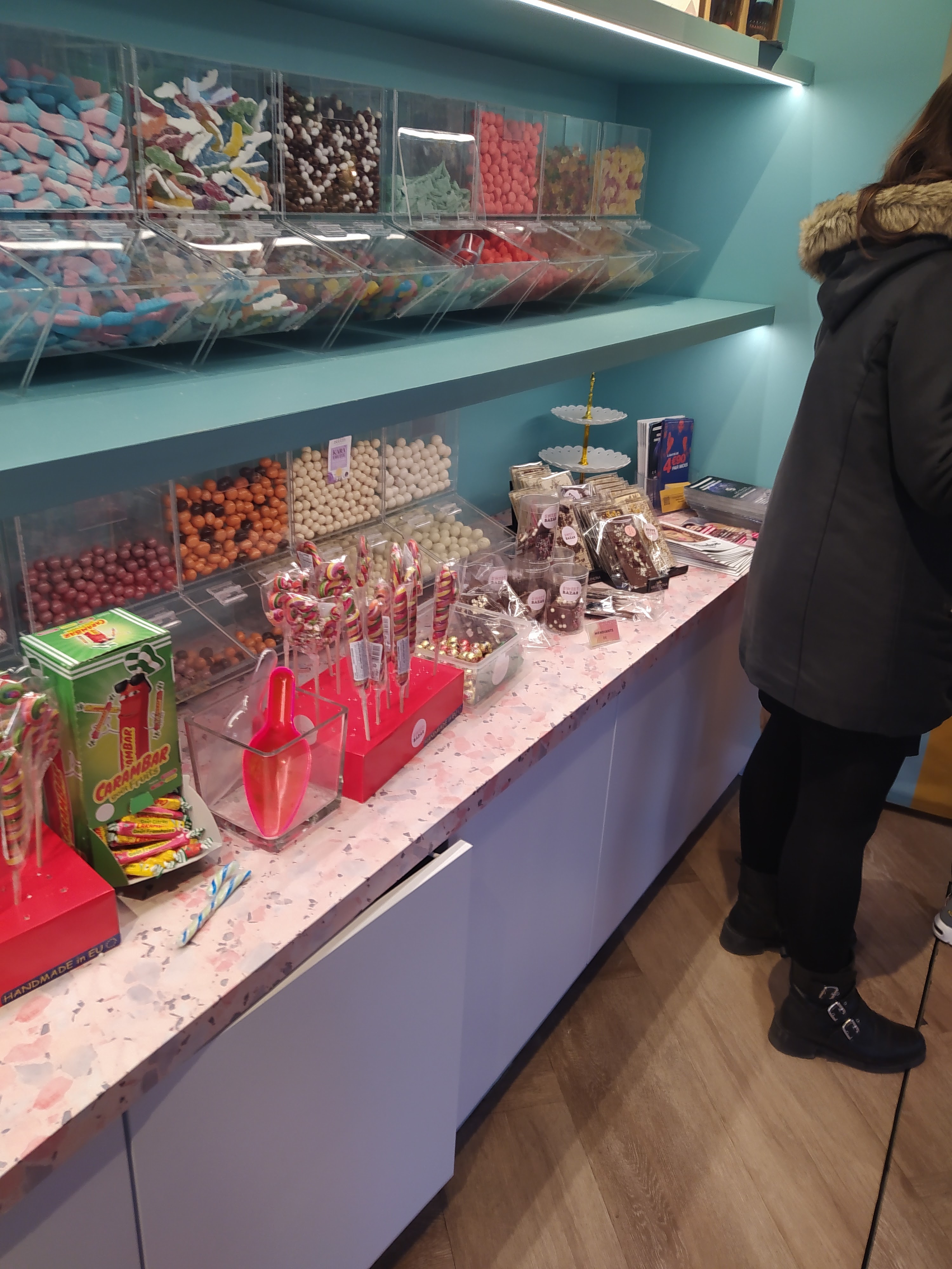 Boutique de sucrerie très très sucrées, peur être trop, impossible d'avoir de l'eau plate en bouteille. Et ils disent qu'il n'y a que des ingrédients naturels mais la couleur des bonbons a l'air un peu artificiel. Le pass sanitaire n'est pas demandé même si on mange à l'intérieur.