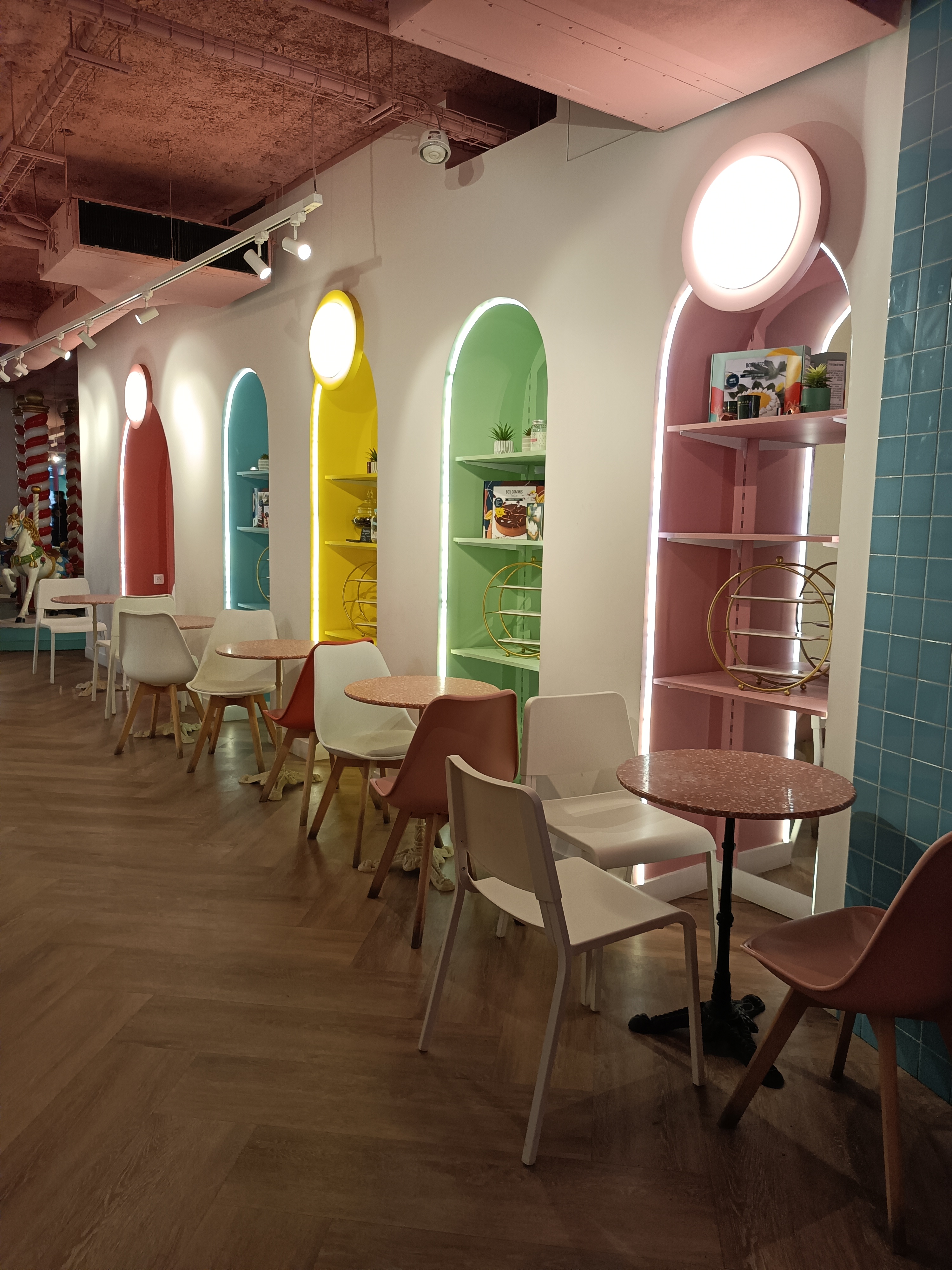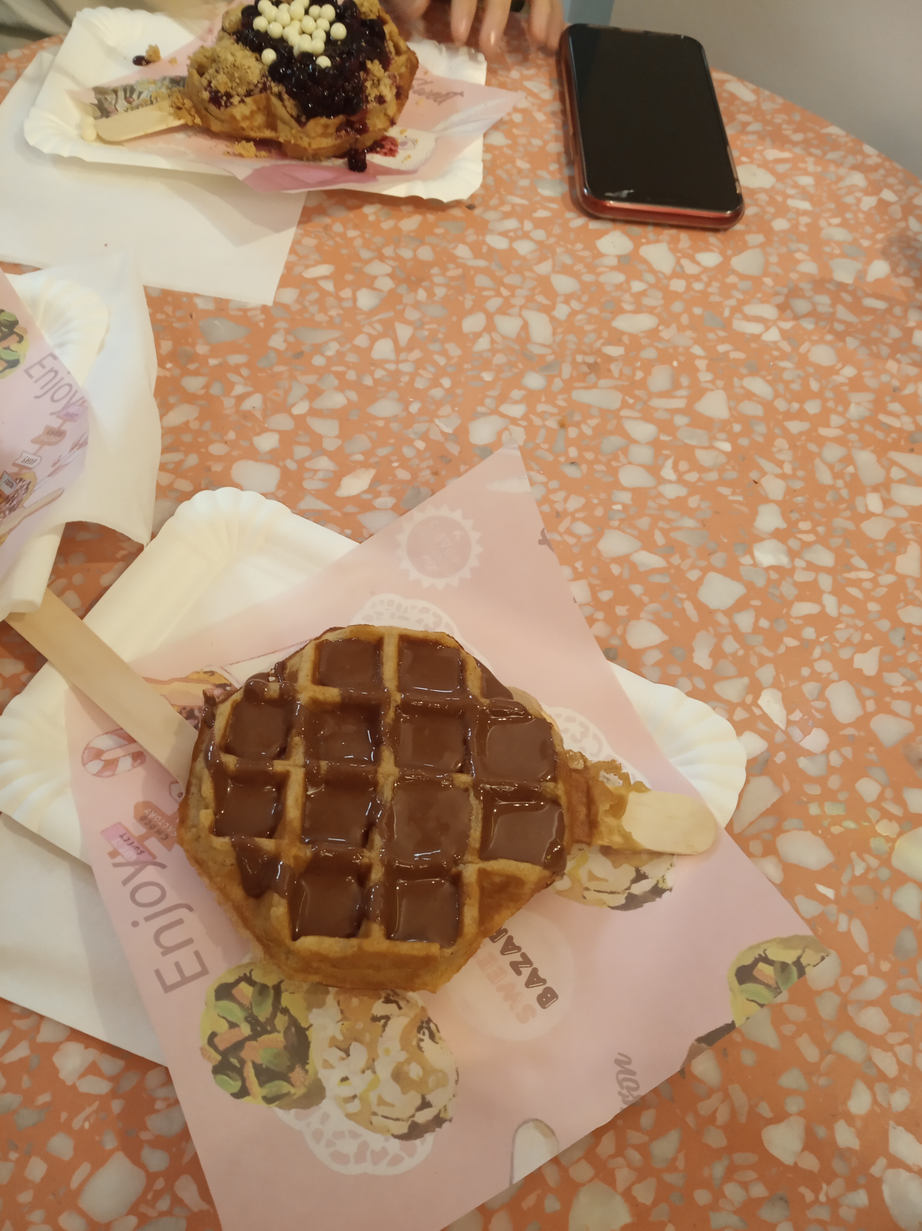 L’odeur du sucre chaud nous a attirées. Le concept est du monde kawaï, coloré, et organisé. À l’avant de la boutique en tout cas. L’arrière (il y a quelques tables) est mal entretenu et la qualité des produits (bien que jolis en esthétique) ne sont pas du tout à la hauteur (gaufre, cakepop, cookie) et nous en sommes navrées.
