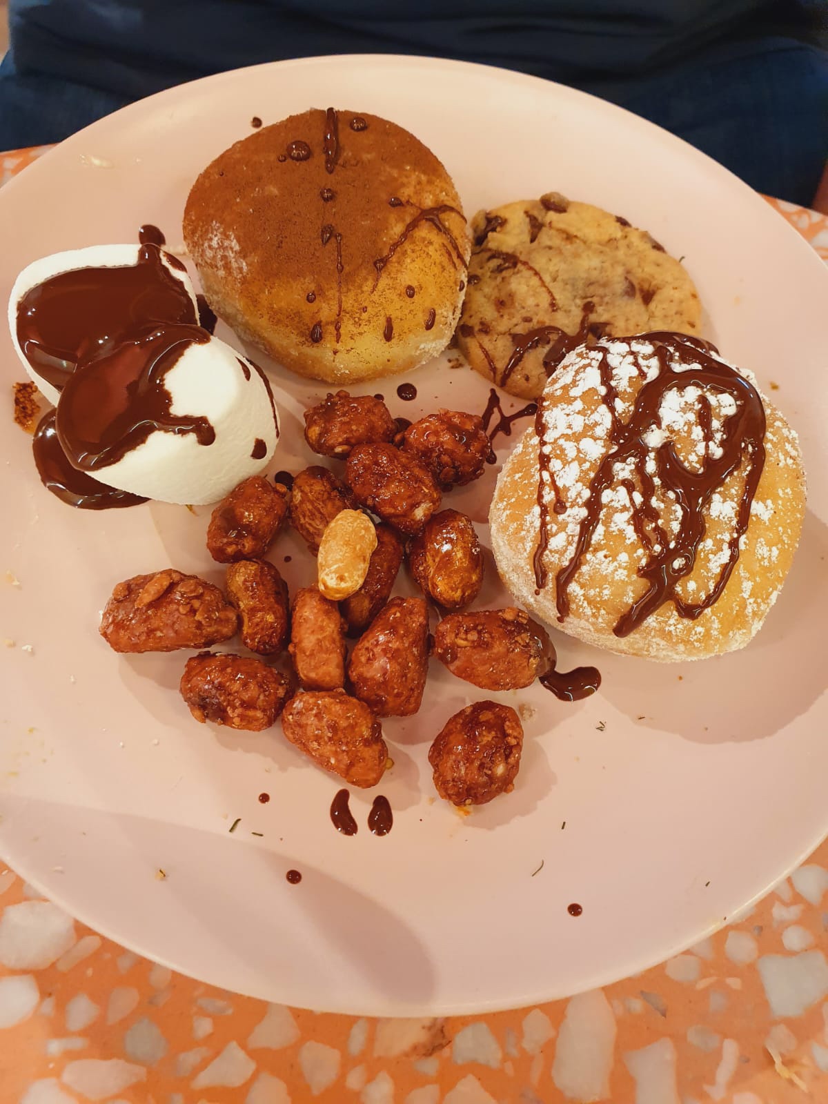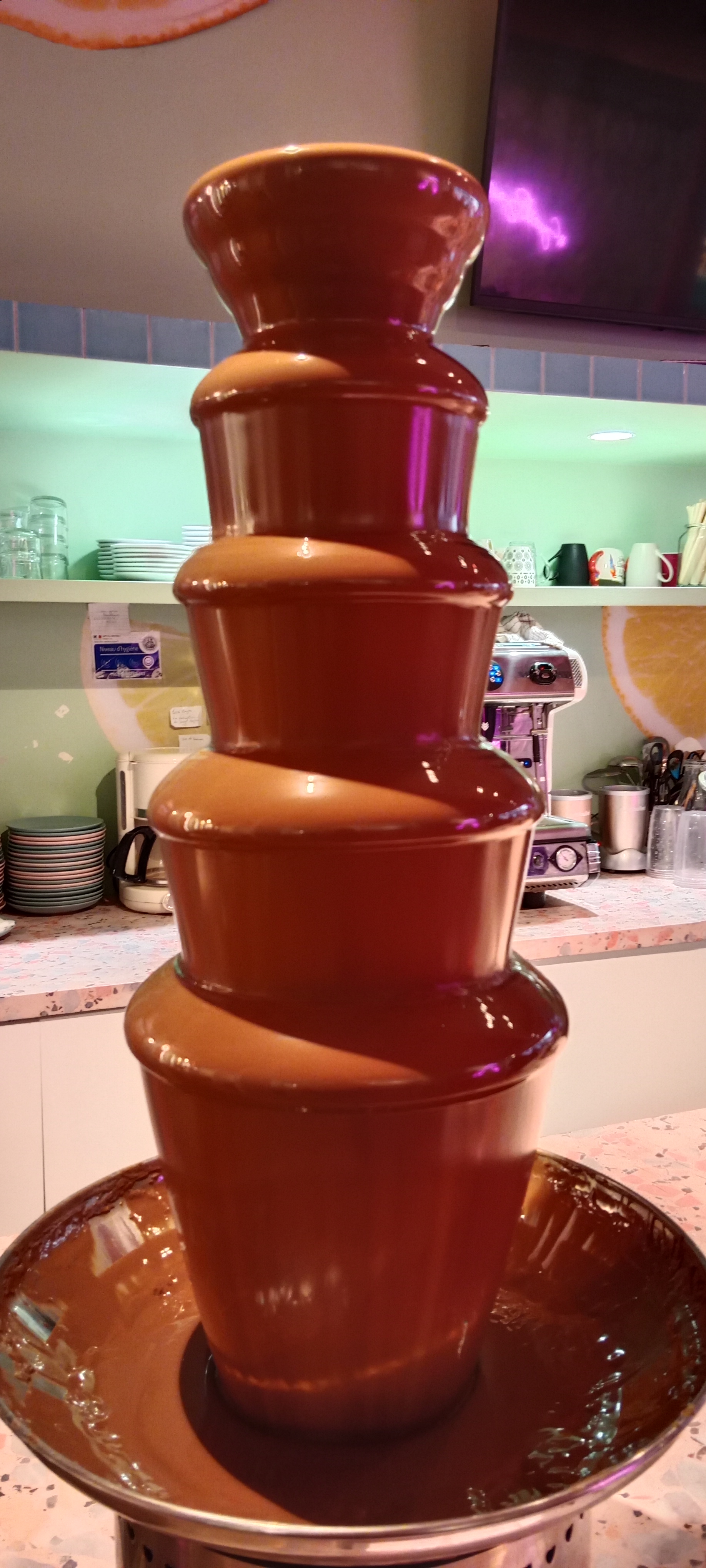 Endroit très sympathique, les plats sont préparés en continu dans une cuisine ouverte. Les pâtisseries sont vraiment délicieuses mais le must c’est vraiment la fontaine de chocolat 😍 et l’accueil était très chaleureux, je recommande!