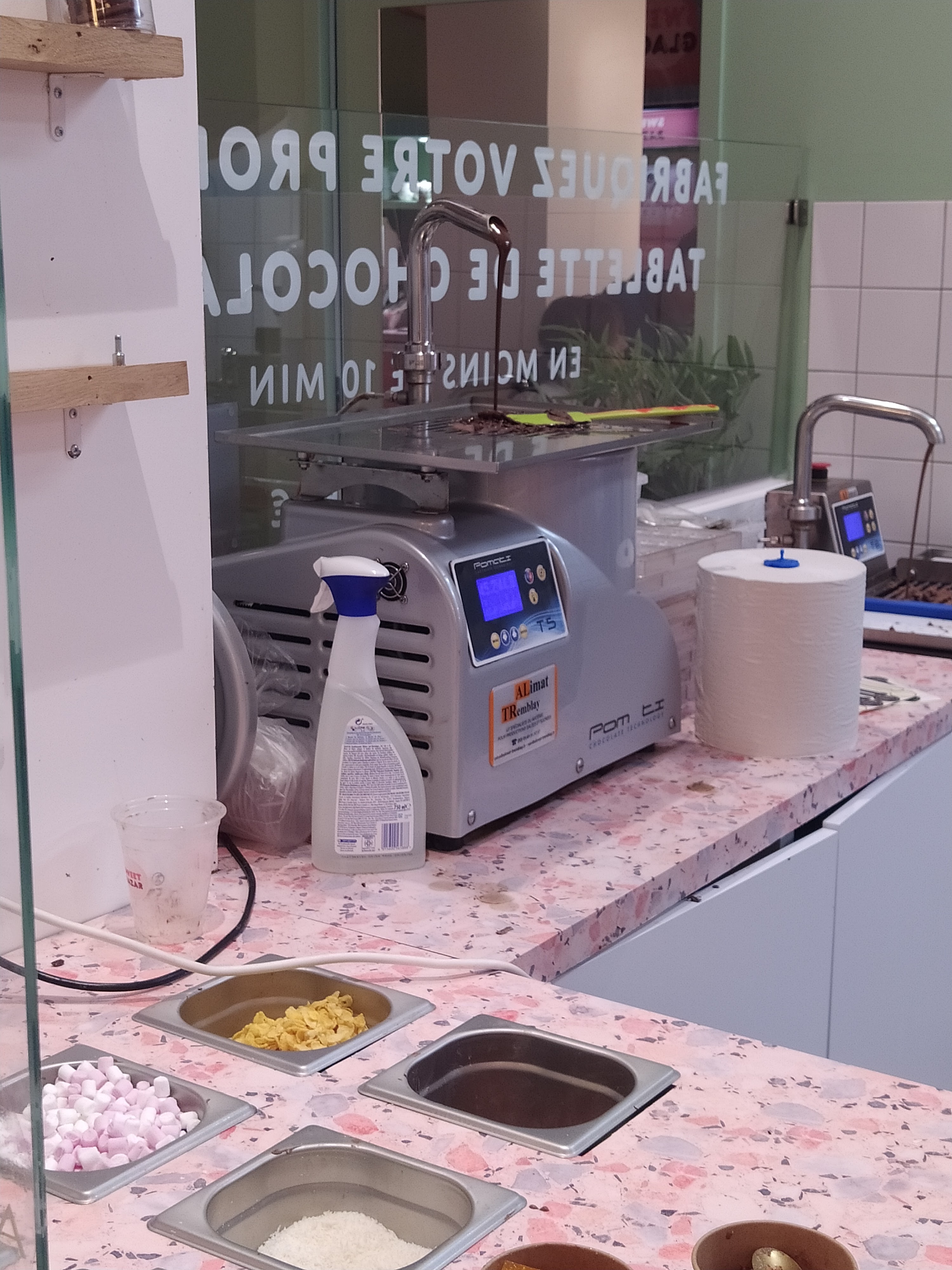 ambiance très agréable , beaucoup de choix ! et faire sa tablette de chocolat est vraiment sympathique