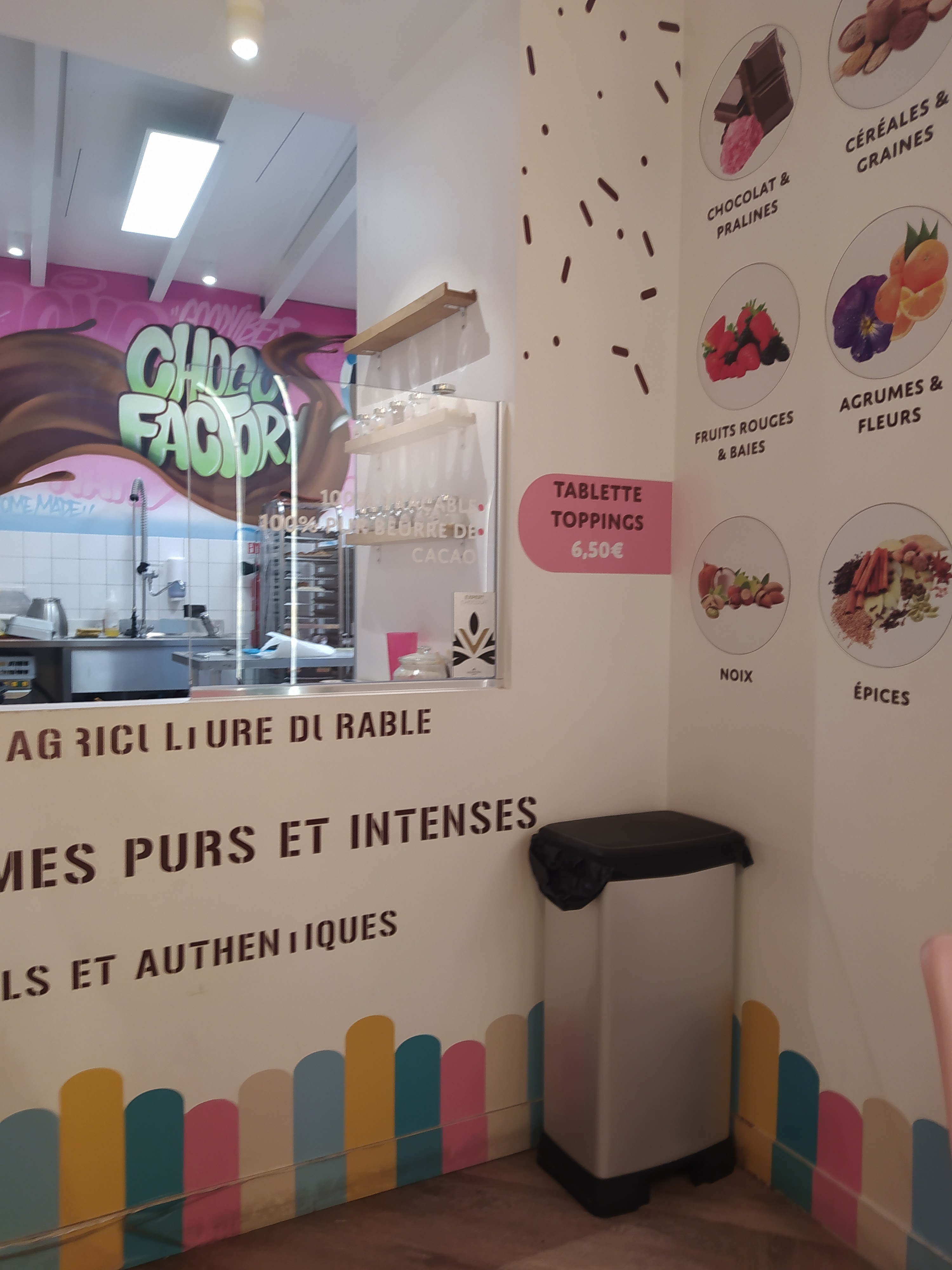 Sympa J'ai testé la création d'une tablette. C'est original et rapide. Il manque du choix néanmoins : - chocolat blanc et chocolat praliné pour les tablettes - pistaches, amandes, noisettes caramélisées pour le topping Le lieu est en outre très instagrammable et le personnel souriant et chaleureux.