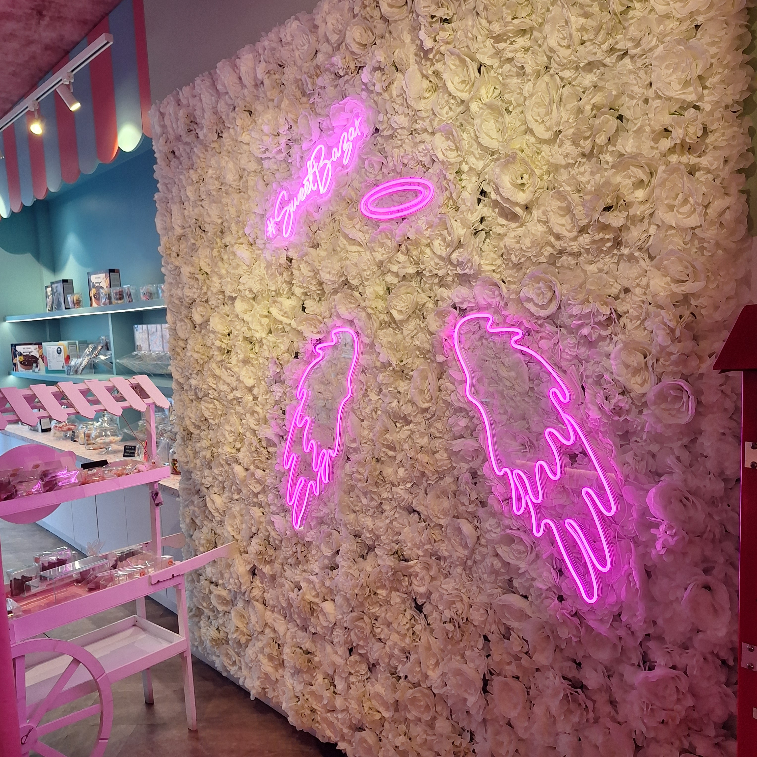 Accueil très agréable pour un lieu sucré et gourmand. Les tons pastels et le bon goût pour cette décoration charmante nous plongent dans un univers enchanté. Tout est dans le détail même la petite marche pour la photo de l’ange sweet bazar ! Que dire de plus tout est parfait bravo !!ma fille et moi même étions émerveillées.J’avais promis de laisser mon avis car c’est mérité !