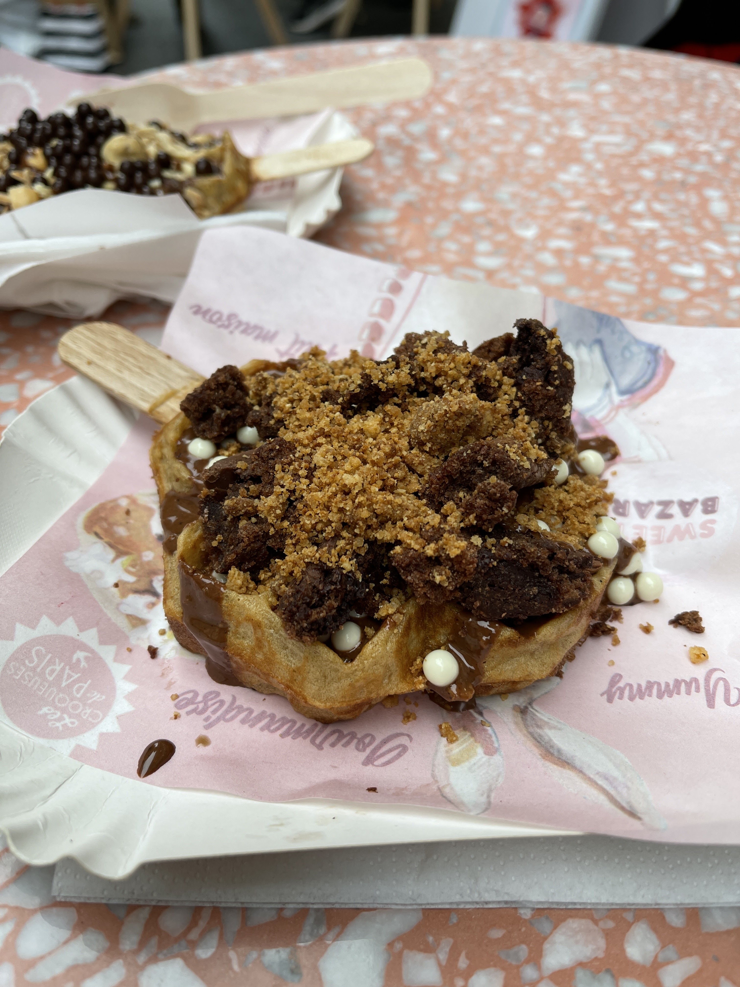 Une boutique sympa, mais pas très pratique pour comprendre les différents choix. Les gaufres sont bonnes, mais rien à voir par rapport aux vidéos/pub insta. Je pense aussi que c’est (très) cher pour ce que c’est. On paye probablement l’esthétique de la gaufre et de la boutique.