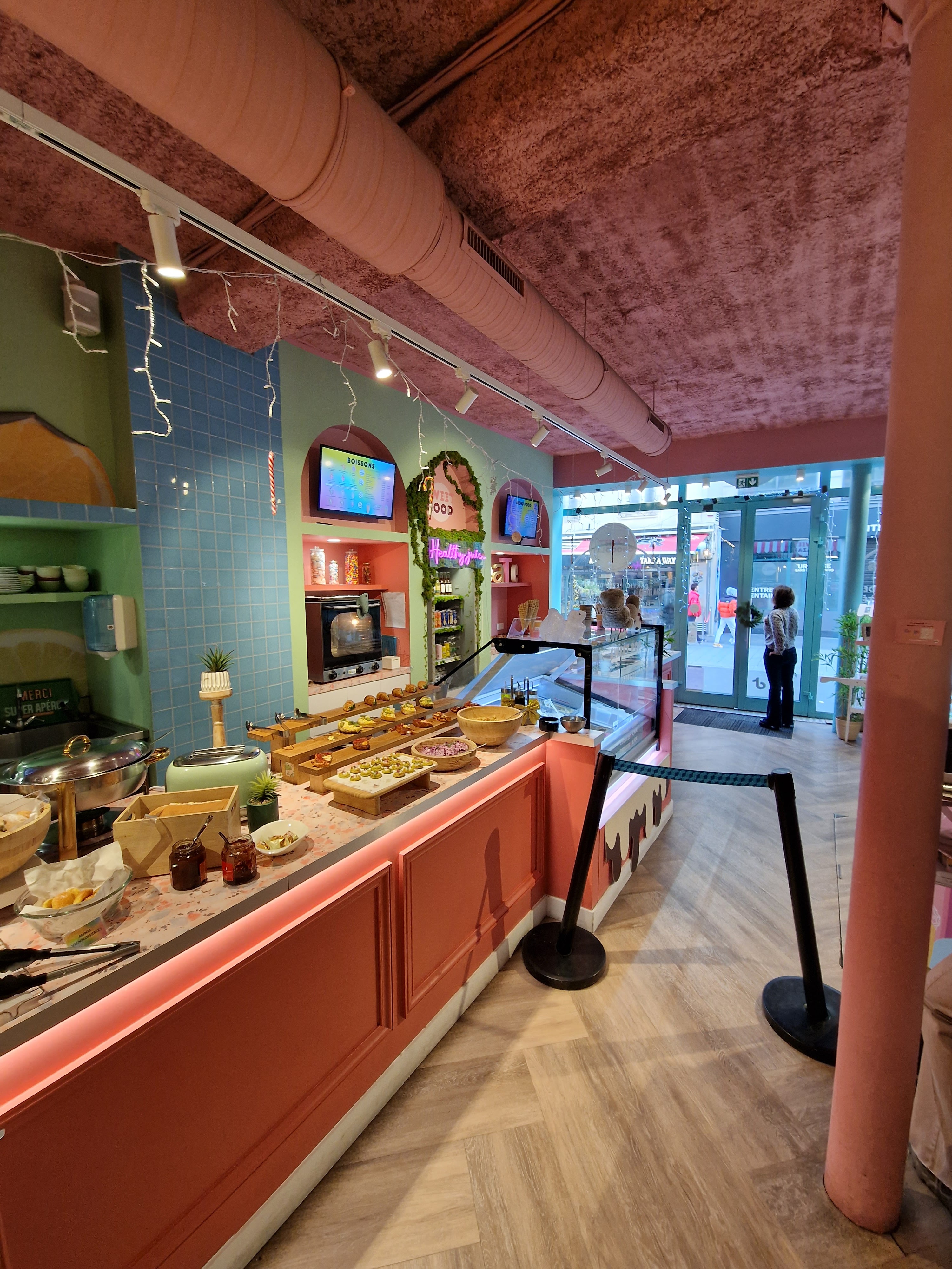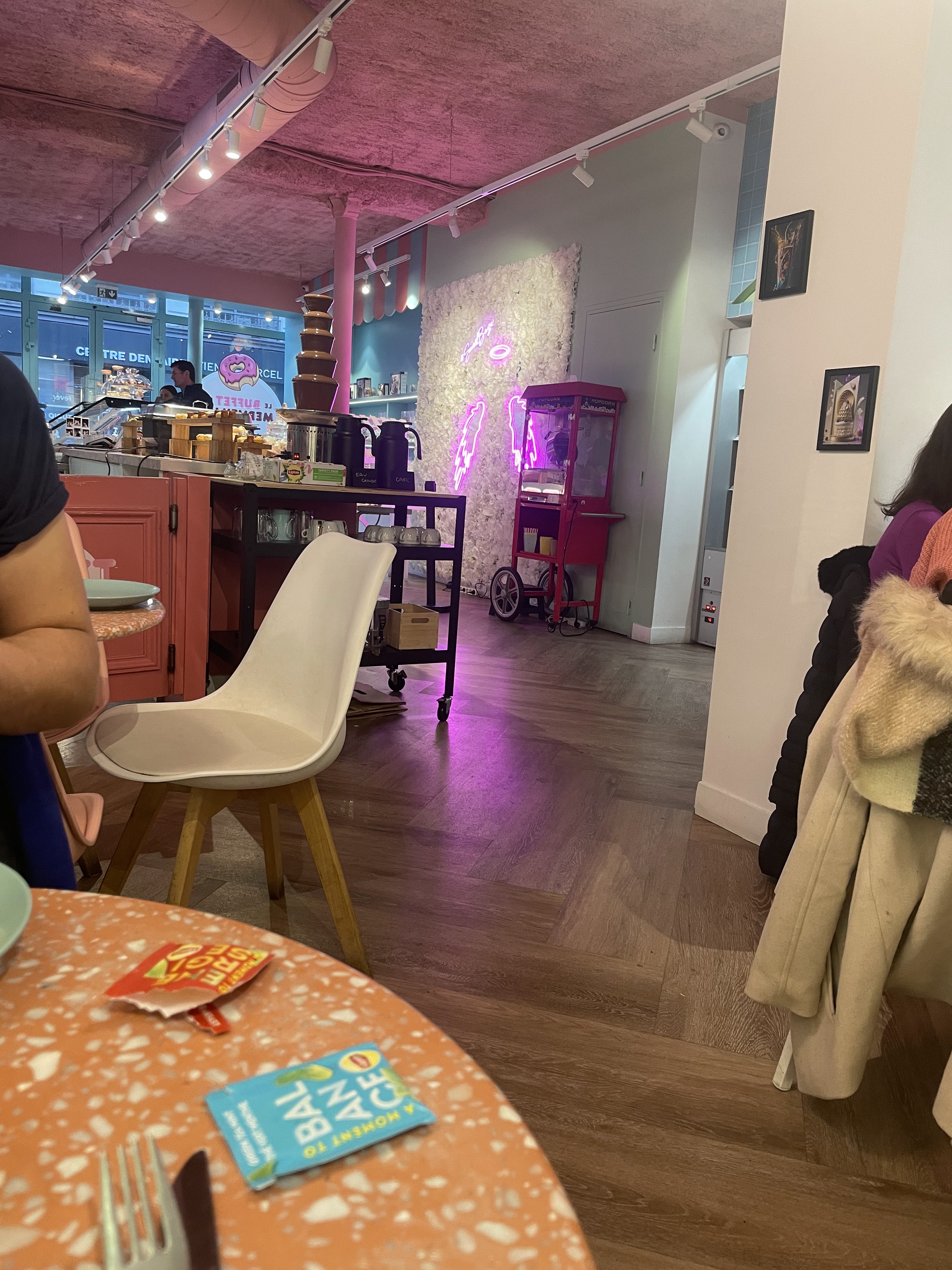 Superbe restaurant situé à Chatelet-les-halles à Paris ! Superbe découverte d'un endroit coloré et rose, acceuillant et tendance. Équipe accueillante et souriante, brunch délicieux et généreux. Décor colore et rose. Bonne humeur et bons petits plats dont beaucoup de pâtisseries pour notre plus grand bonheur. Donuts, glace, fontaine à chocolats...