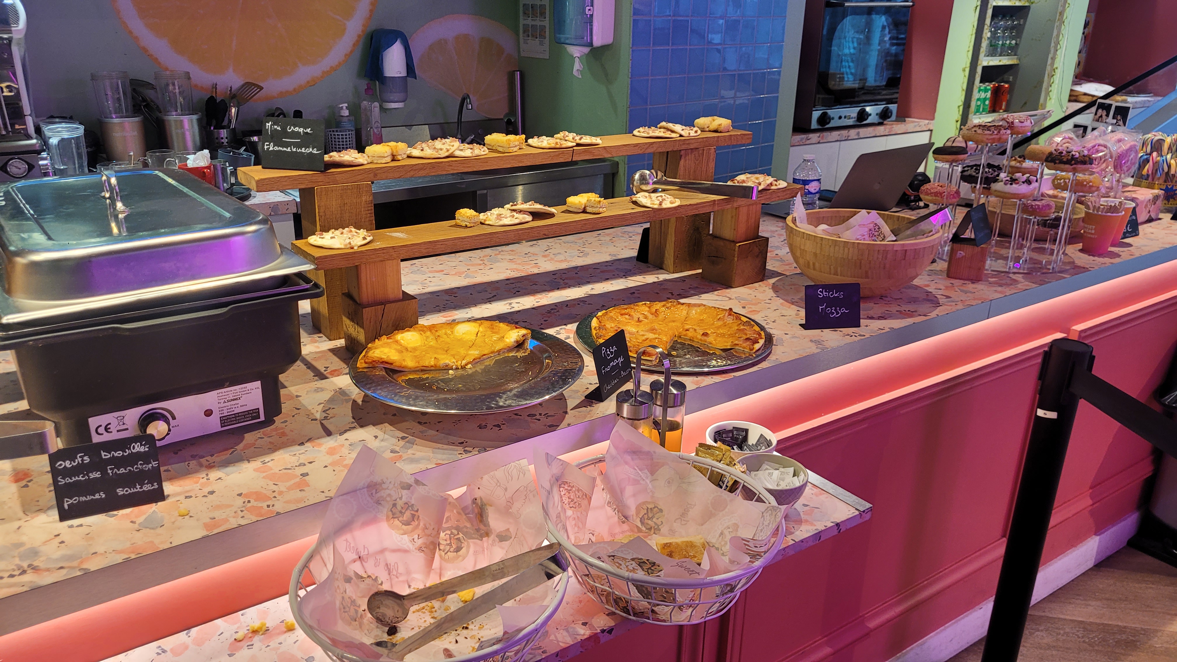 Scandaleux ! Ne vous fiez pas aux photos des réseaux, c'est une pure arnaque ! Quand nous sommes arrivés à 13h le buffet était ridiculement petit et quasiment vide, 30 min après il n'avait été que peu agrémenté. Pas de viennoiseries, quasiment que des plats salés à base de porc, quasiment aucune alternative végé, pas de smoothies, pas de jus d'orange, pas de cookies, pas de muffins, qu'une sorte de donut, pas de pancakes. Rien ne correspondait aux photos ni publicités véhiculées sur les réseaux sociaux de l'établissement. Quelle grande déception. Passez votre chemin, cela vous économisera 27 euros pour un bout de pizza de la salade en sachet et un donut !