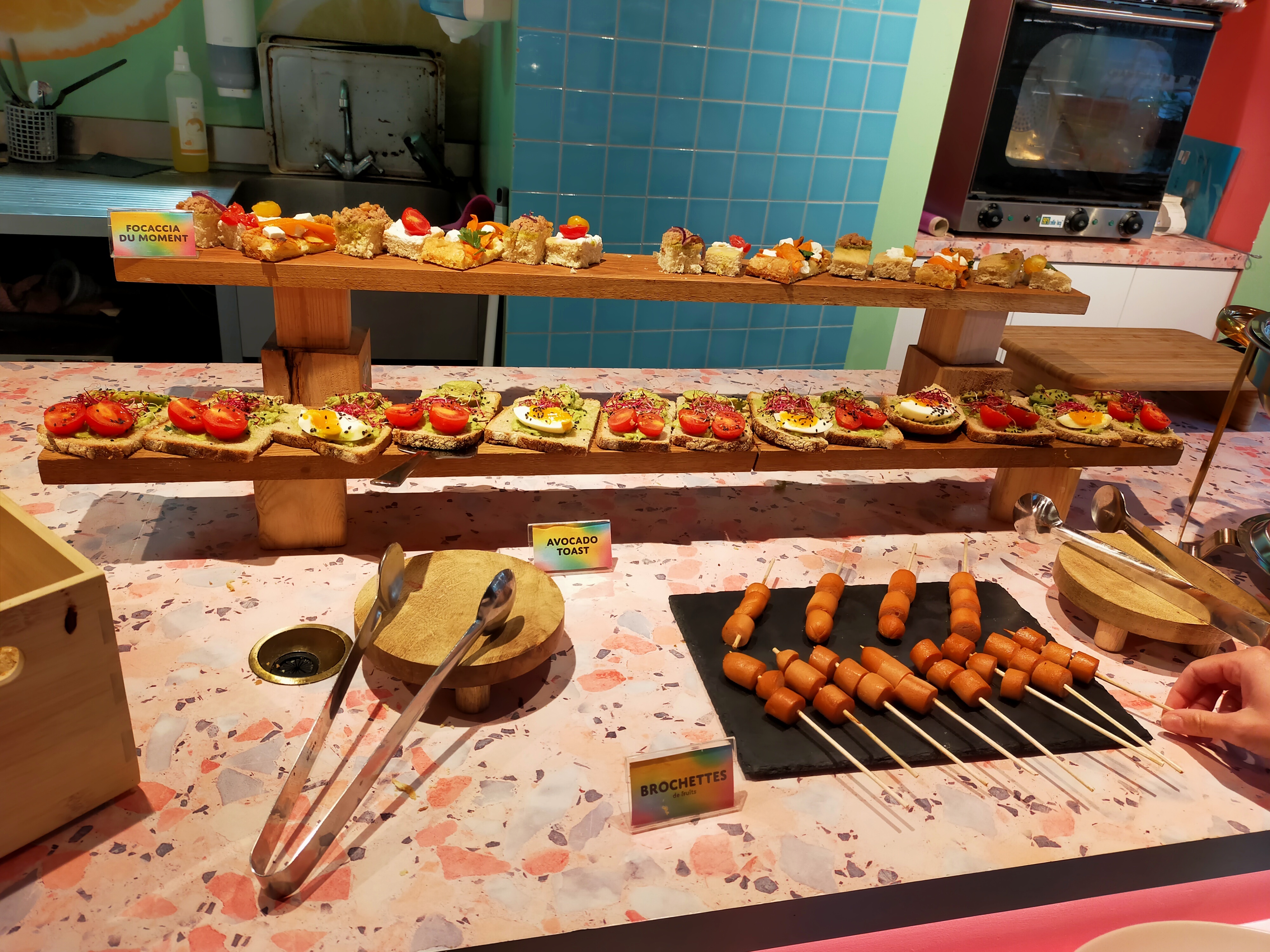 Grande grande grande déception !! Le concept est complètement sur vendu , le buffet salé était vraiment basique , aucune saveur , hormis la tartine au saumon et l'eau aromatisée , tout était fades et peu savoureux . Pour le sucré c'étais pire , des petites mignardises sec et ultra sucrées et des bonbons Haribo dans des bocaux . Le seul point positif , l'accueil et la sympathie du personnel . Pour le Prix y'a mieux comme brunch dans la zone .