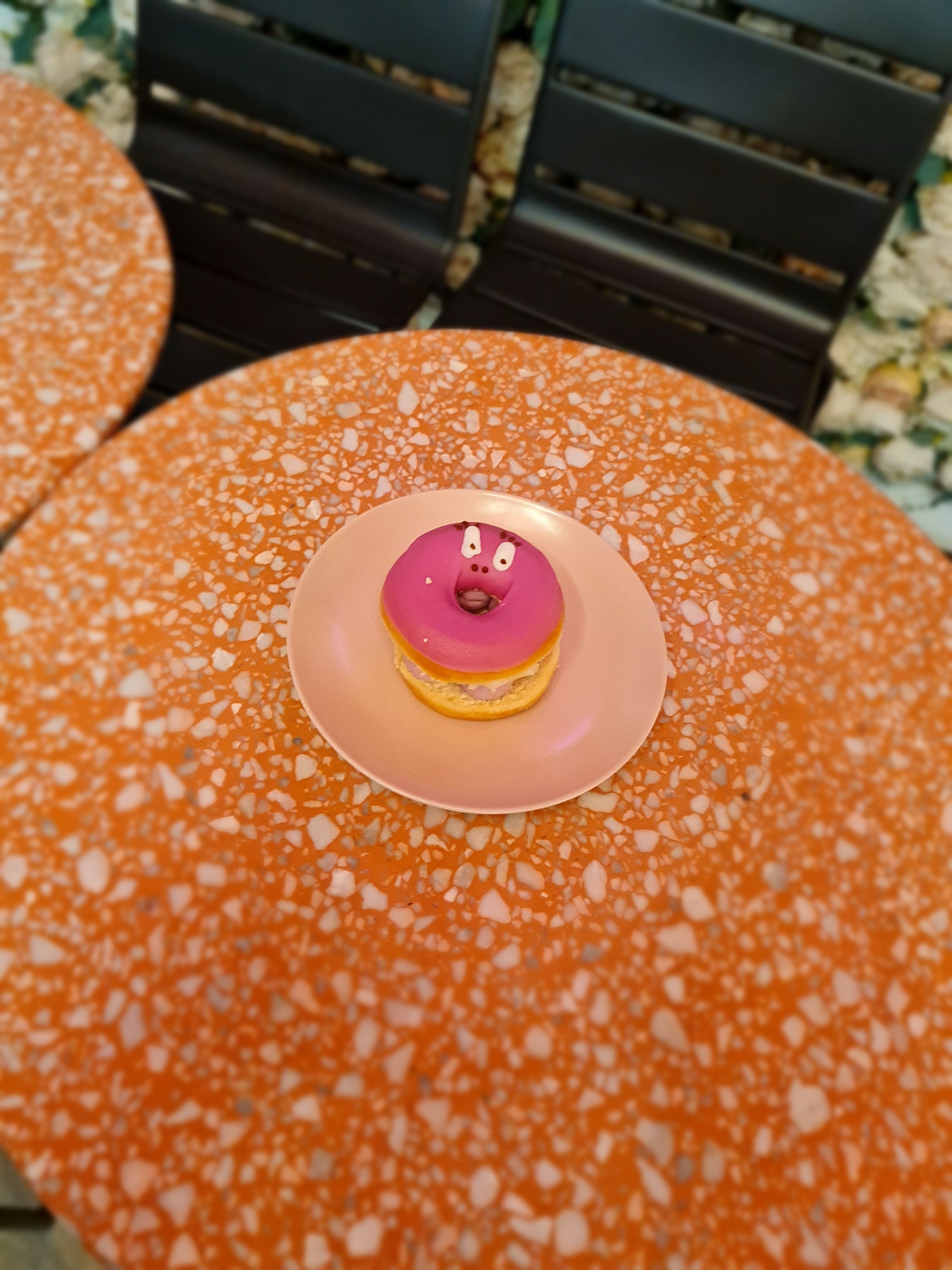 Je suis venue bruncher ce weekend et j'ai été très déçue. Je m'attendais à un buffet magnifique de pâtisseries comme dans les photos trouvées sur internet et j'ai trouvé un brunch sympa mais sans plus (pour 27€). La boutique met en valeur les donuts originaux mais ils ne sont que pour les clients extérieurs et non pas pour les clients du brunch. Le jour de ma venue il n'y avait que des donuts au sucre et au chocolat et comble de la frustration juste à côté s'en trouvent d'autres, sur une présentoir, qui sont plein de couleurs et de saveurs, mais interdits de consommation (avec panneau uniquement pour présentation a côté), qui faisaient rêver. Ensuite et finalement, peu de choix : deux pizzas froides, très plates qui laisse le doute du fait maison. Un cake salé sec (froid aussi). Des plats avec grands couvercles par pratique pour se servir (nulle part où poser le couvercle ou l'assiette. Il faudrait une 3e main pour se servir des oeufs). Quelques minuscules pâtisseries posées éparses sur une planchette. On ne sait pas si ça se veut minimaliste ou s'il ne reste plus rien, mais ça tranche avec ce que je pensais trouver ! La fontaine de chocolat est sympa, ça en jette mais elle se sent un peu seule. Et puis il y a un petit peu de tout partout. Un peu sur les tables, un peu dans des frigo ailleurs. Des petites quantités. Détail mais pour rentrer dans la partie brunch on nous demande de contourner un ruban tiré. L'ouvrir et nous inviter à approcher serait plus agréable. Par contre, service impeccable, les dames étaient adorables et souriantes. Le lieu est agréable, tons pastels, un mur fleuri (pour Instagram je pense).