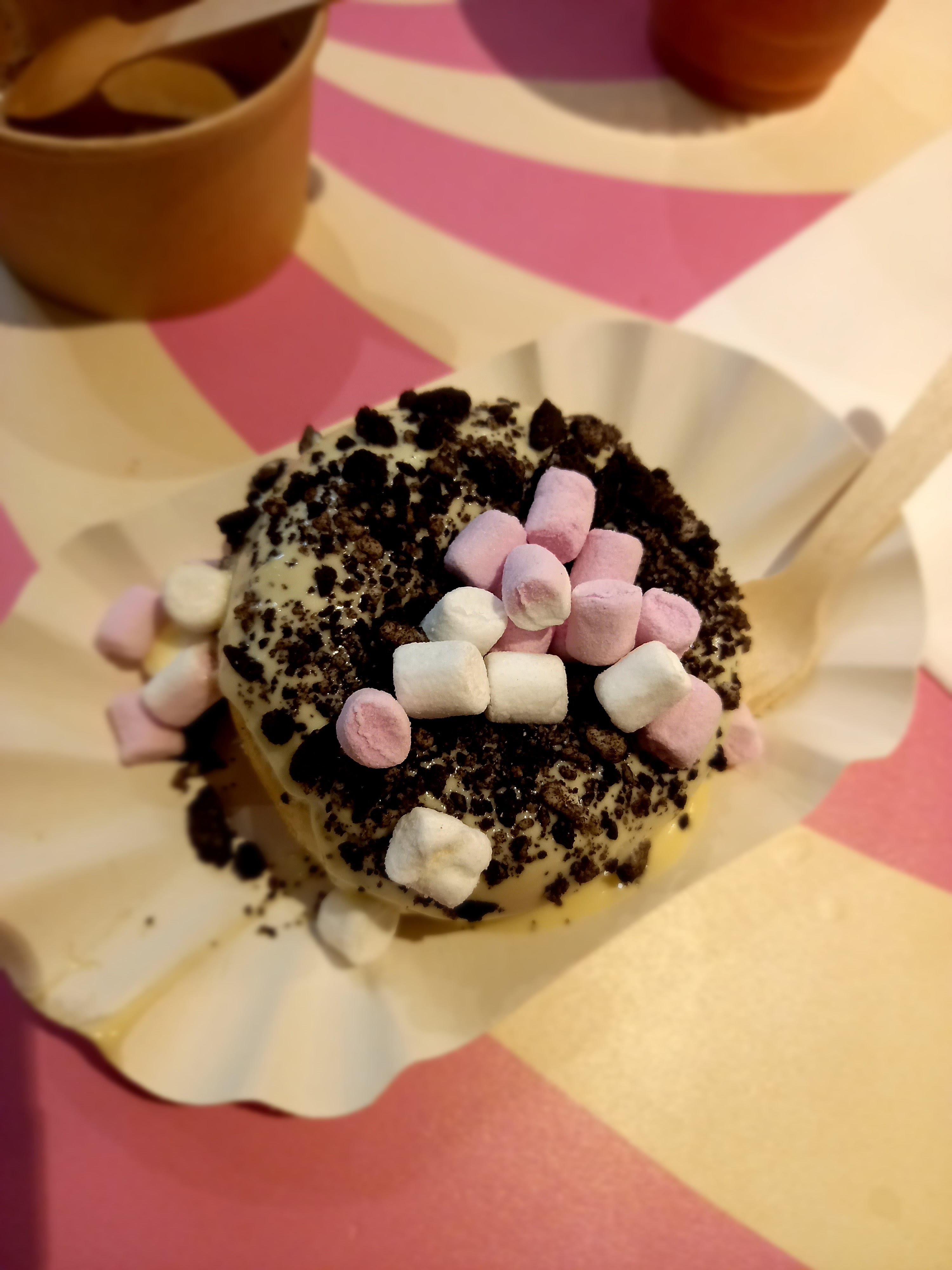 Très bonne découverte,nous avons pris plusieurs donuts et c’était succulent. Beaucoup de choix niveau dessert et les toppings des donuts personnalisables était très variés Ambiance plutôt sympathique et calme! Les vendeuses sont très agréables.