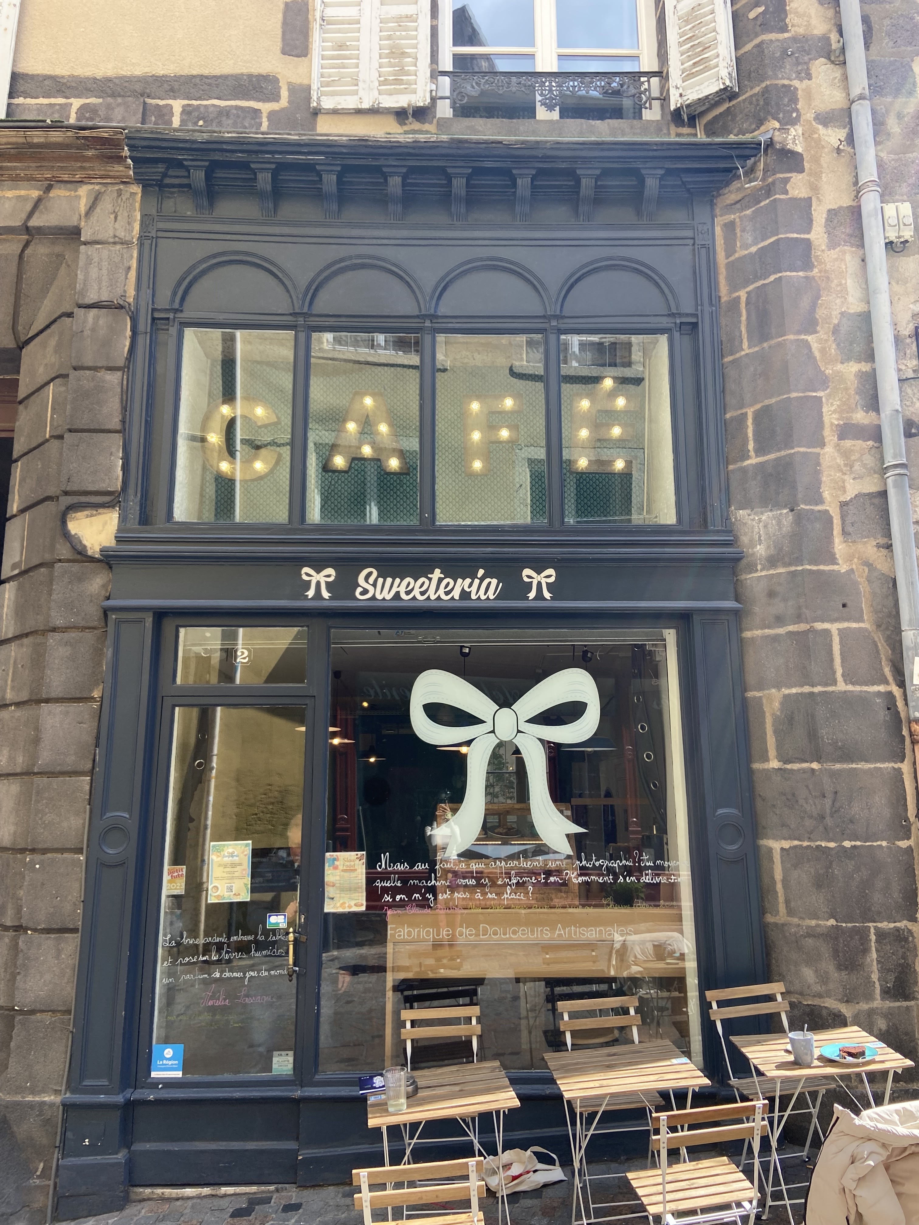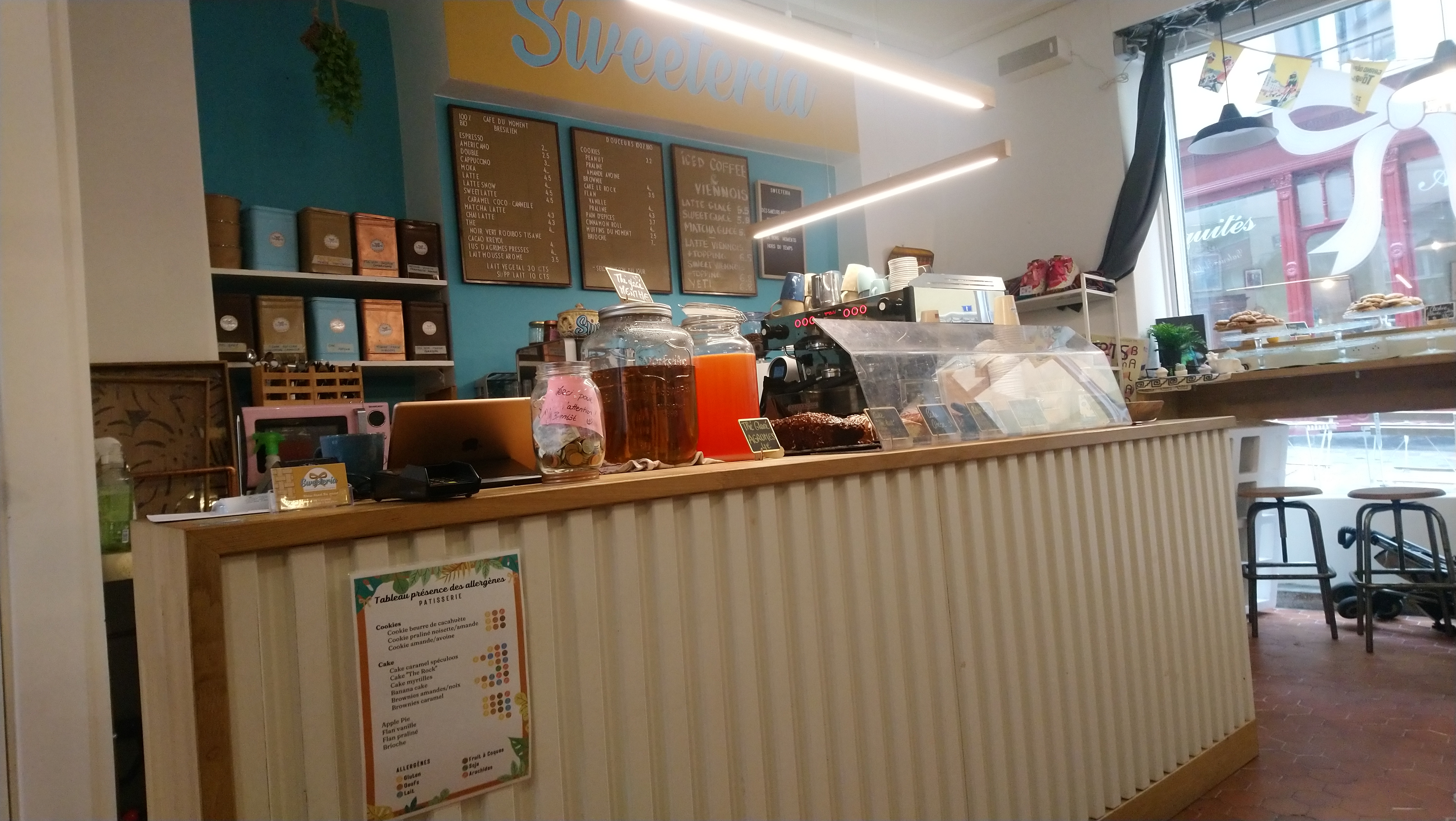 Quelle MERVEILLEUSE petite boutique ! Tellement mignon et confortable, et les friandises sont splendides ! J'avais du jus d'orange fraîchement pressé qui était si frais, ainsi qu'un bon café. Je ne mange pas de gluten mais les cookies avaient l’air si délicieux que j’en ai commandé une douzaine pour mes amis. Je suis tellement contente de voir de belles boutiques comme Sweeteria à Clermont-Ferrand.