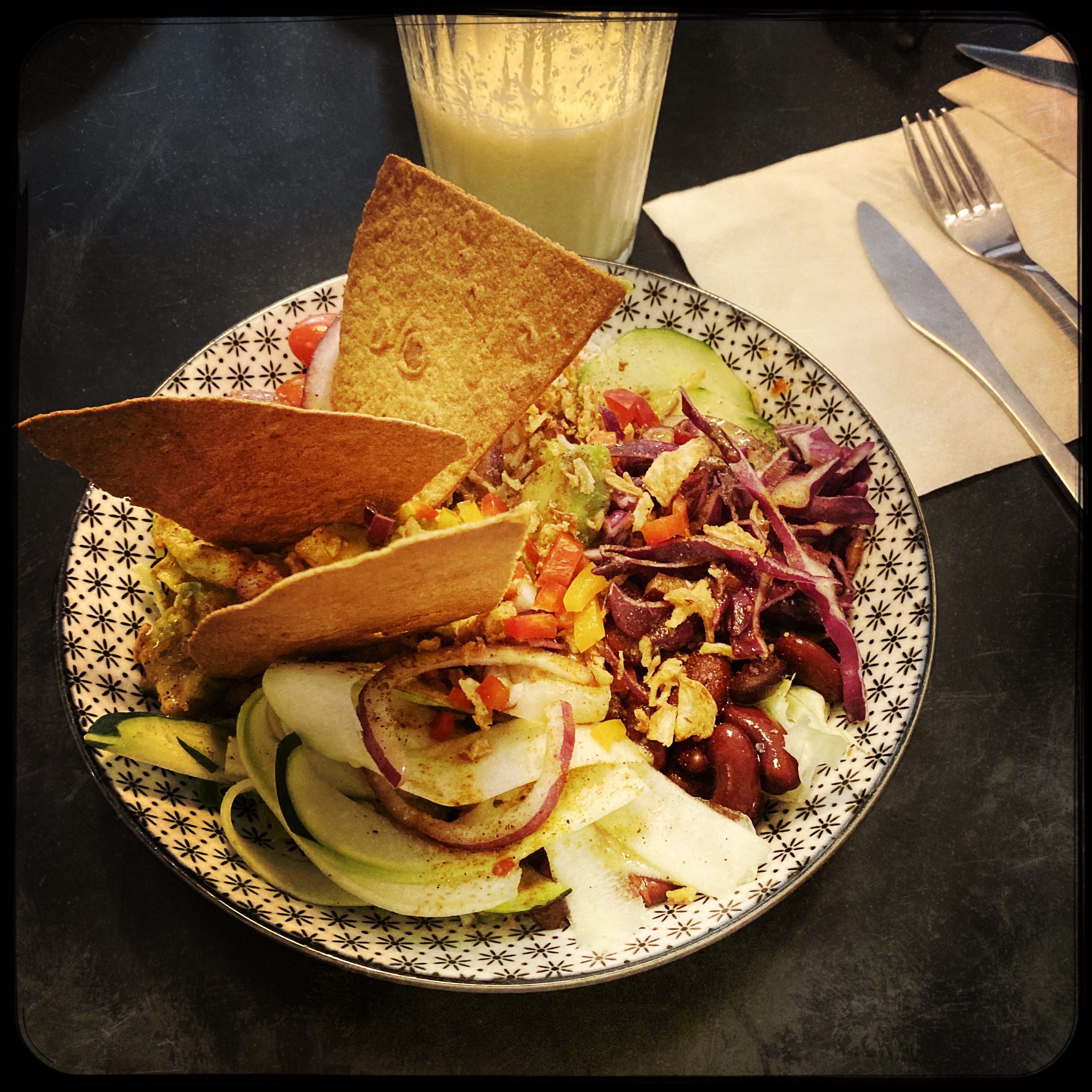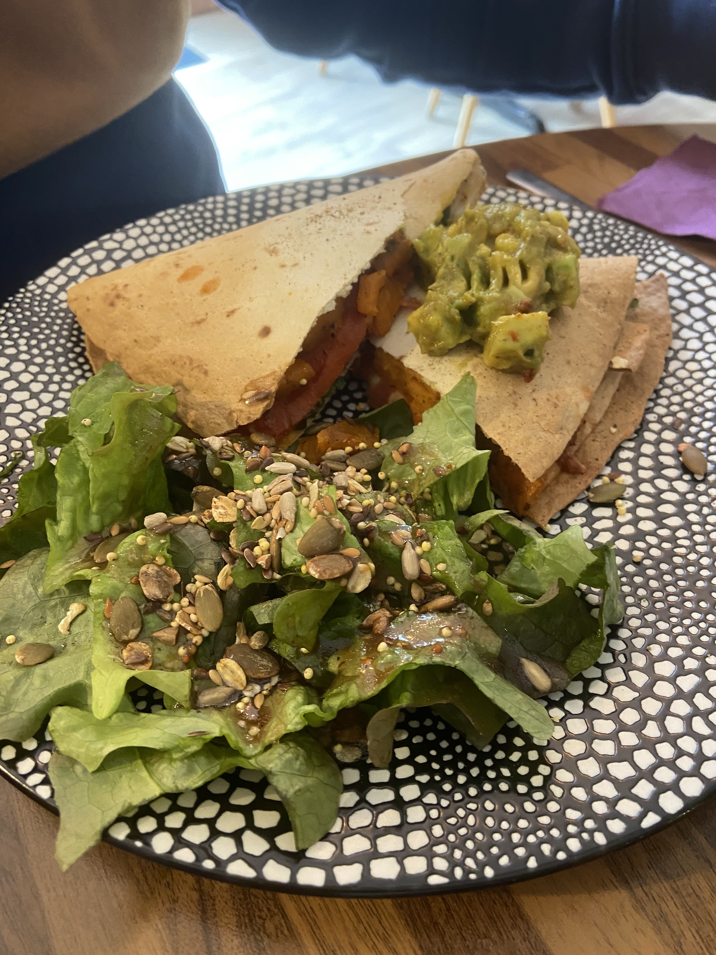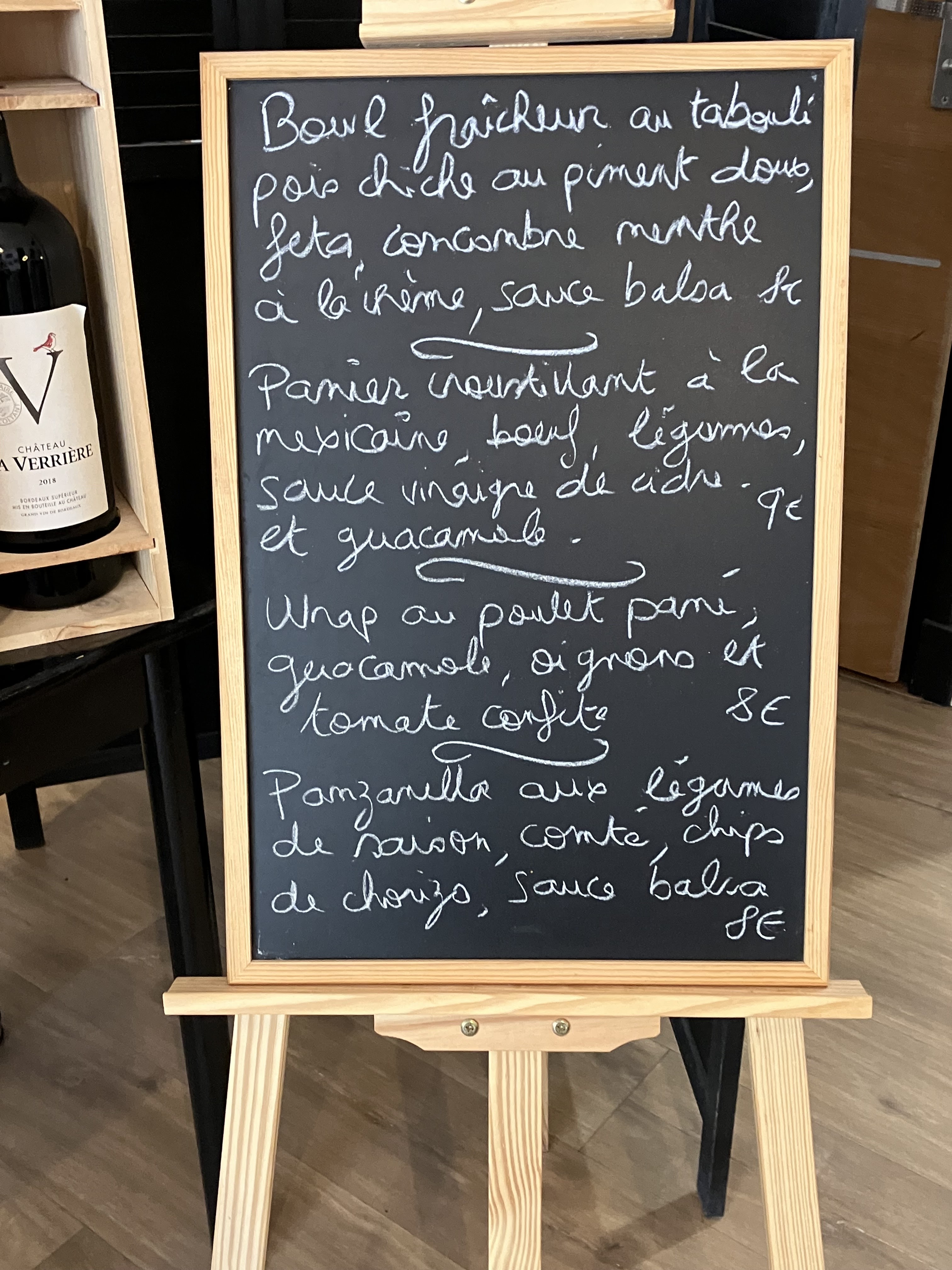 Juste trooooop bon, j ai mangé une salade mexicain dans une petit panier croustillant et un dessert ganache chocolat et c était parfait! Merci Lydie