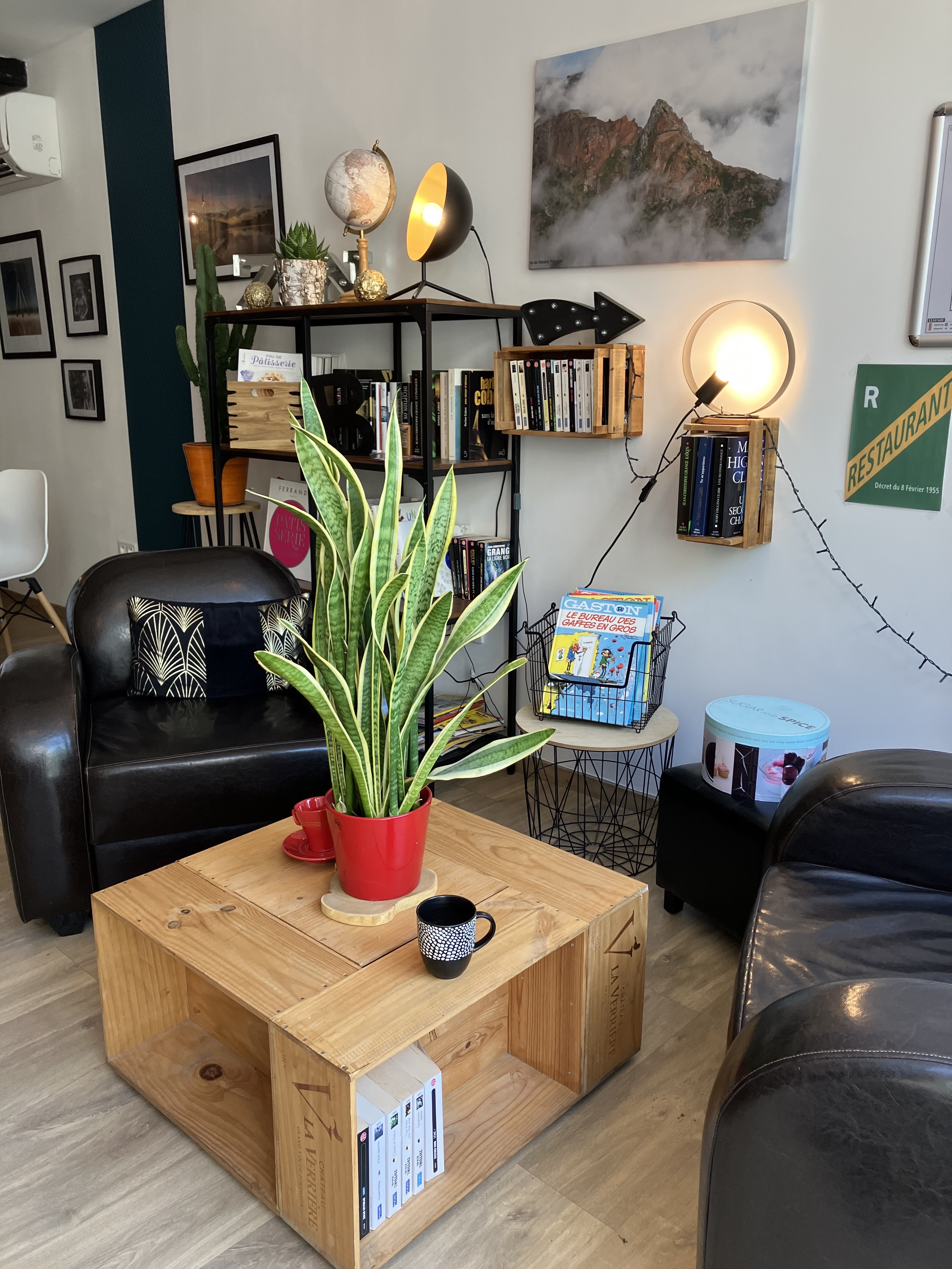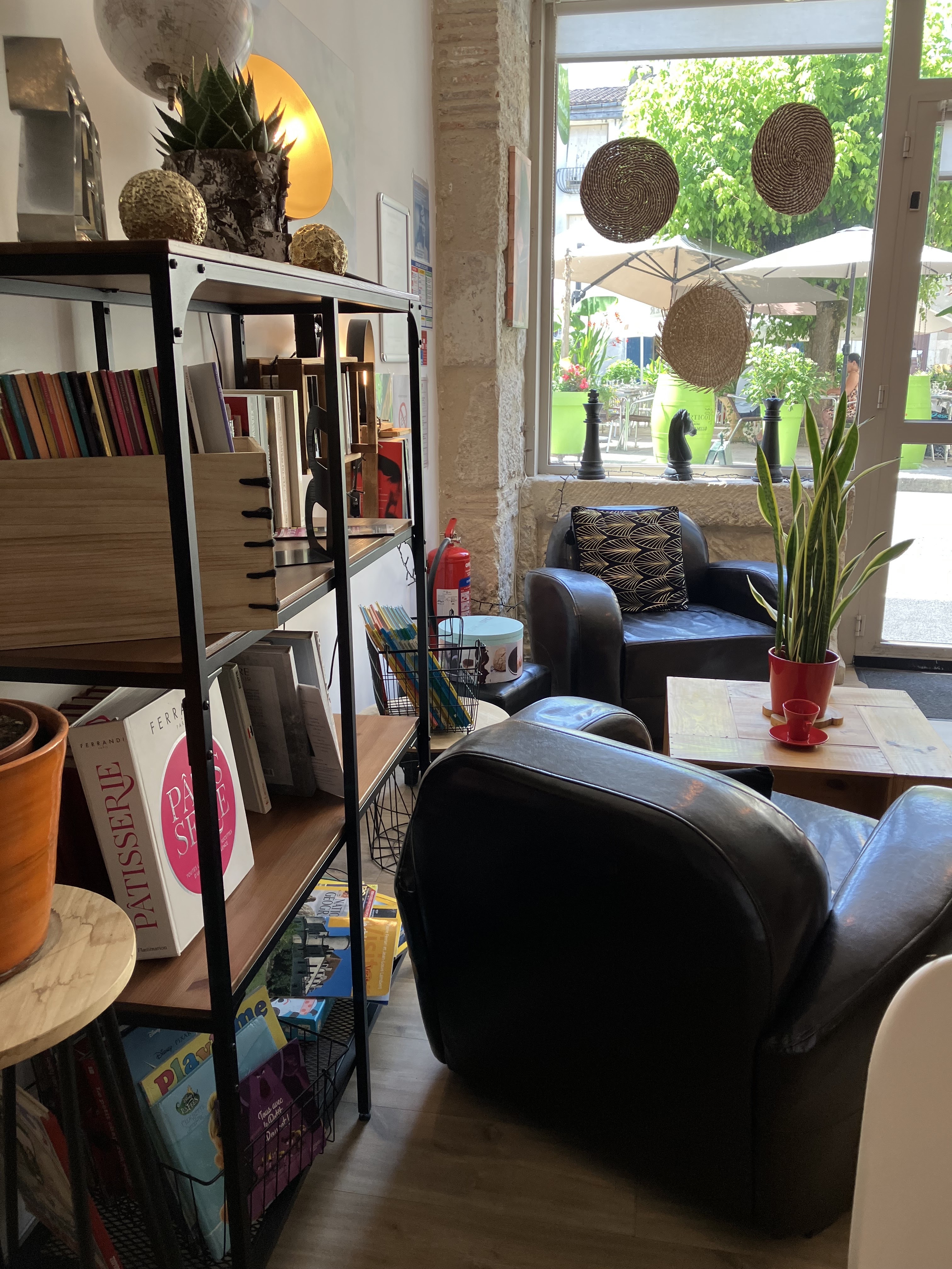 Bel endroit où le temps s’arrête lorsque que l’on déguste les plats et pâtisseries préparés par Lydie tout en parcourant si on le souhaite les livres mis à disposition Le fauteuil était aussi très confortable Prudent de réserver