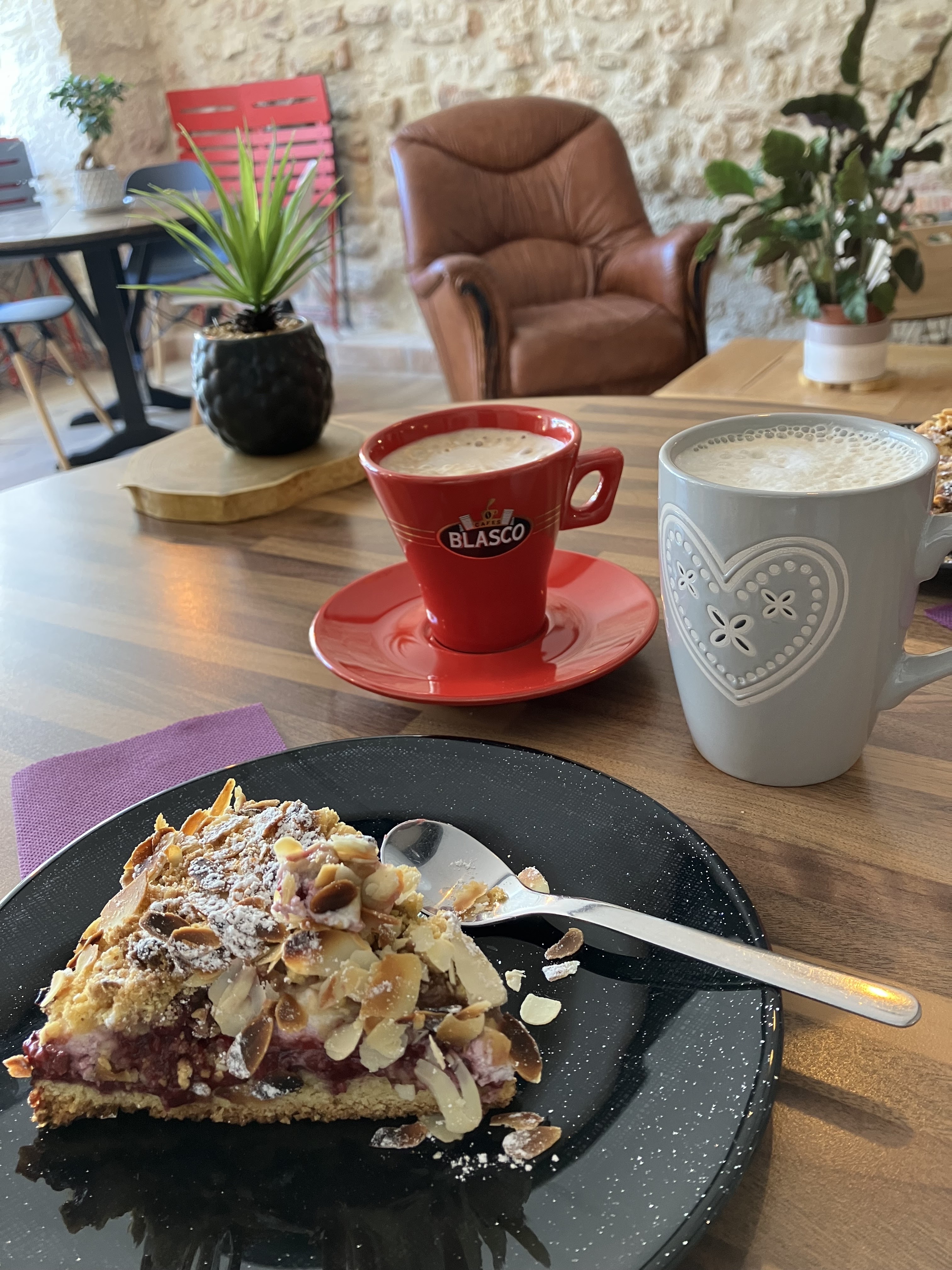 Parfait pour le café et les gâteaux du matin ou pour un déjeuner informel : soupe/sandwich/salade, ou thé et scones l'après-midi. Menu frais, délicieux et imaginatif. Ambiance chaleureuse, service sympathique. Mangez à table ou détendez-vous dans un fauteuil et lisez des livres et des magazines. Un joli joyau caché d'un café à Duras.