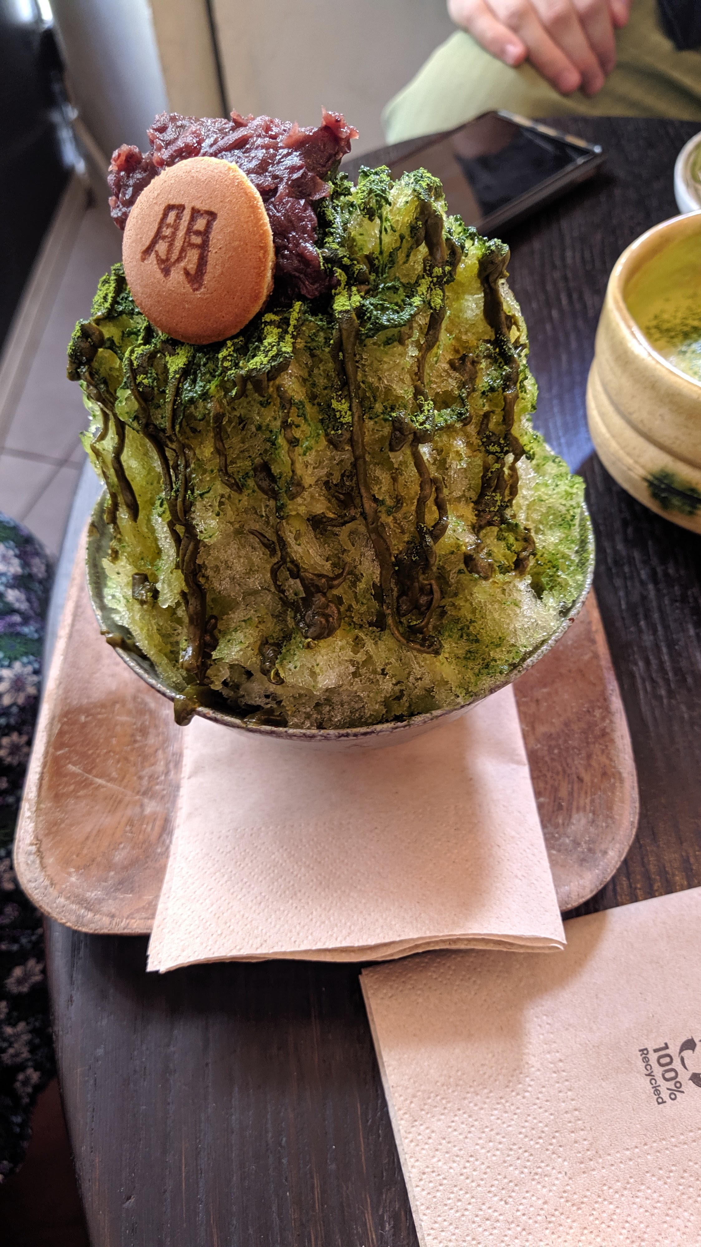 Posté le 26/04/2018 à 23:18"Une attente énorme (il n'y avait pourtant pas foule). Dorayaki très bon mais petit et cher. Les thés sont également cher. Le prix n'est pas tout à fait justifié. L'ambiance est calme et reposante mais avoir été oublié alors que nous étions installés en face du comptoir n'est pas acceptable quand les prix pratiqués appelle à un service de haut standing. Edit: j'ai modifié la photo de mon commentaire qui était la mauvaise auparavant"