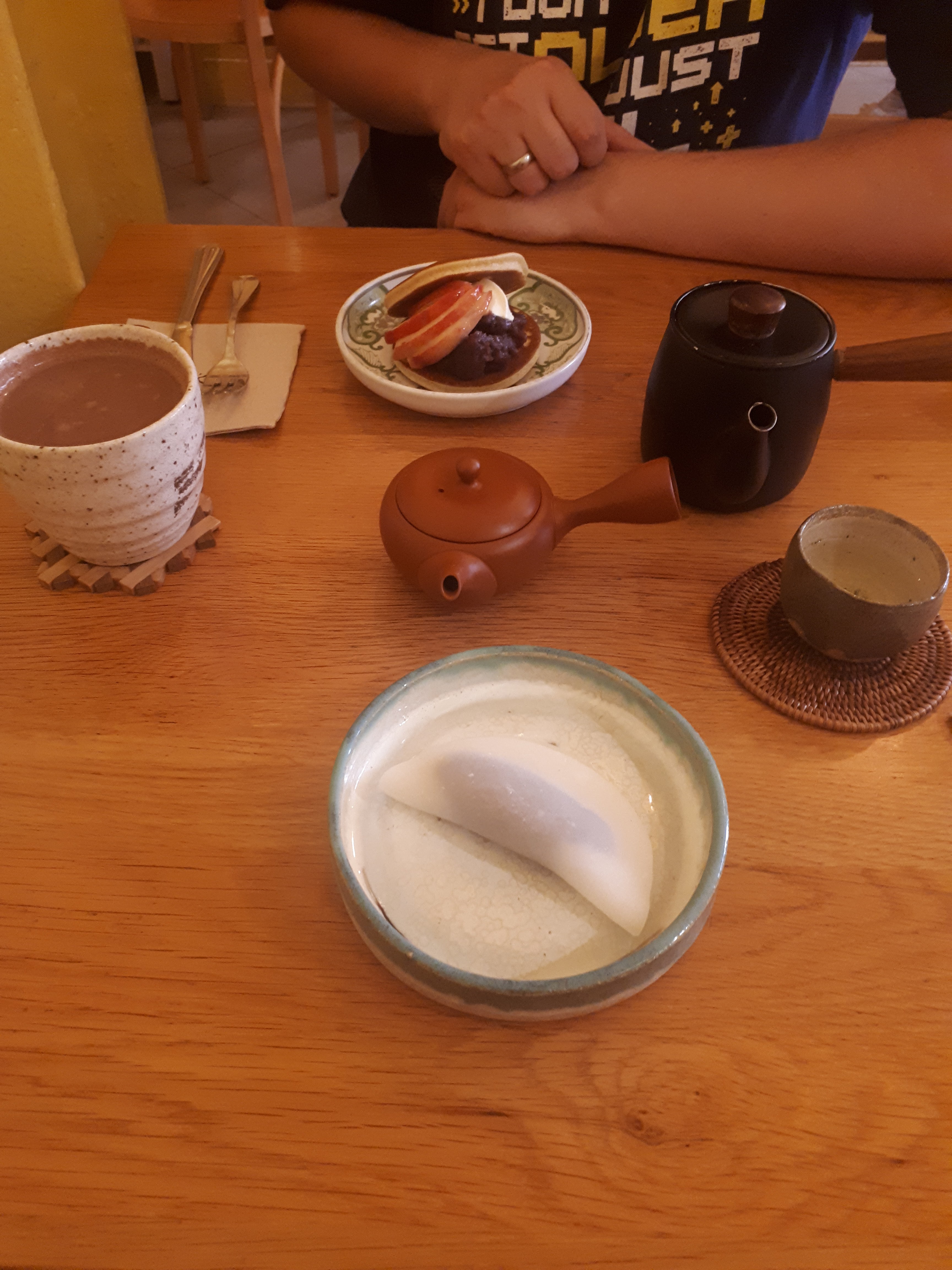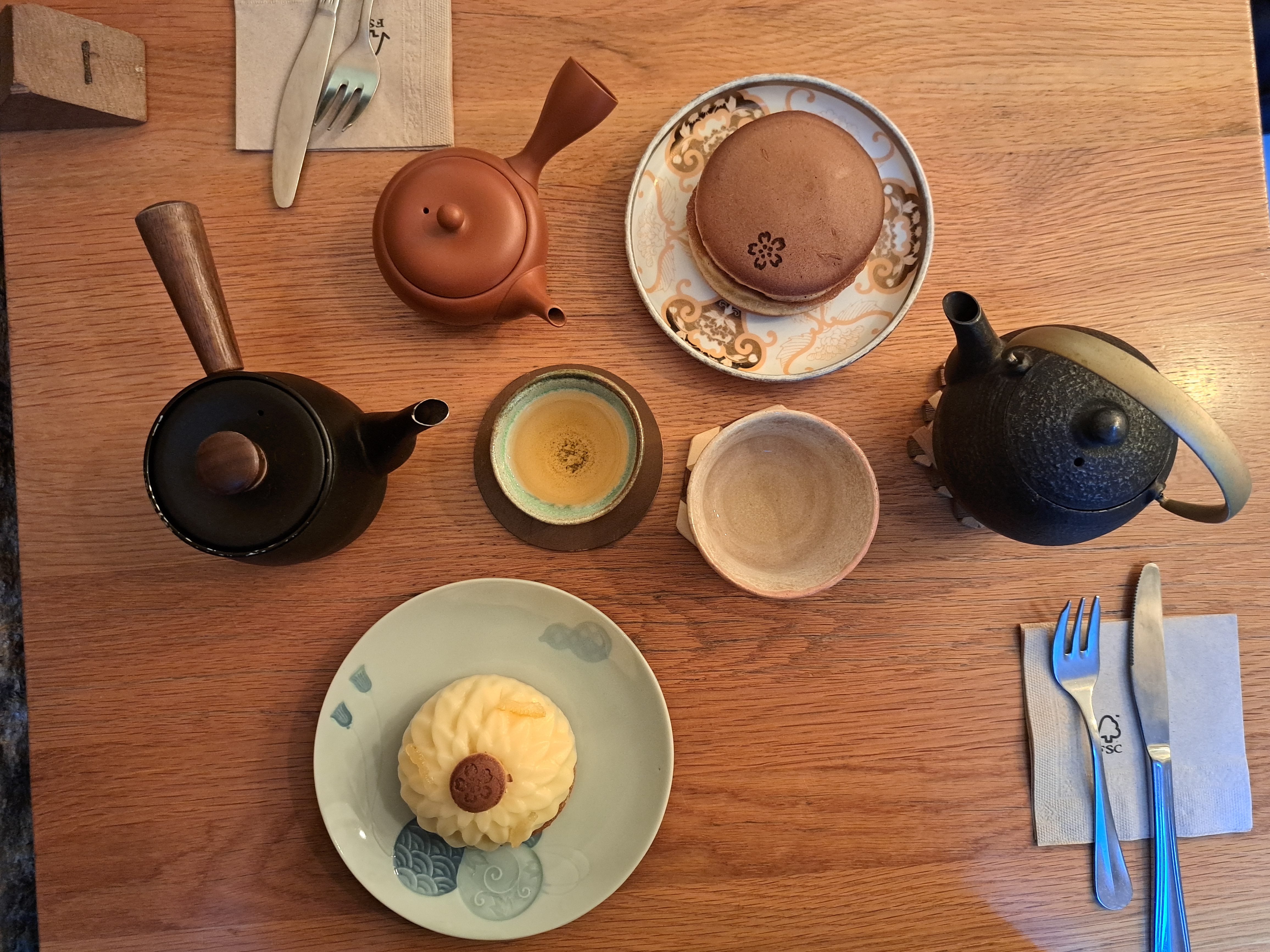 Nous cherchions à manger quelque chose qui sort de l'ordinaire, et nous n'avons pas été déçus. Les saveurs était au rendez-vous, les dorayaki était très bon, en particulier le baba au whisky japonais, et le thé se mariait très bien avec les desserts. Le service était rapide et le personnel souriant. Je recommande.