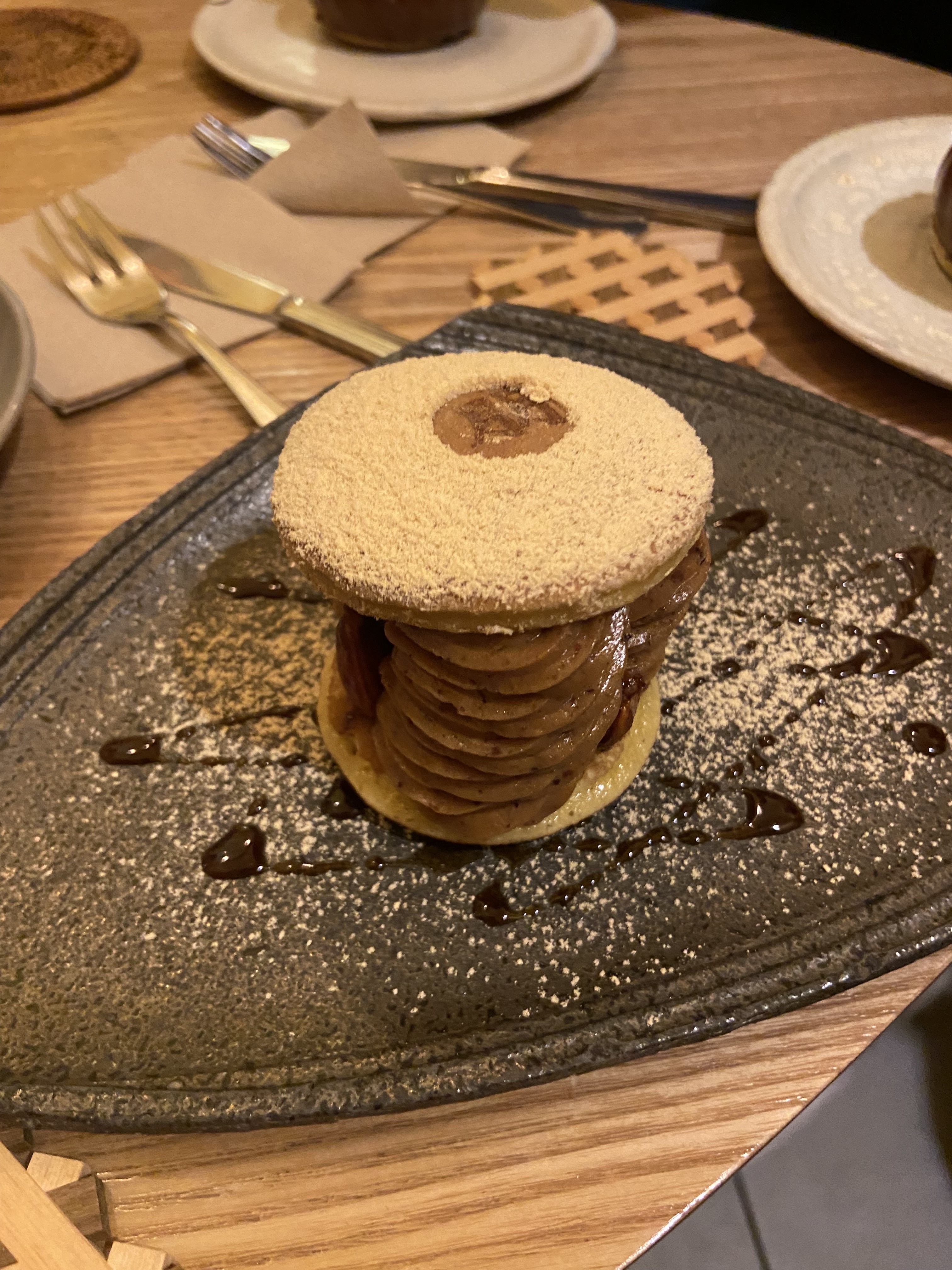 Bon, les dorayakis sont extrêmement chers quand on connait leur prix au Japon MAIS ils sont très bons. Pas spécialement convaincu par l’idée d’en faire des entremets individuels (on perd totalement de vue le produit de base je trouve), mais ça reste tres bon et qualitatif. Une des meilleures galettes que j’ai mangé sur la capitale, au passage - juste chère, aussi :(