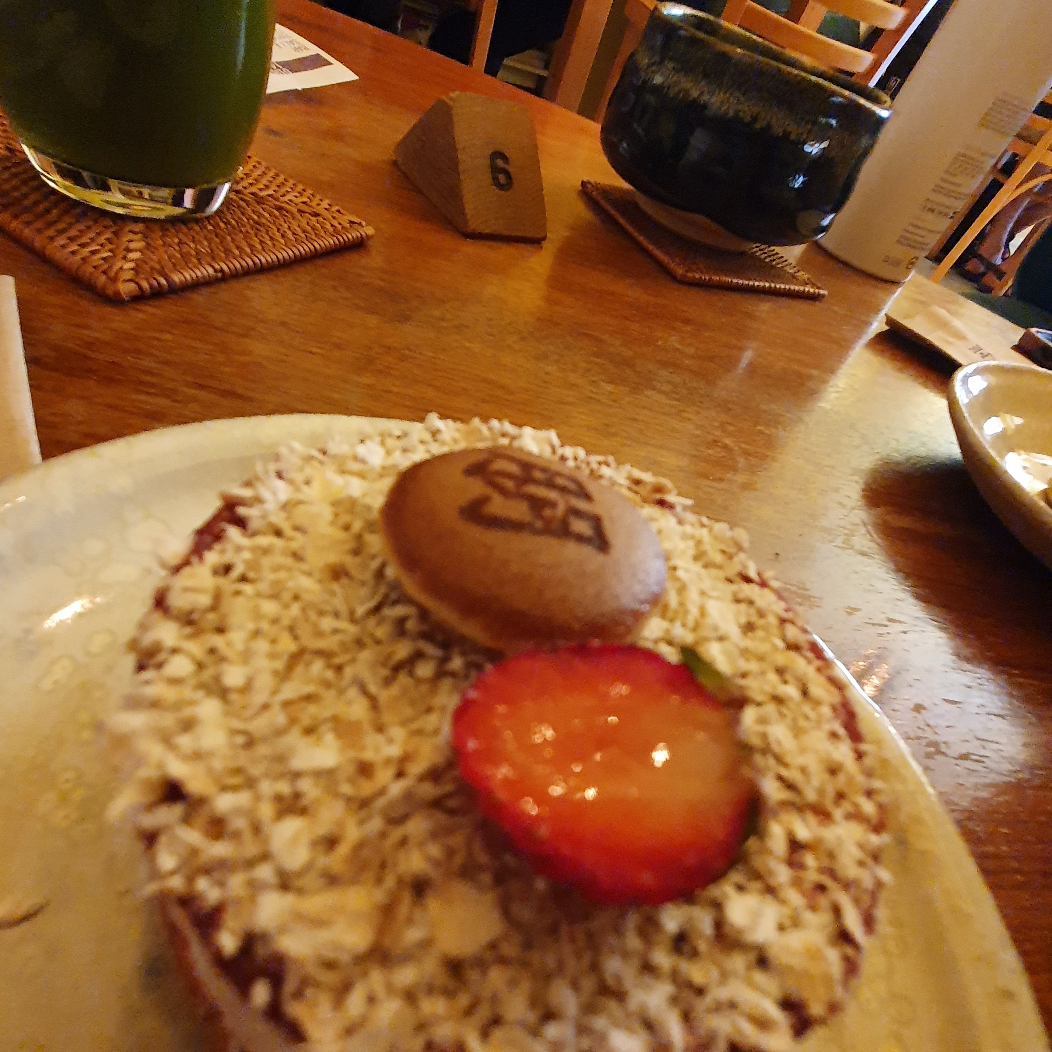 J'ai pris un dorayaky de saison avec des fraises 🍓 donc et un thé matcha ce fût une belle découverte, service impeccable, l'art à la japonaise 🙏