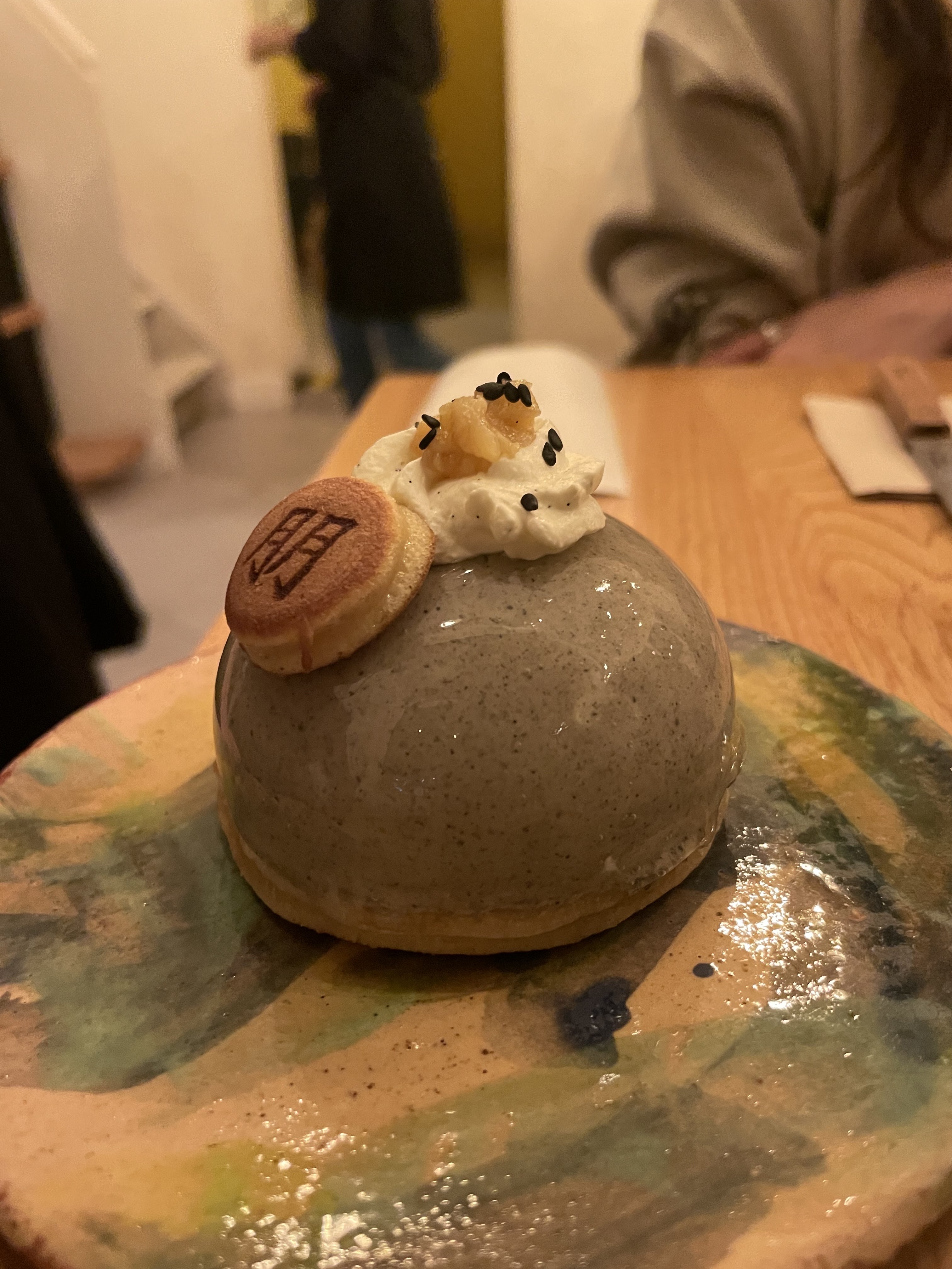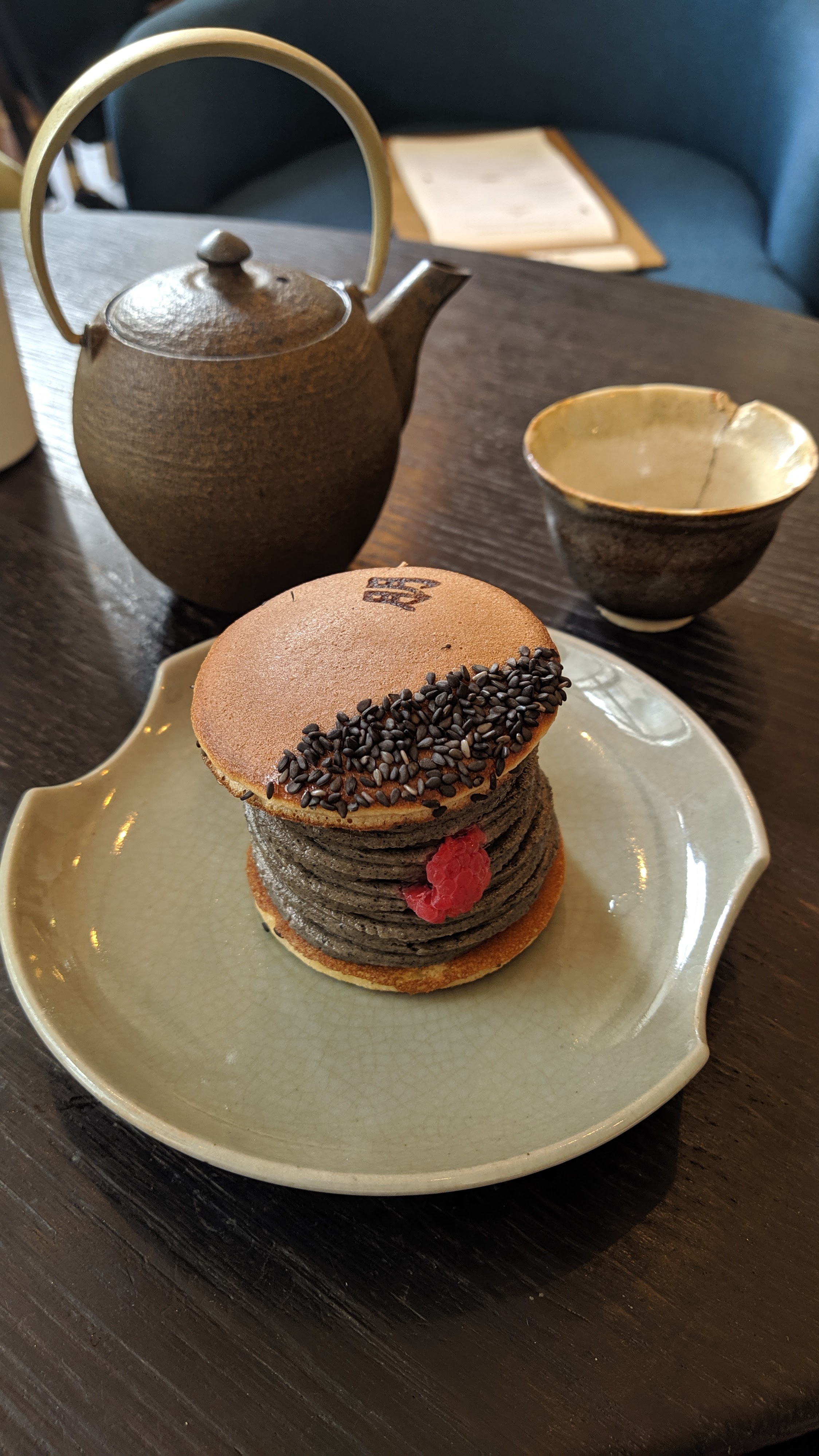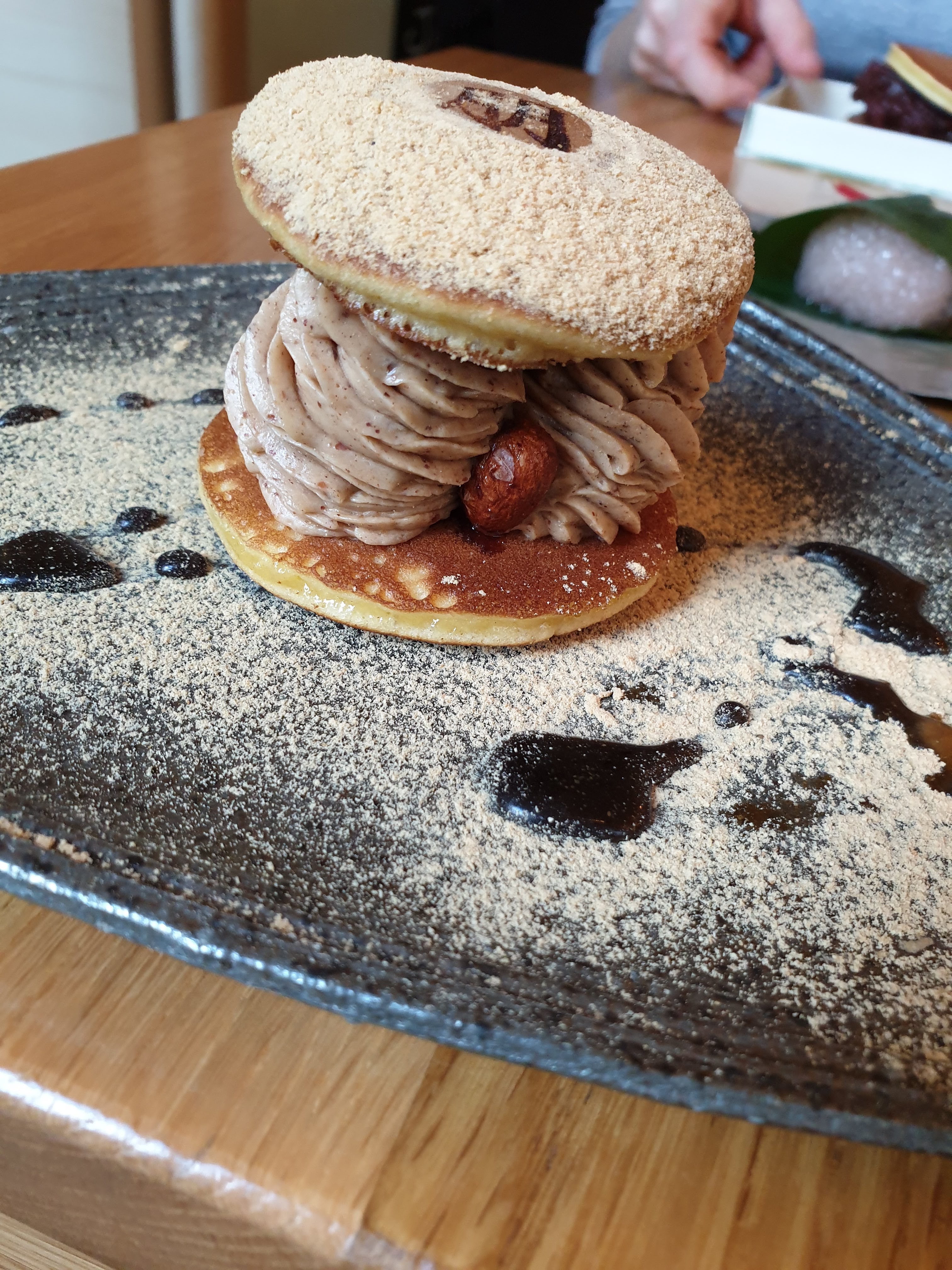 Passage obligatoire pour un dessert japonais. Le dorayaki de saison à la poire et au sésame noir est délicieux!