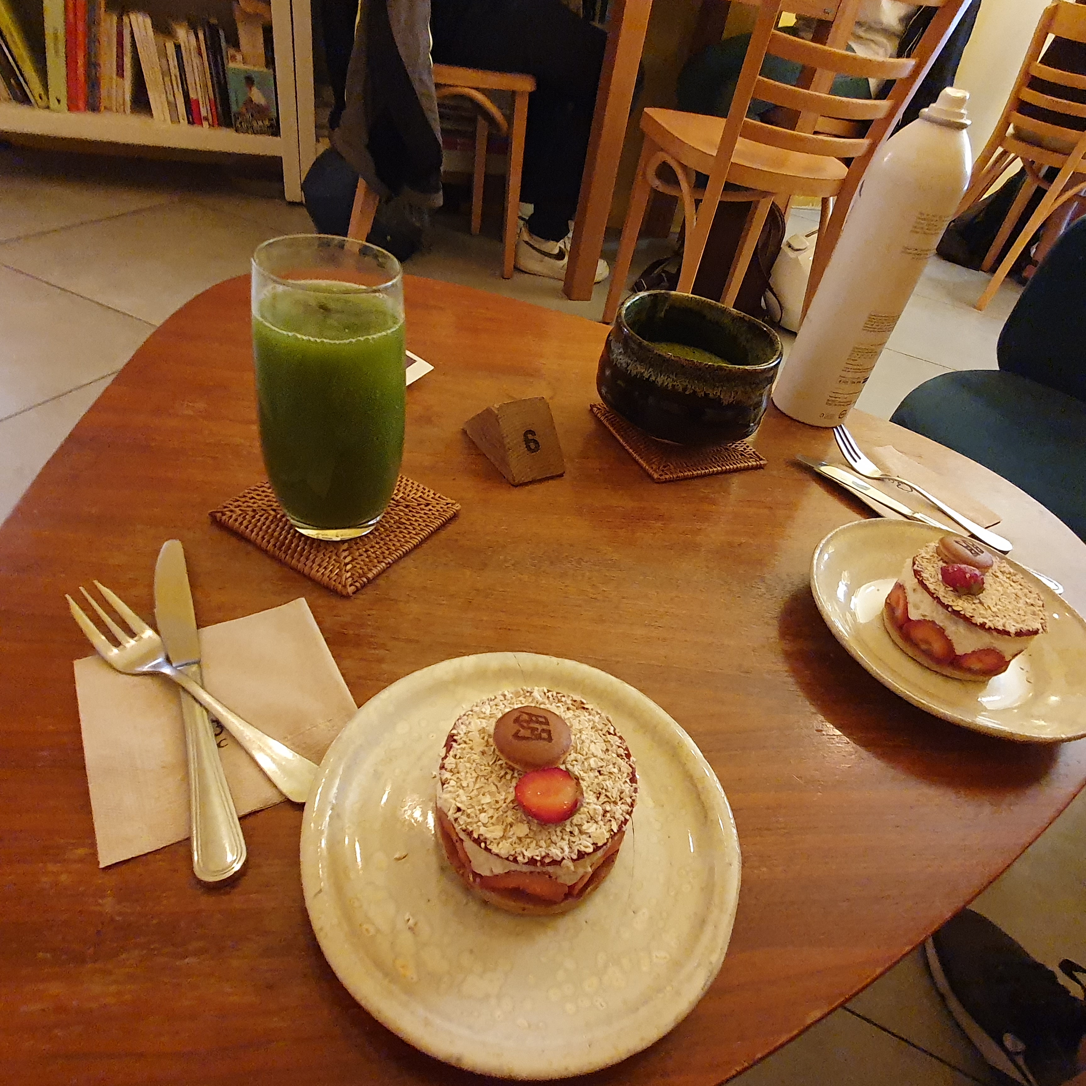 Posté le 29/11/2022 à 22:18"Le matcha latte et les pâtisseries sont très bonnes, mais il faut attendre vraiment longtemps pour avoir une table en week-end. Le placement pourrait être optimisé"